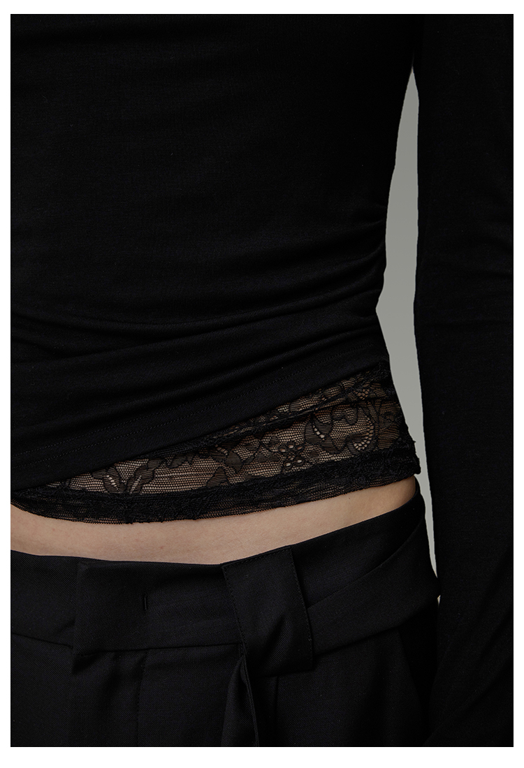 首元と裾、袖口にアイラッシュレースをあしらっています