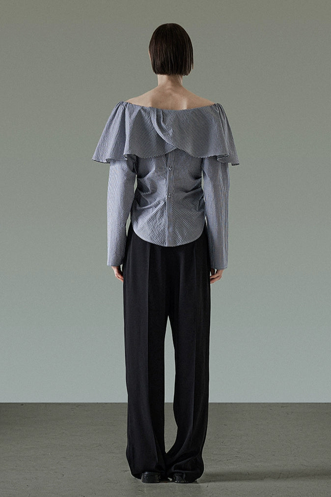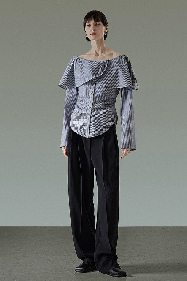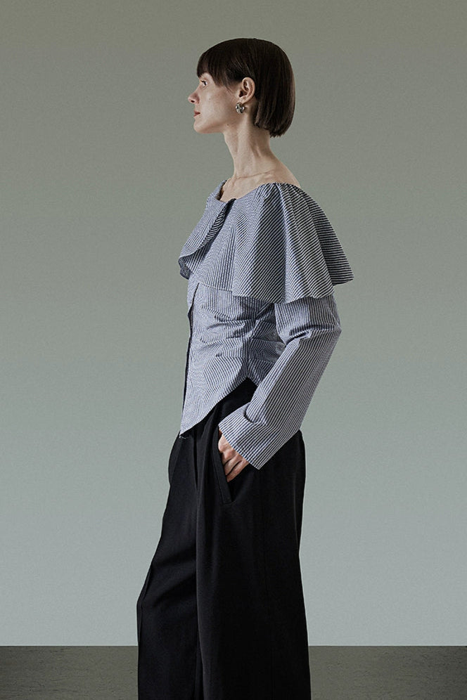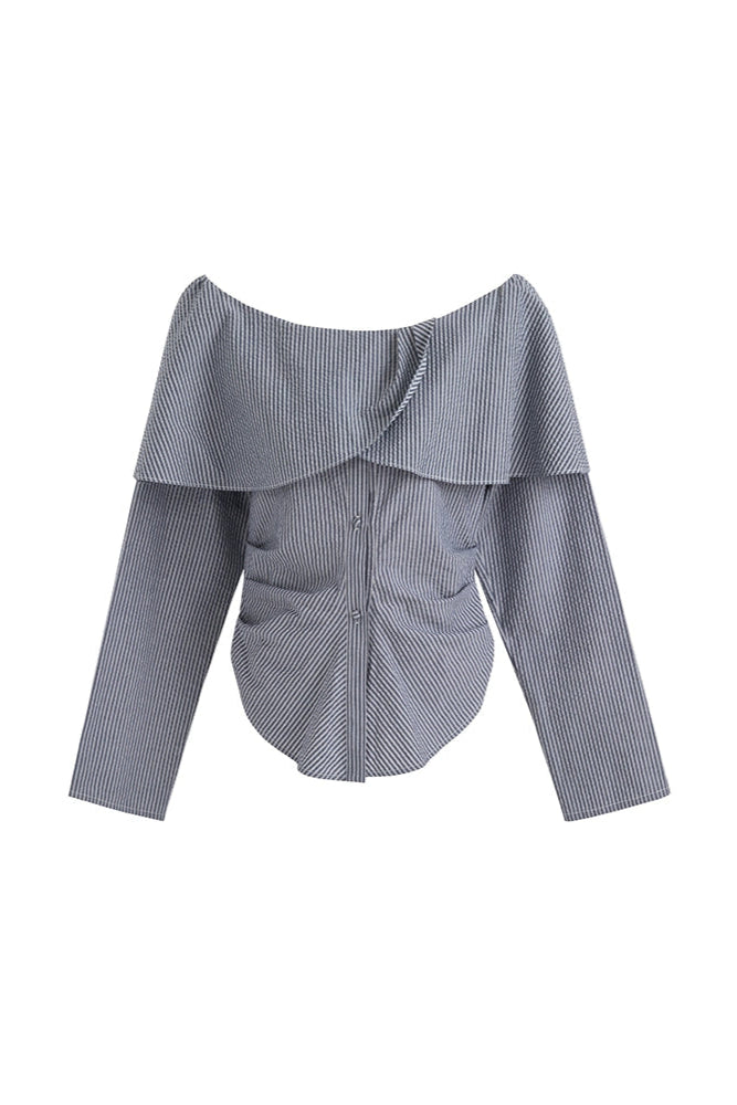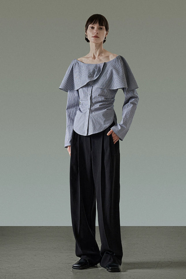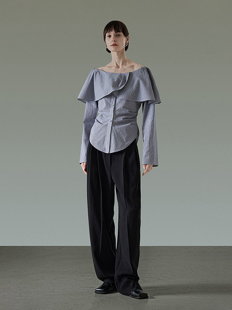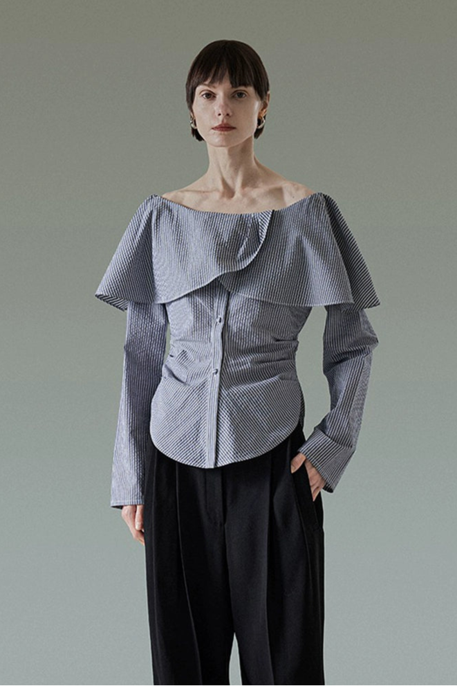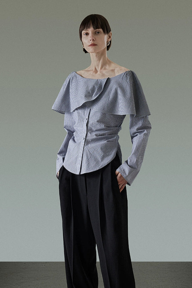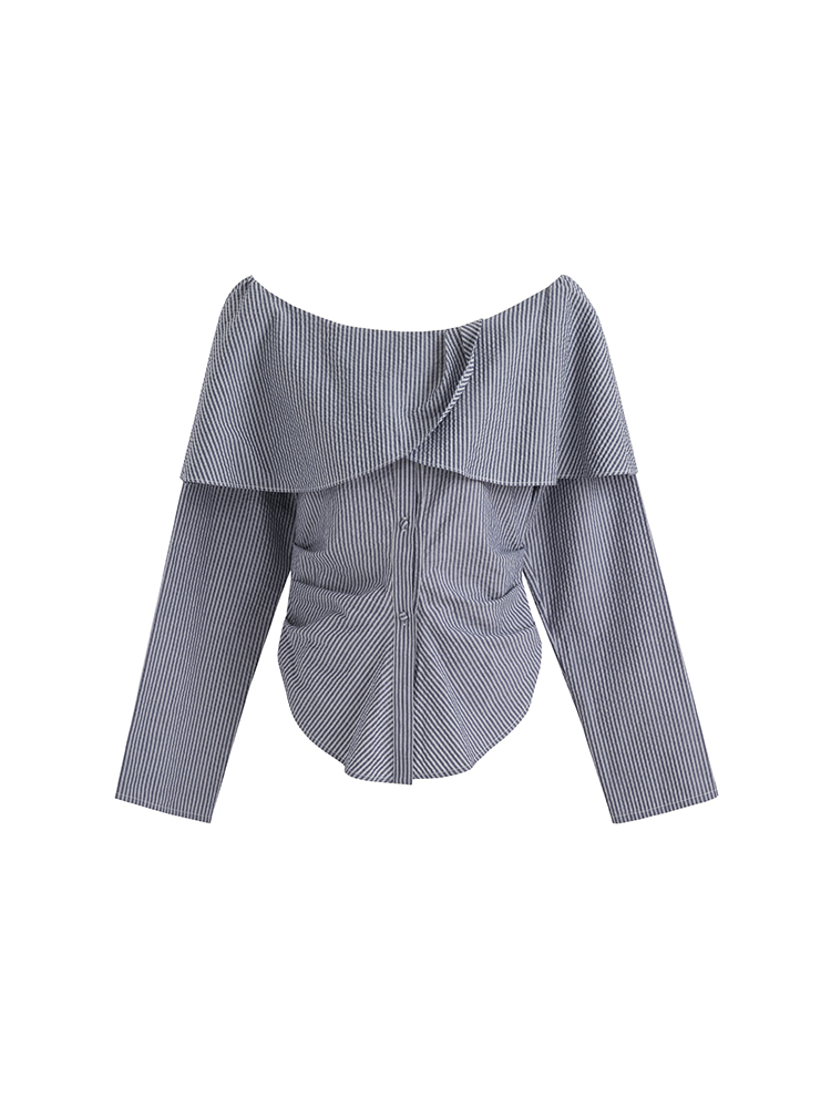 ワンショルダーの大きなネックラインが首と鎖骨をほっそりと魅力的に♪