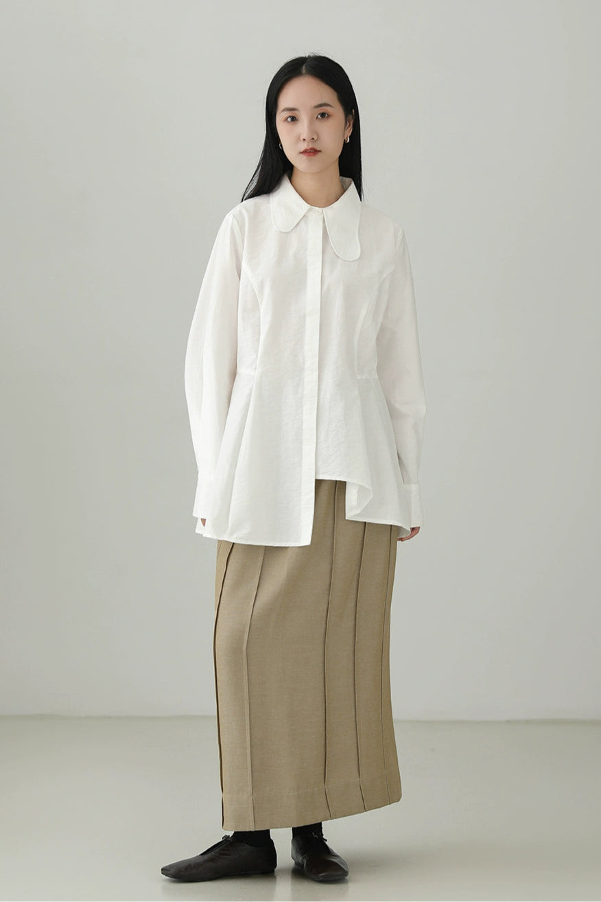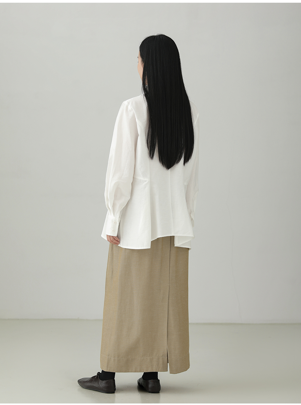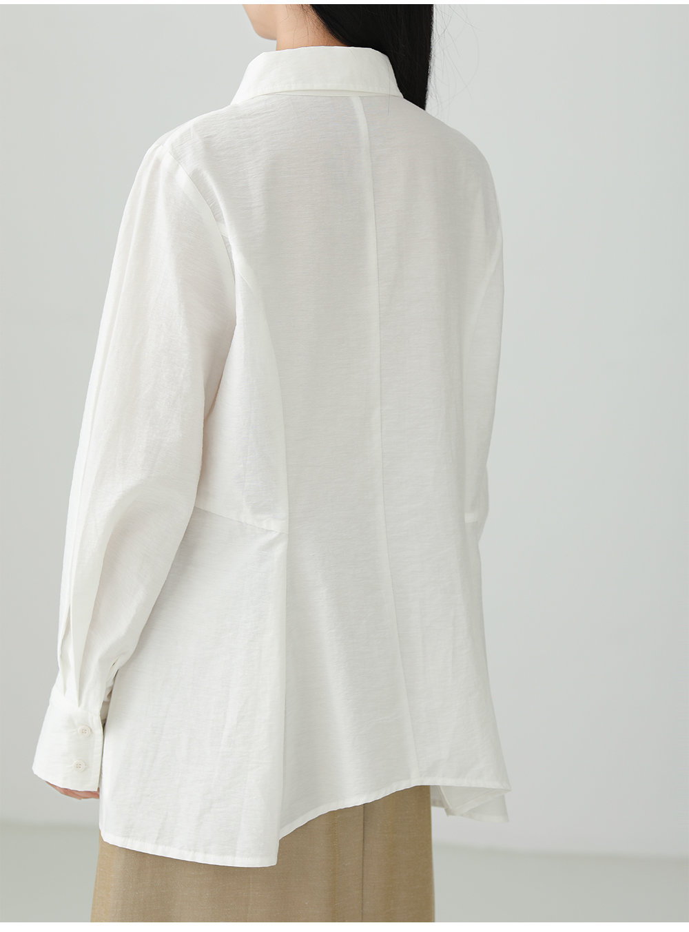 イレギュラーシャツ(コーマ綿とポリエステルの混紡、自然なシワ感で快適)