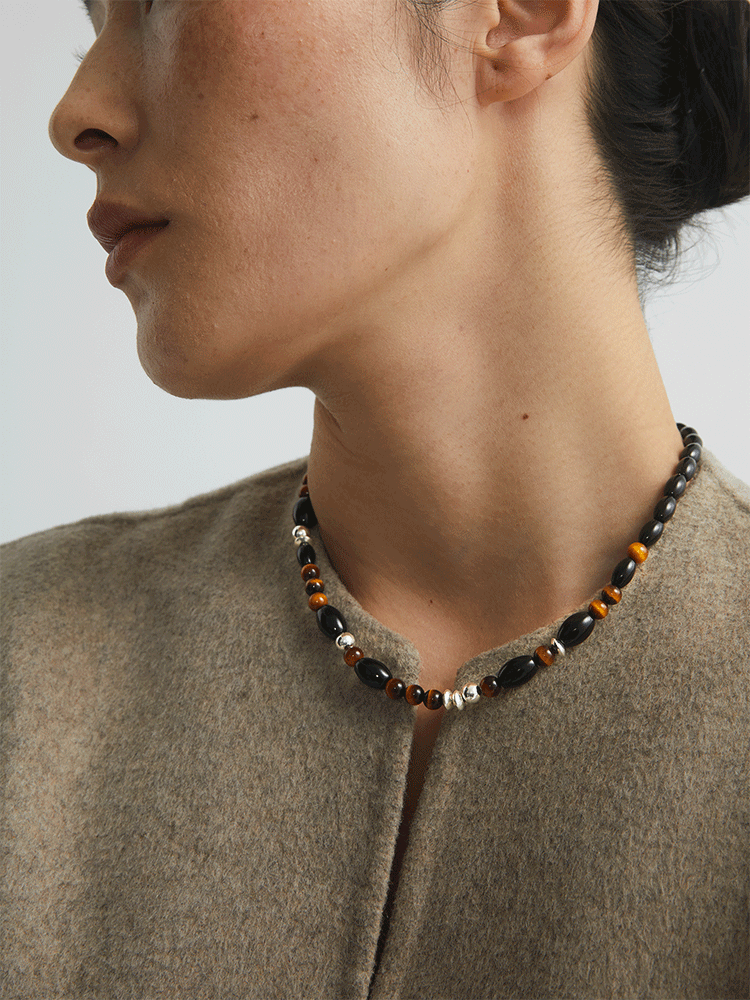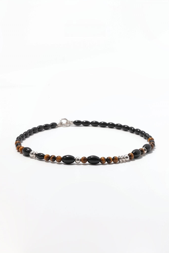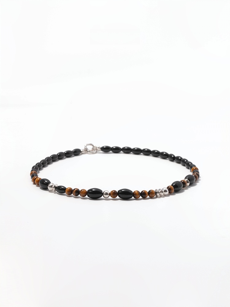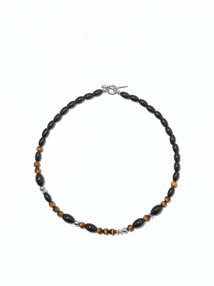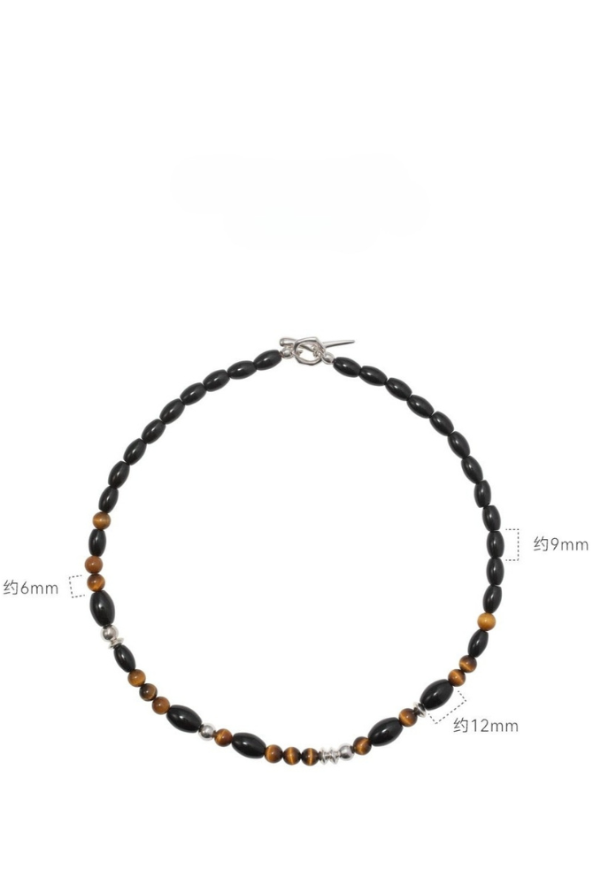 S925タイガーアイ ブラックアゲートチョーカーネックレス B4286