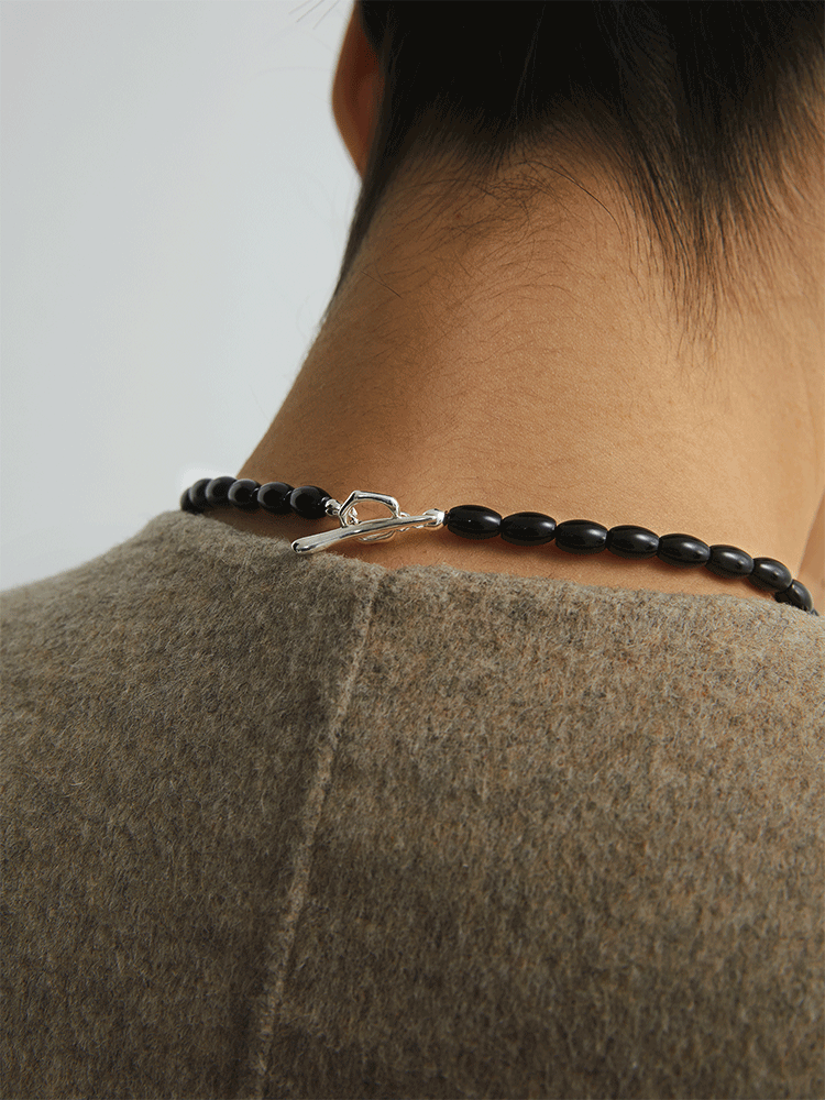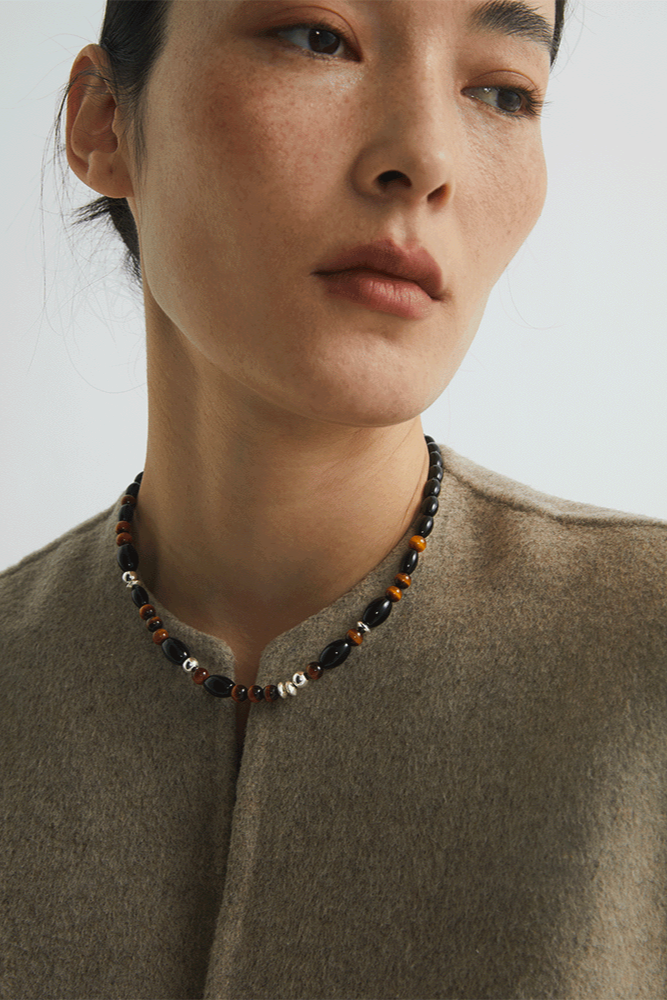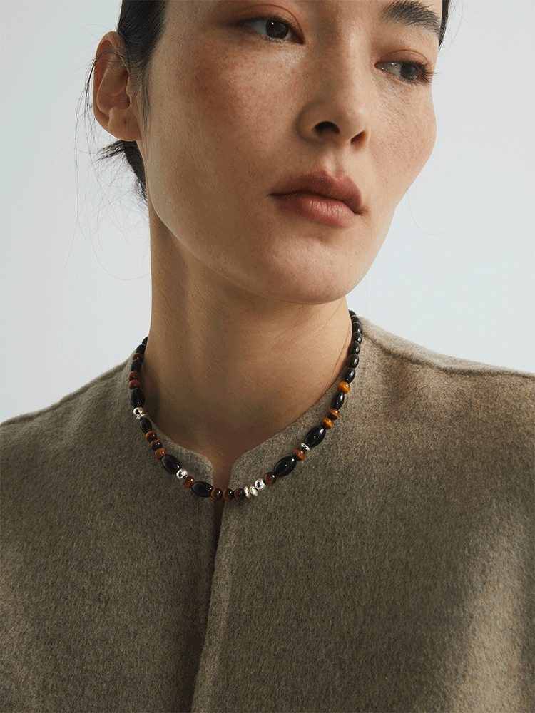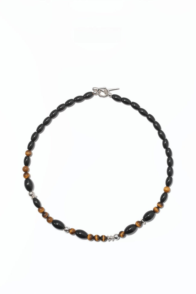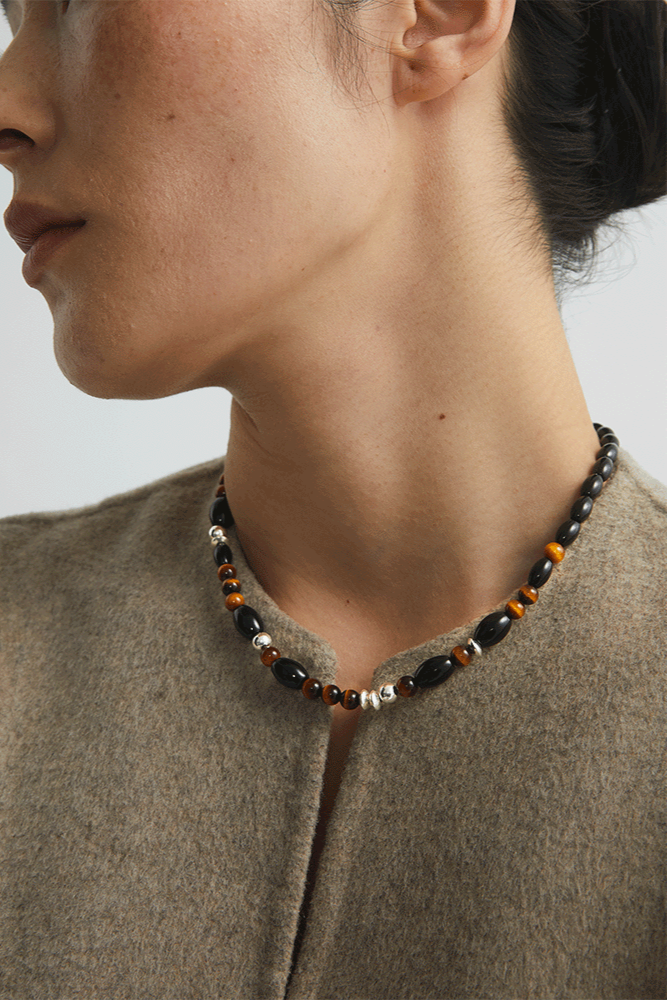S925タイガーアイ ブラックアゲートチョーカーネックレス B4286