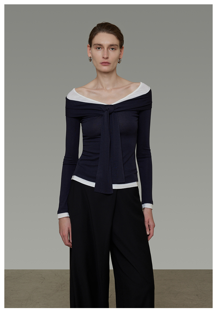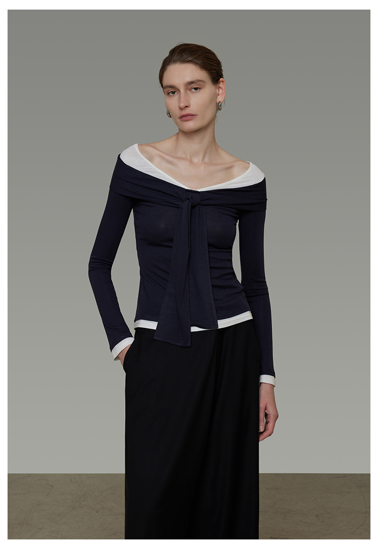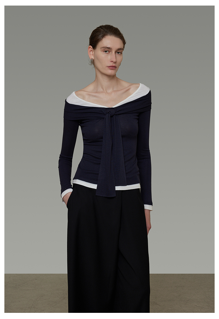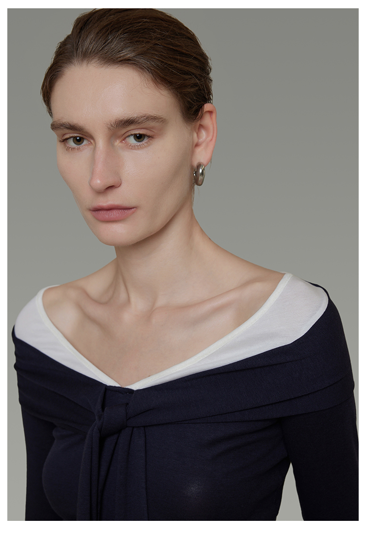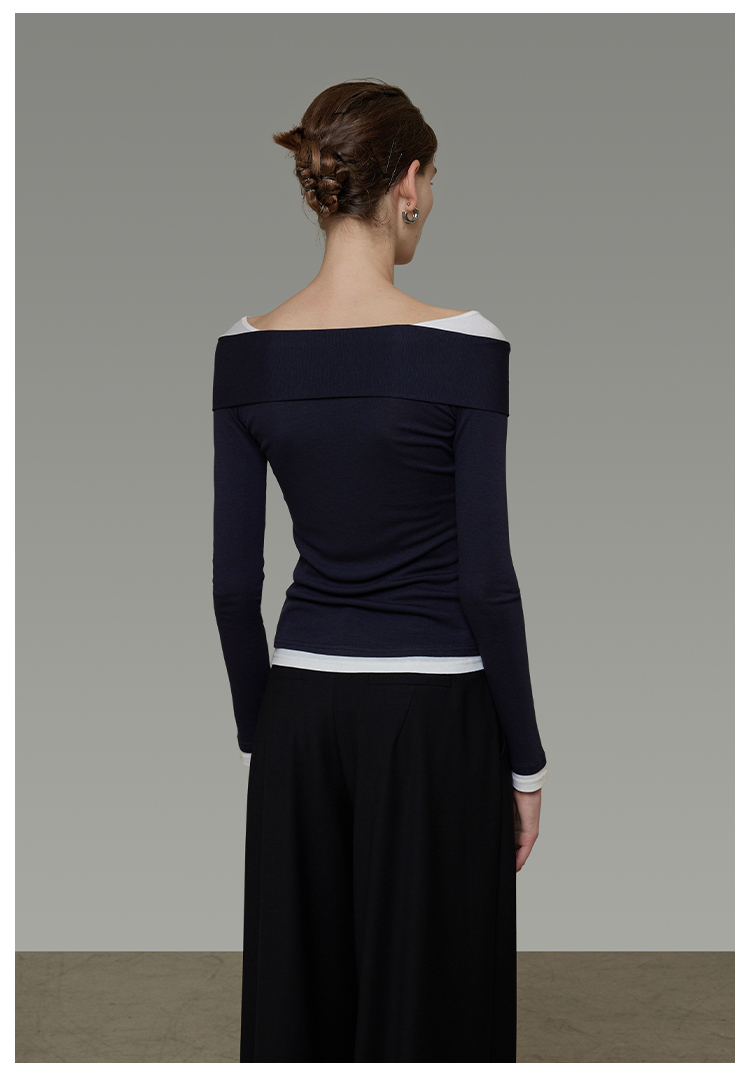 オフショルダーデザインは魅力的な鎖骨と肩のラインを美しく見せ、少しセクシー