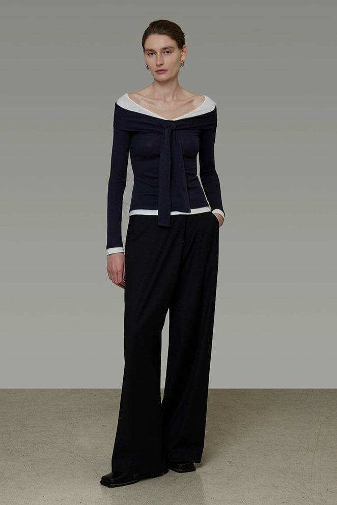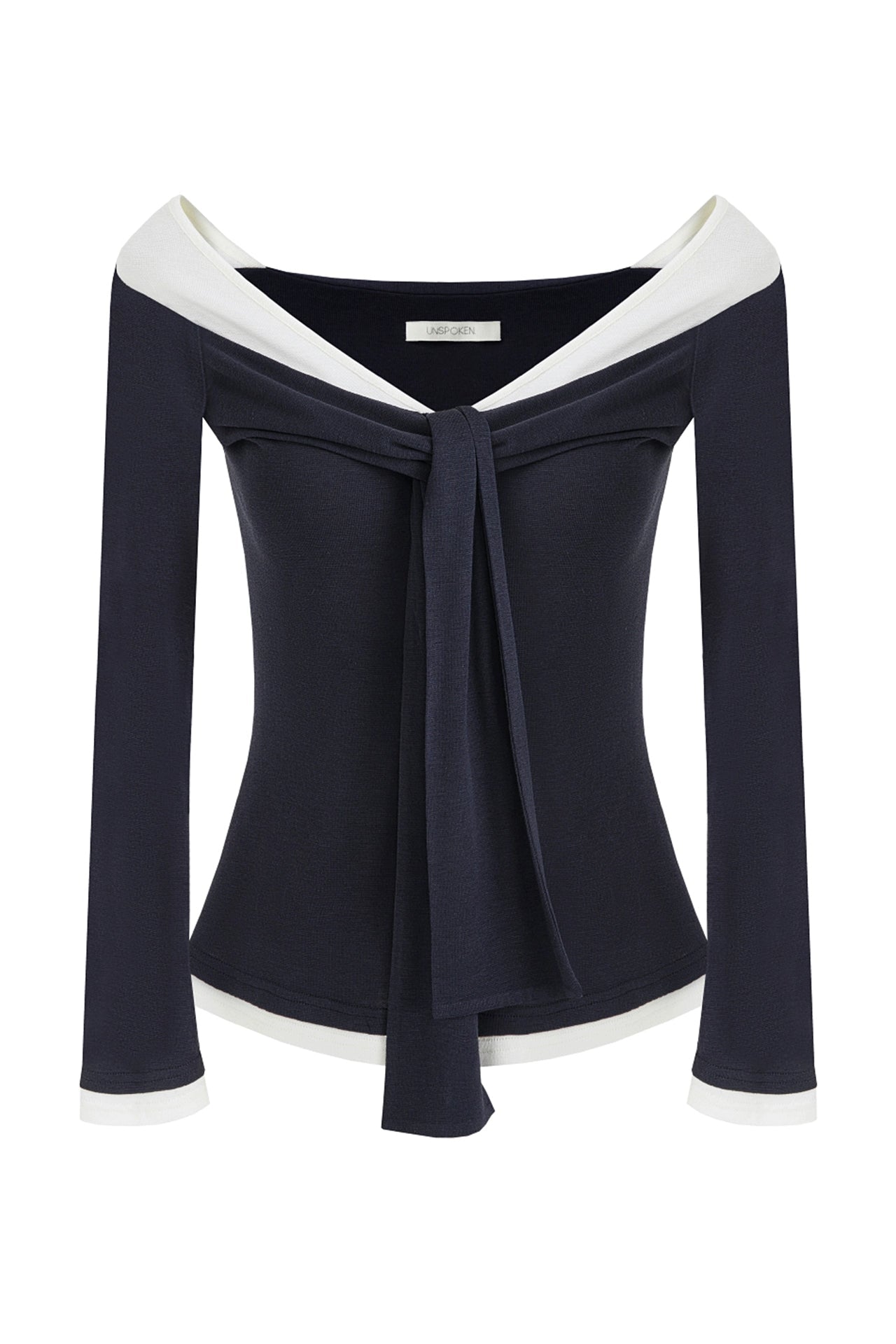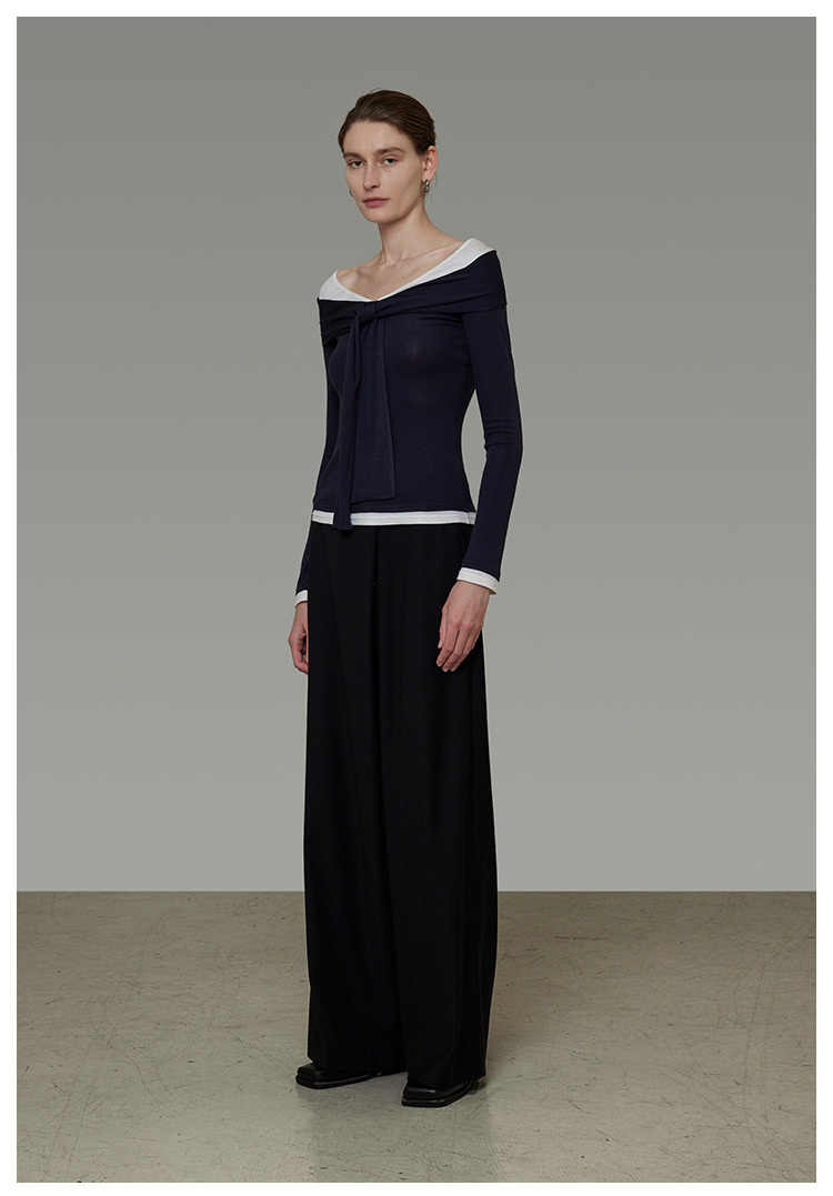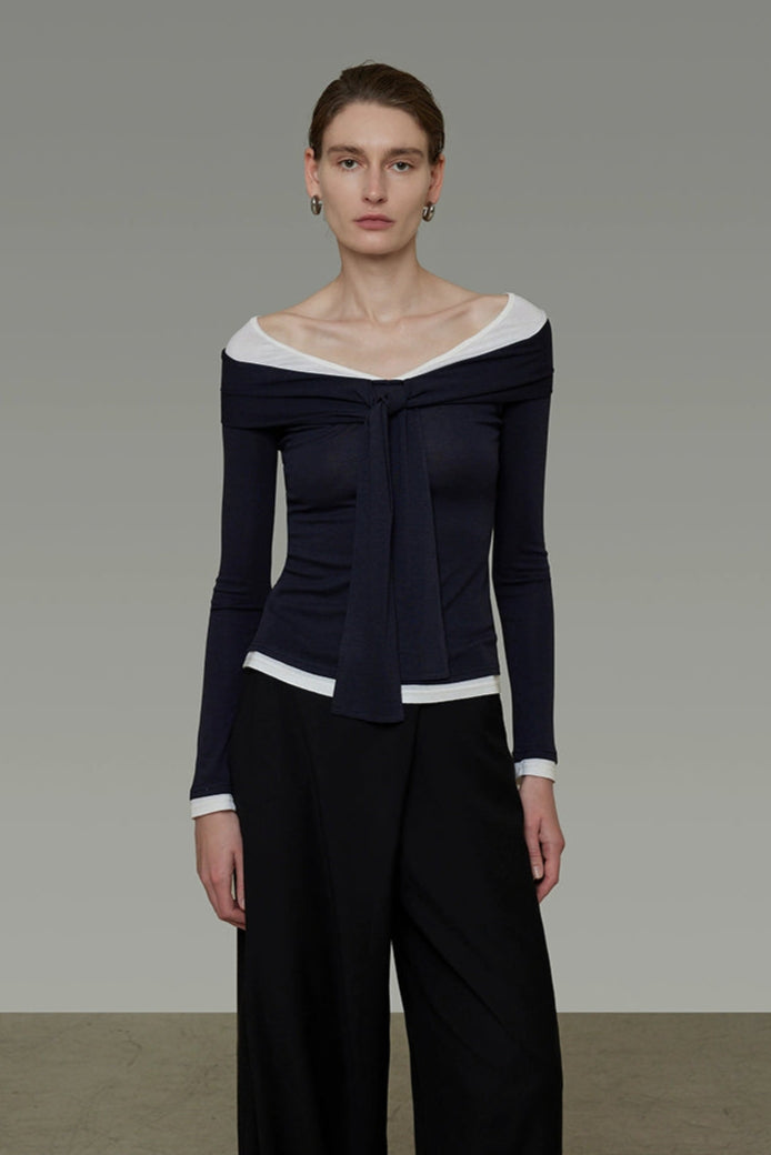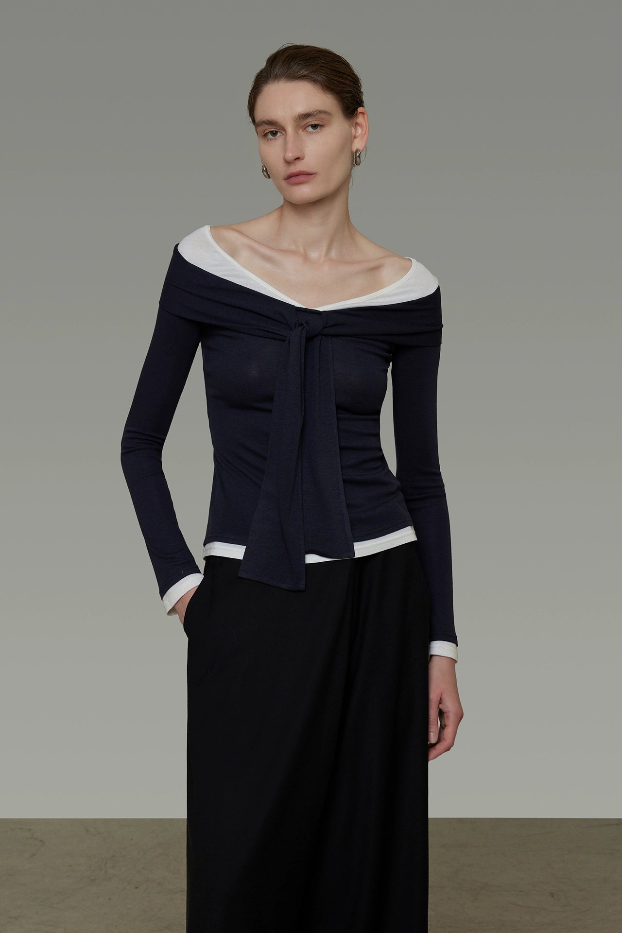オフショルダーデザインは魅力的な鎖骨と肩のラインを美しく見せ、少しセクシー
