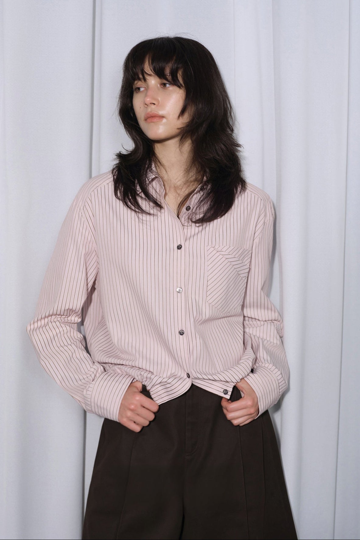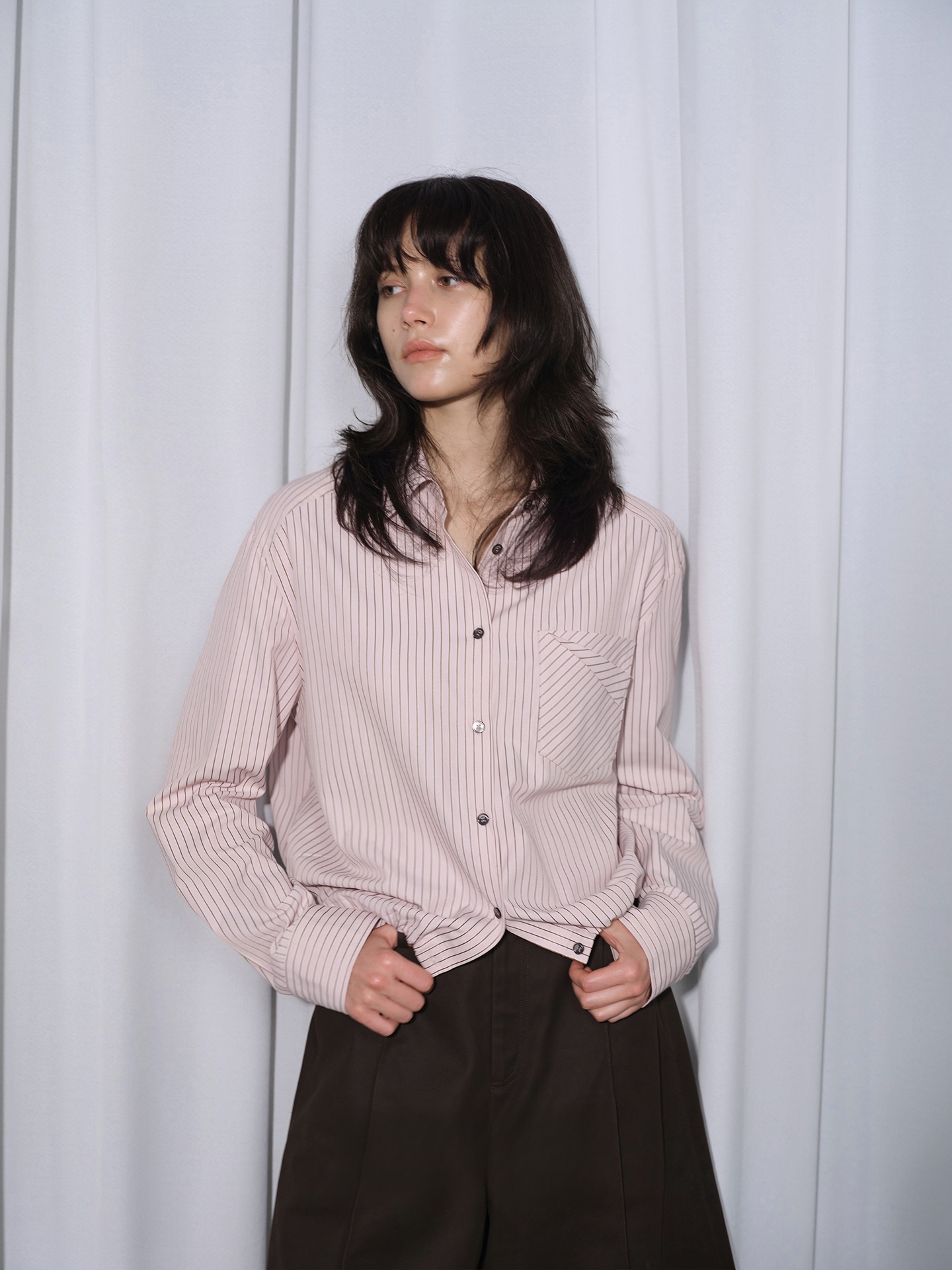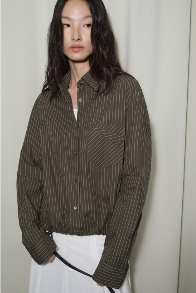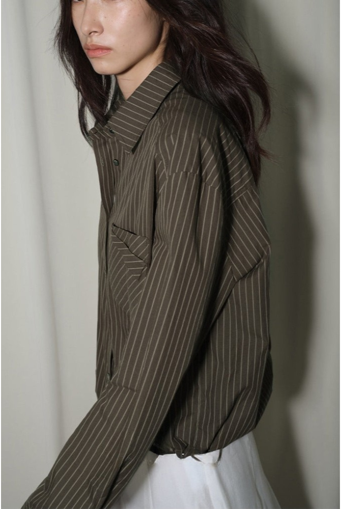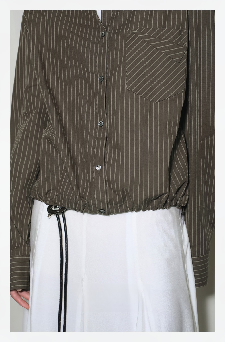 ヴィンテージ先染めストライプドローストリングシャツ B4315