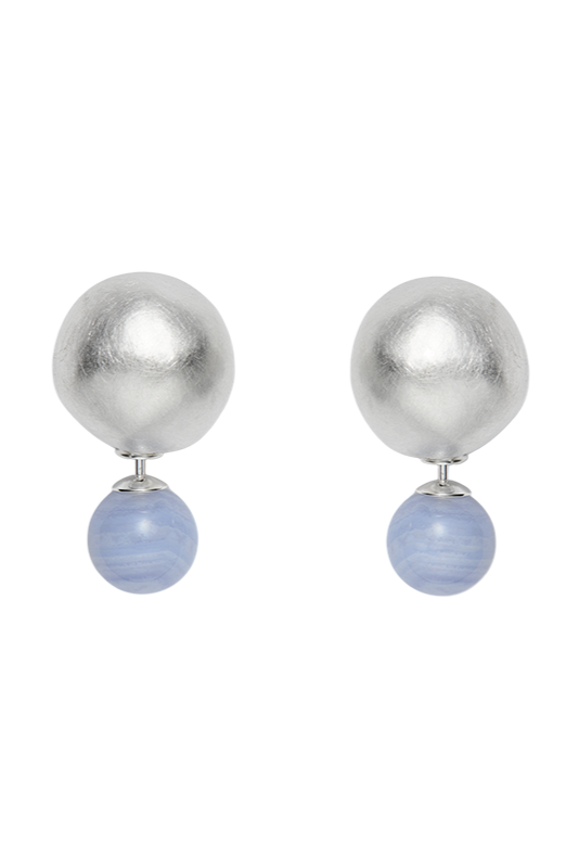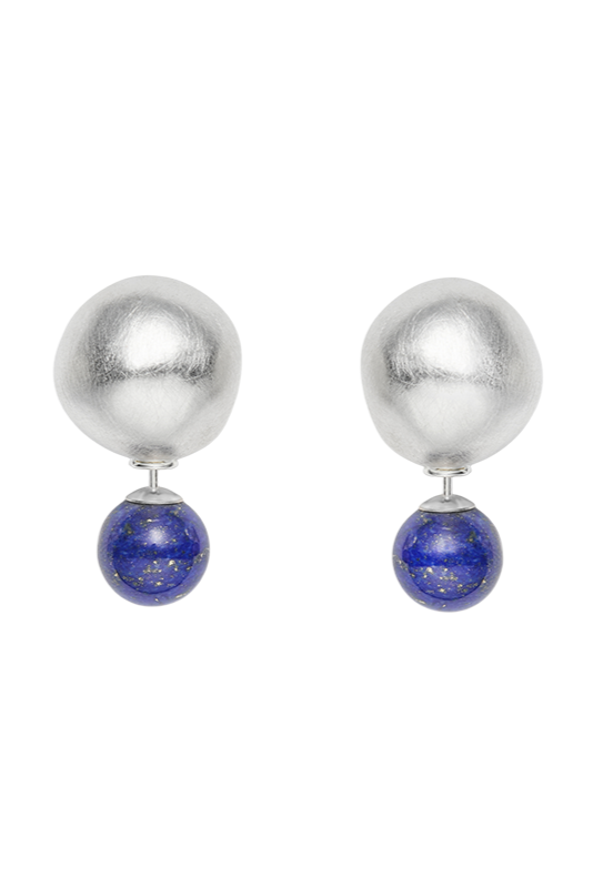Lapis Lazuli - 1 pair of double bead stud earrings