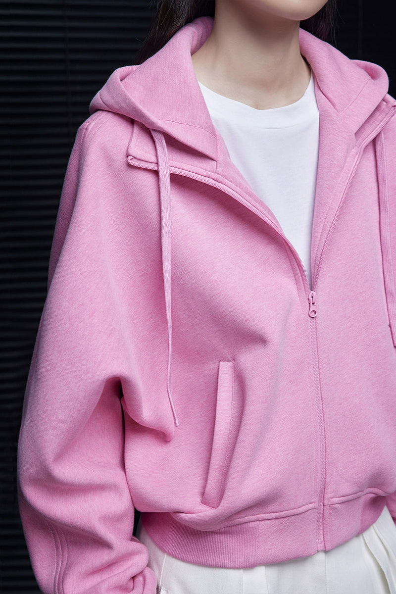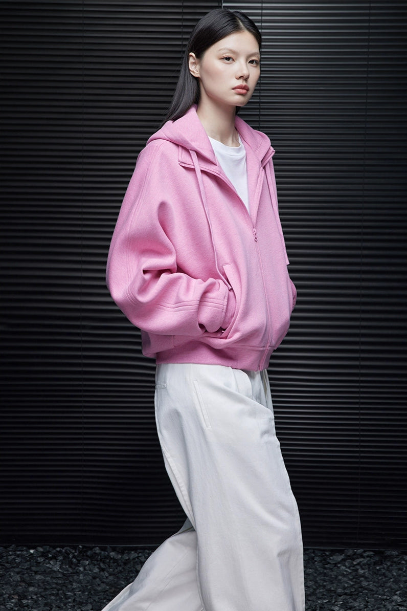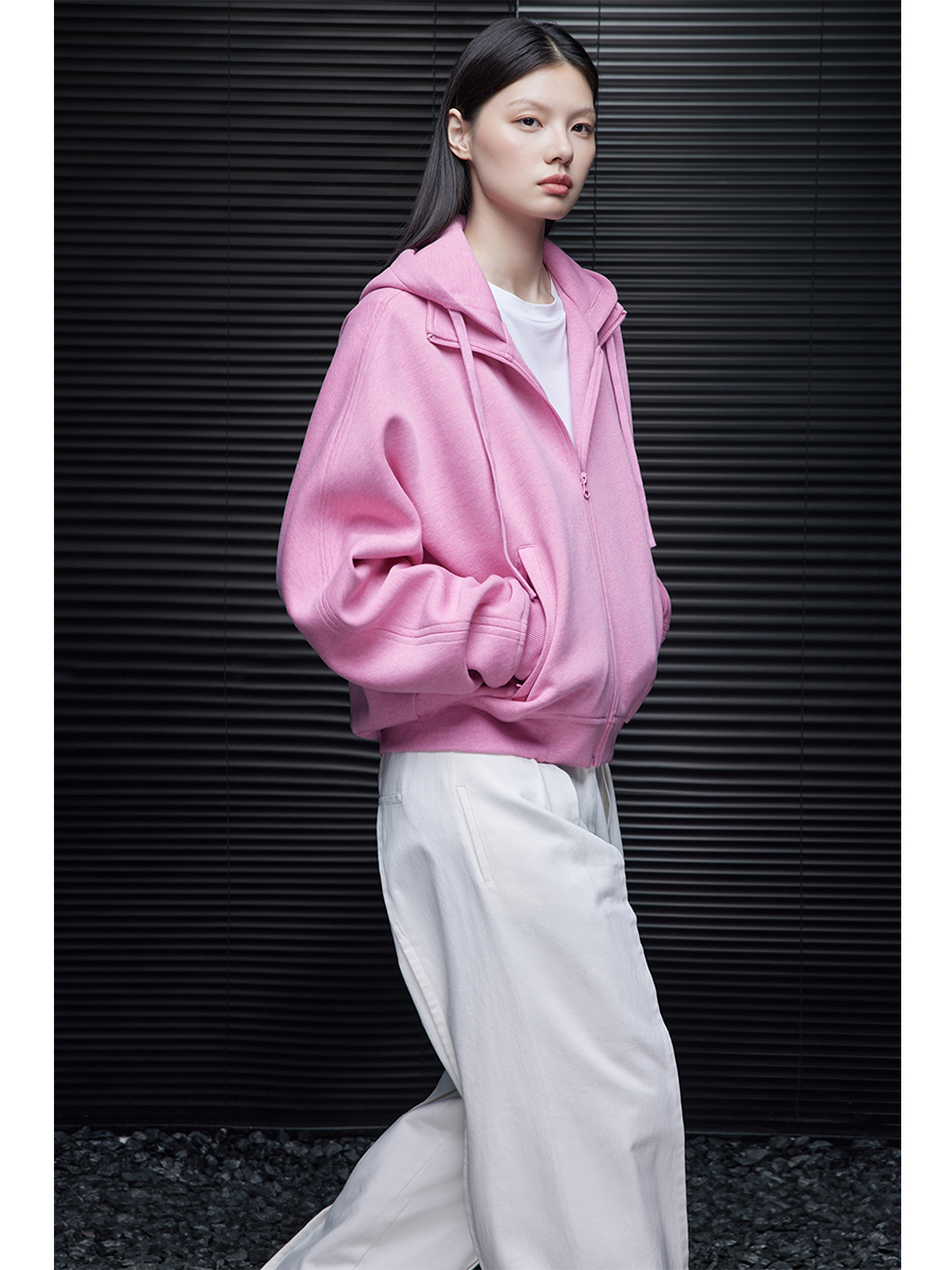 ピンクコットンショート丈パーカー B4353
