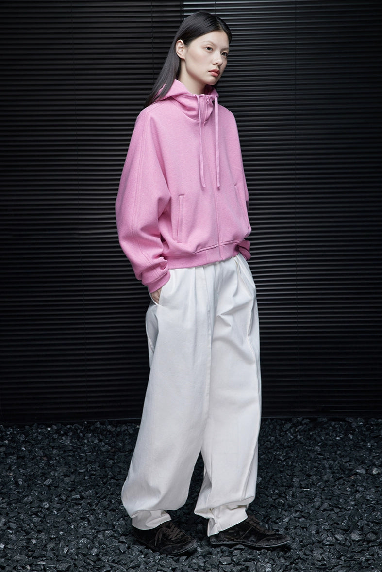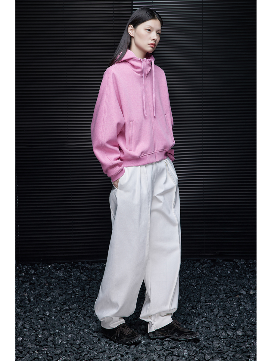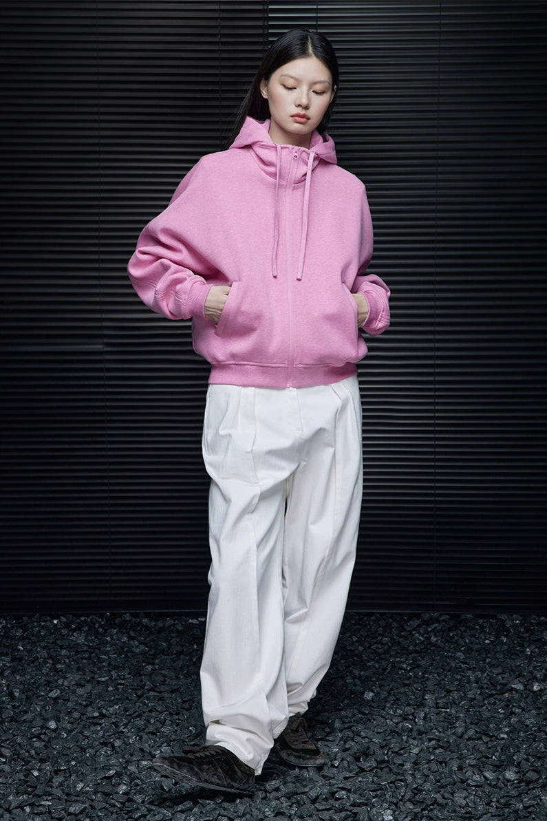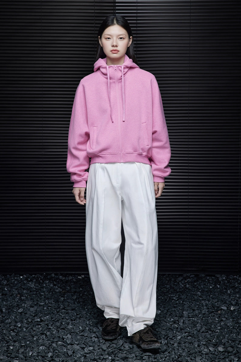ピンクコットンショート丈パーカー B4353