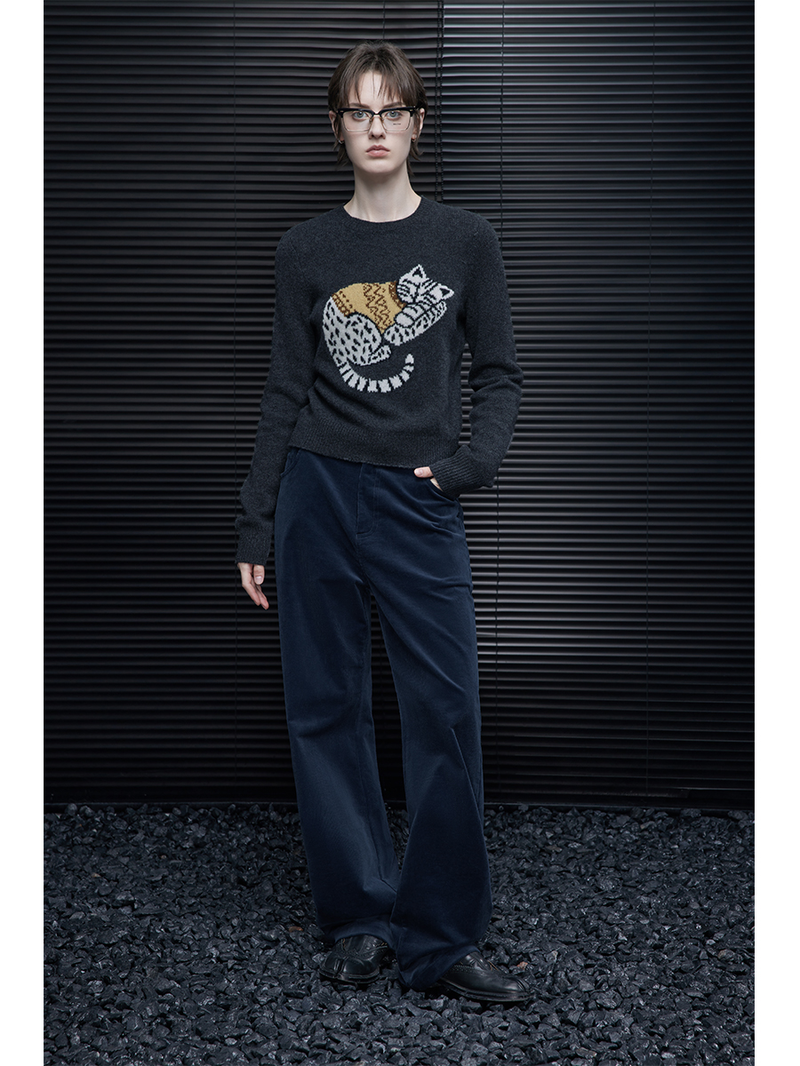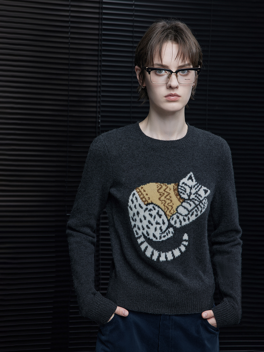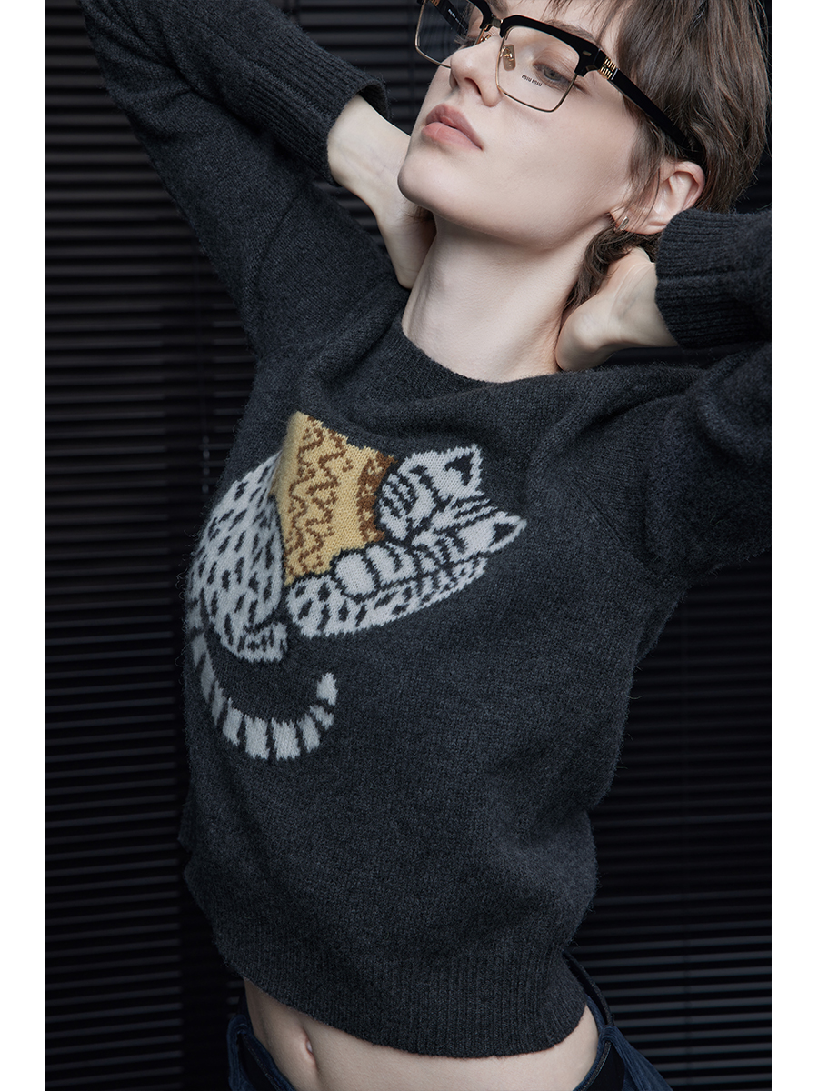セーター(遊び心のある猫柄、豊かな色彩のフワフワで上質な手触り)
