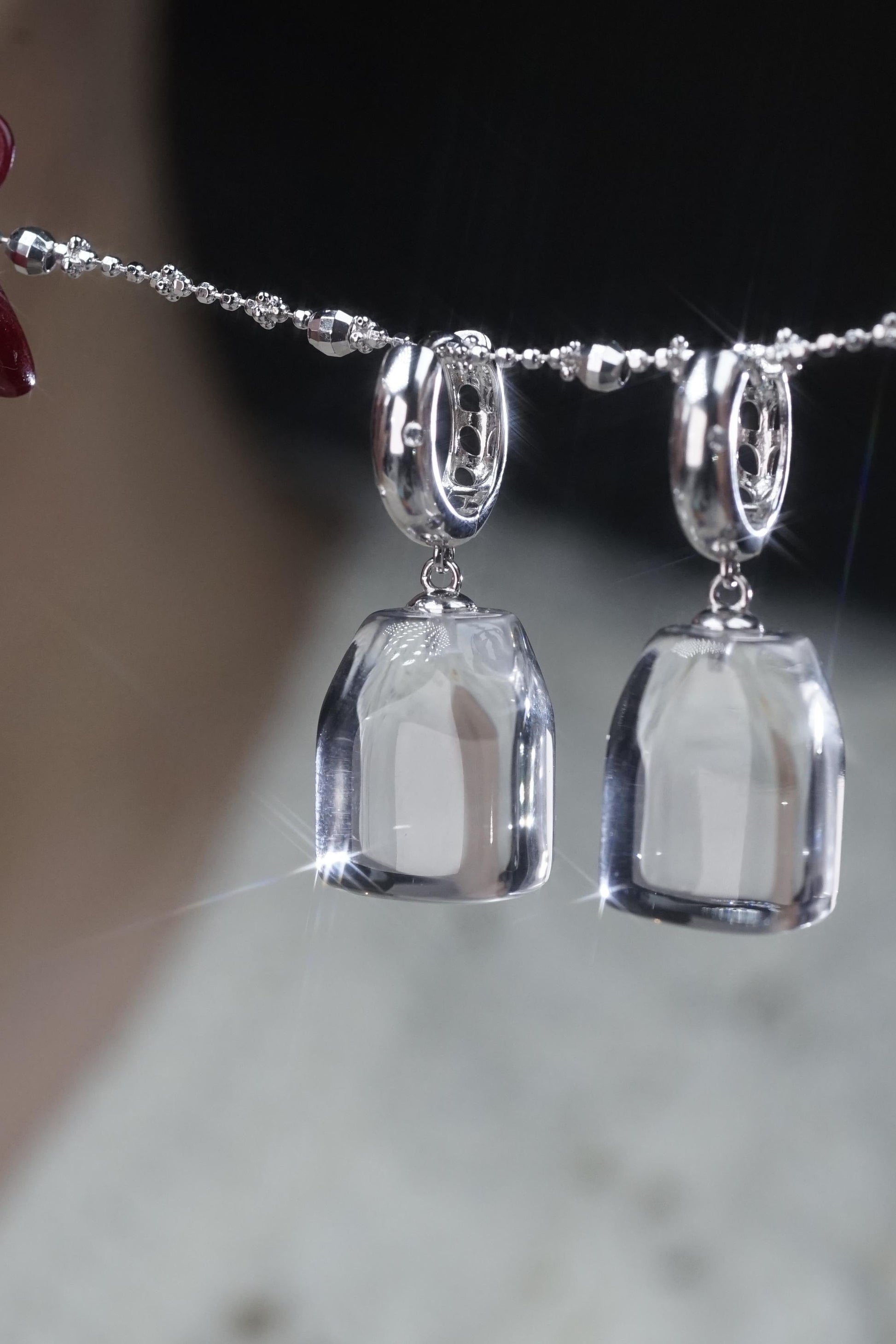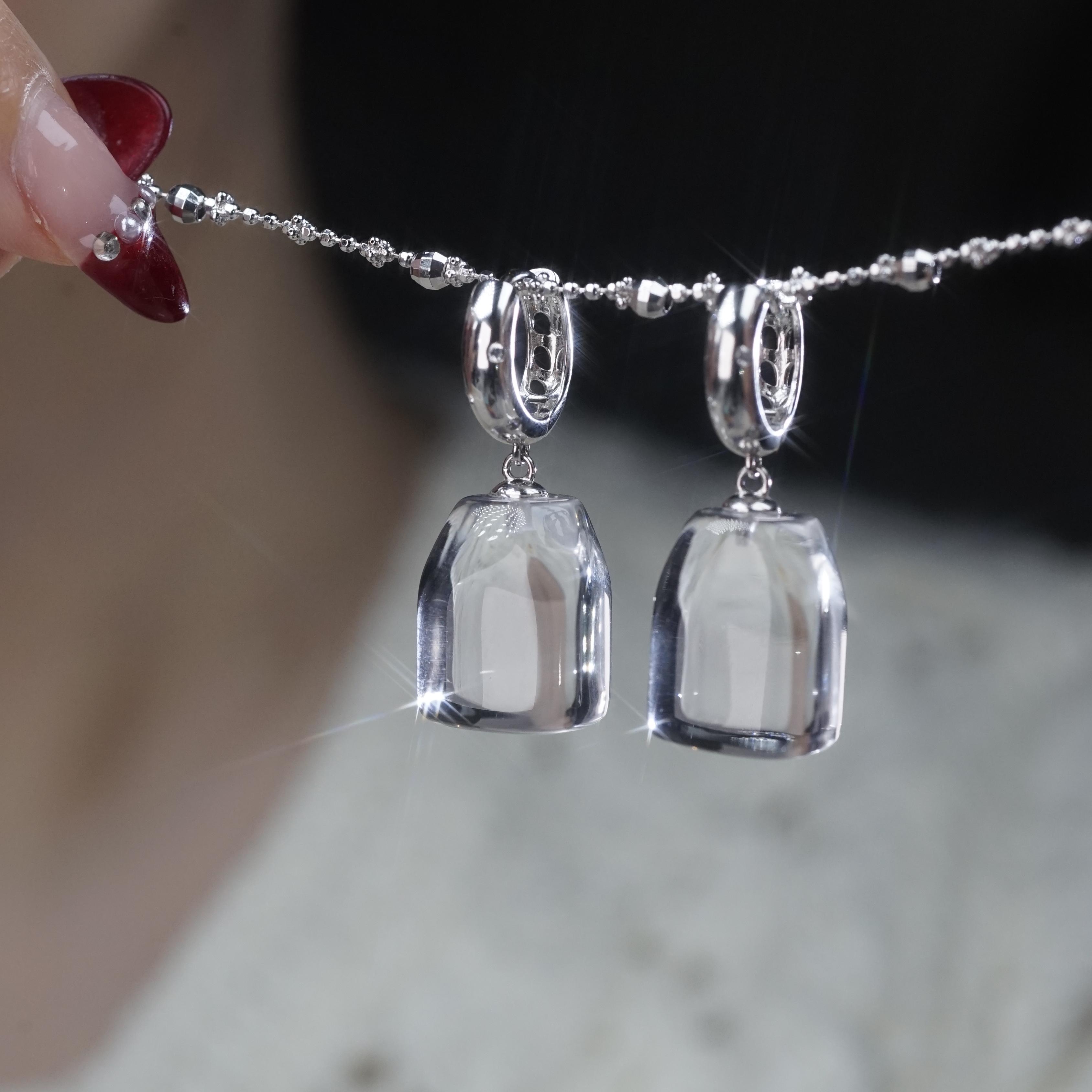 S925天然ホワイトクリスタル7Aグレードスクエアピアス B4382