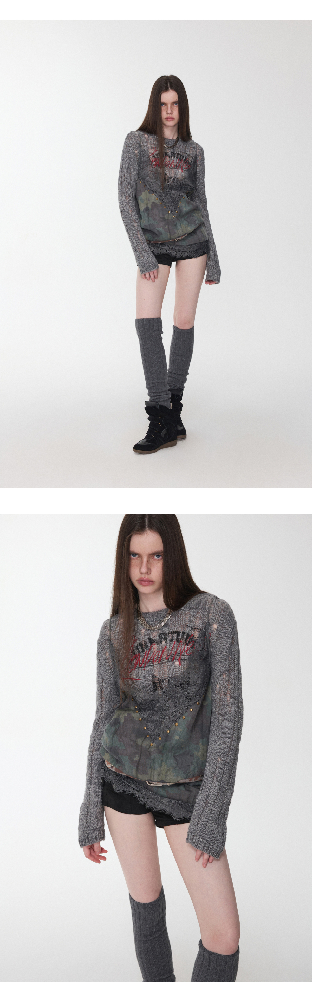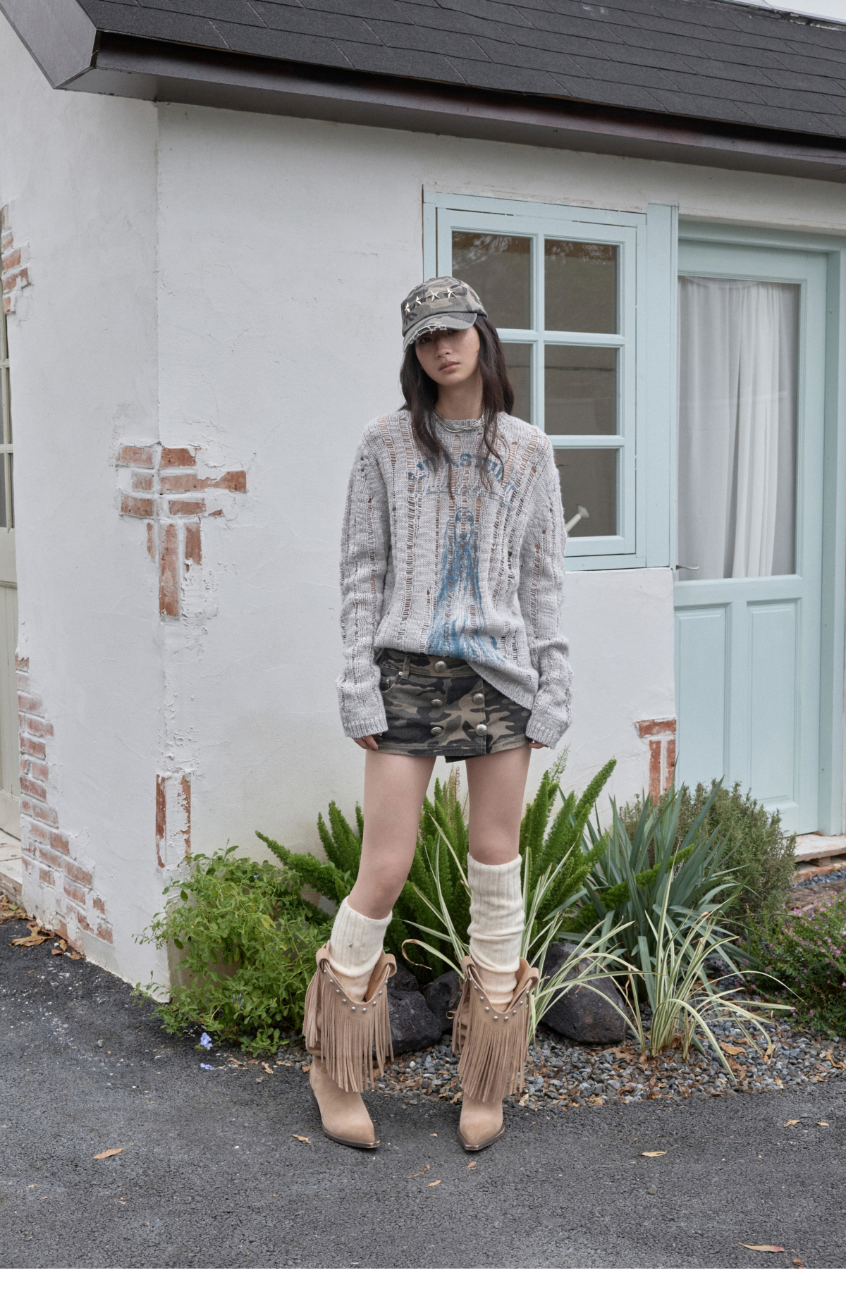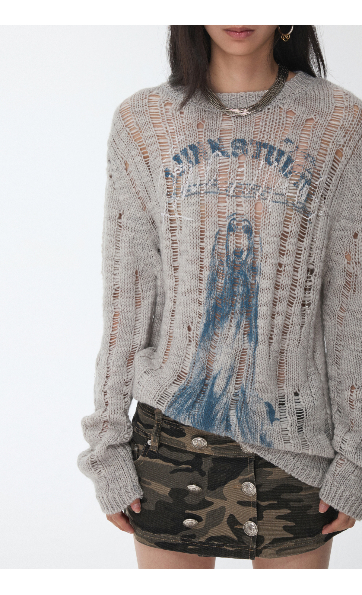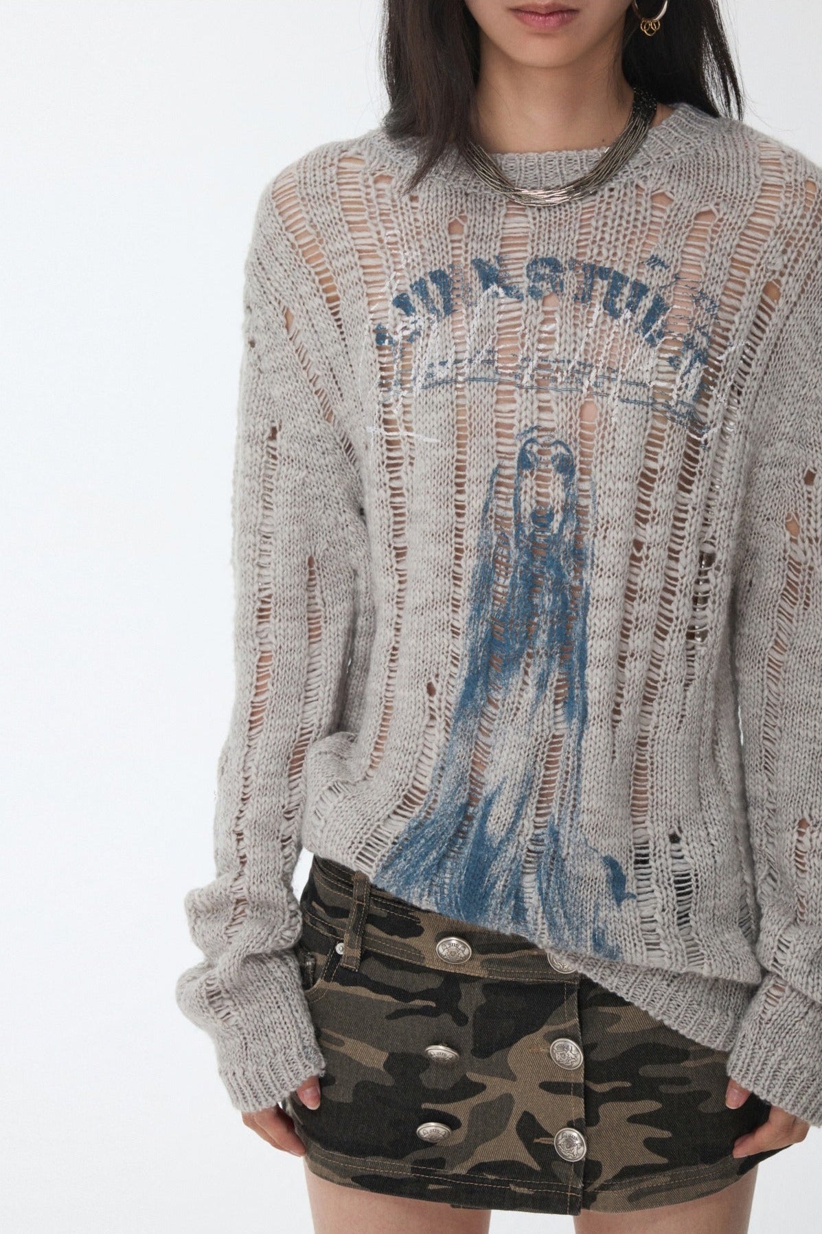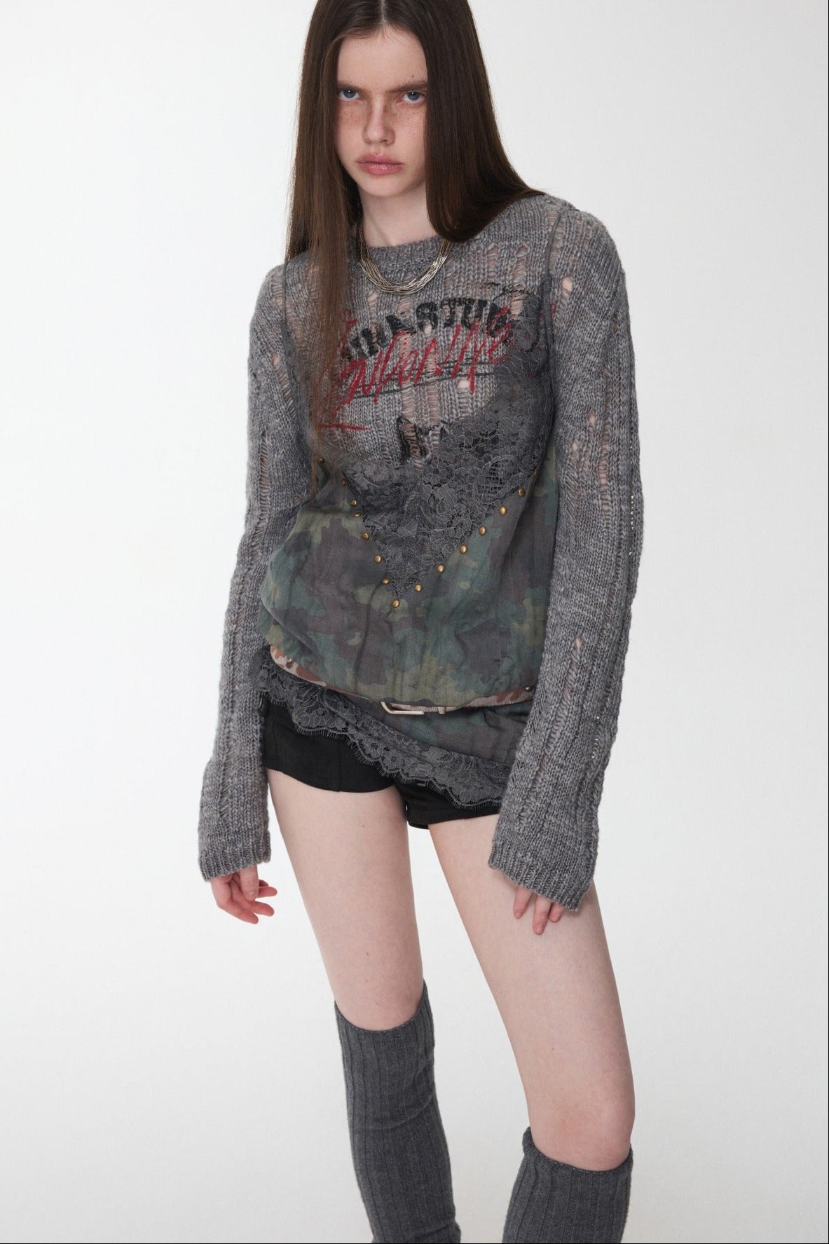 オープンワーでダメージ感を演出し、アニマルモチーフにした遊び心のあるストリートスタイル