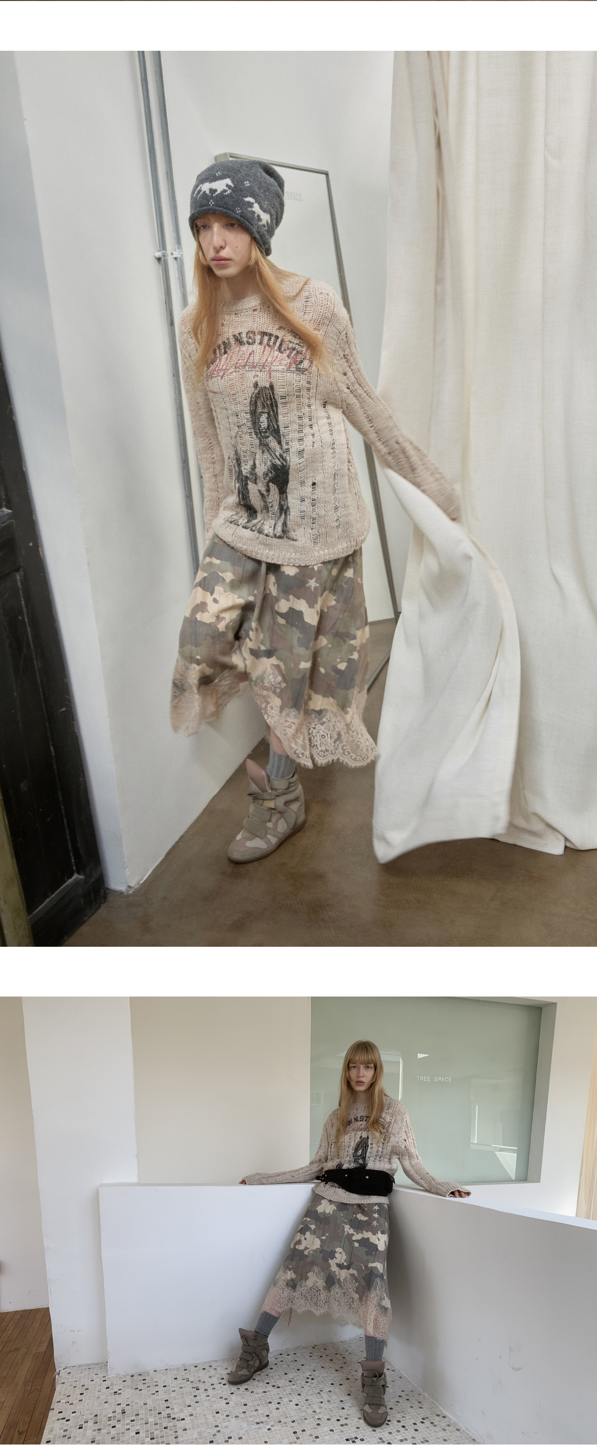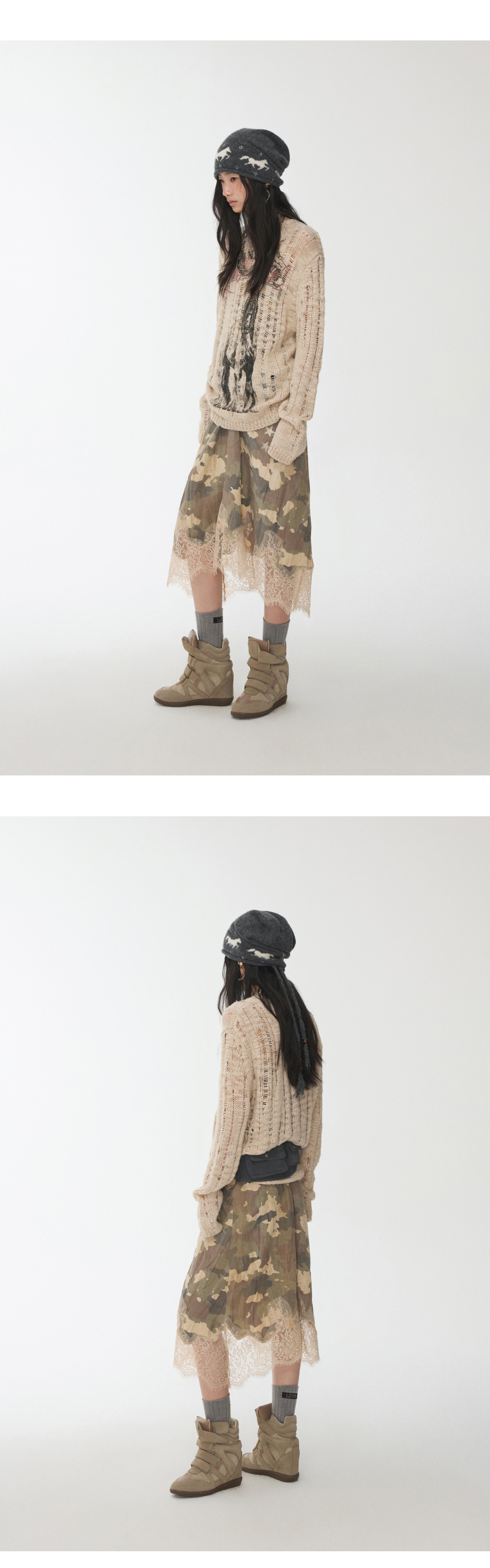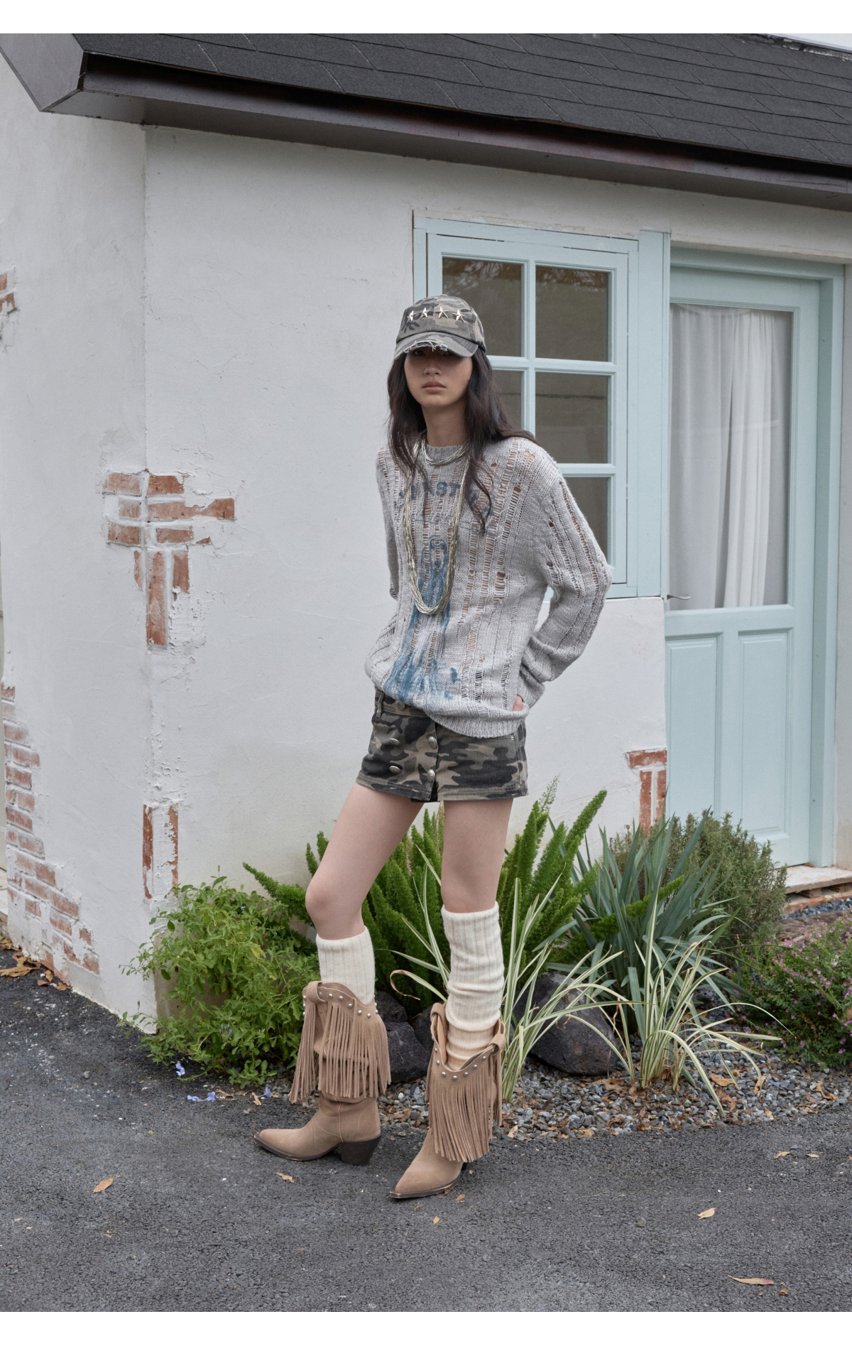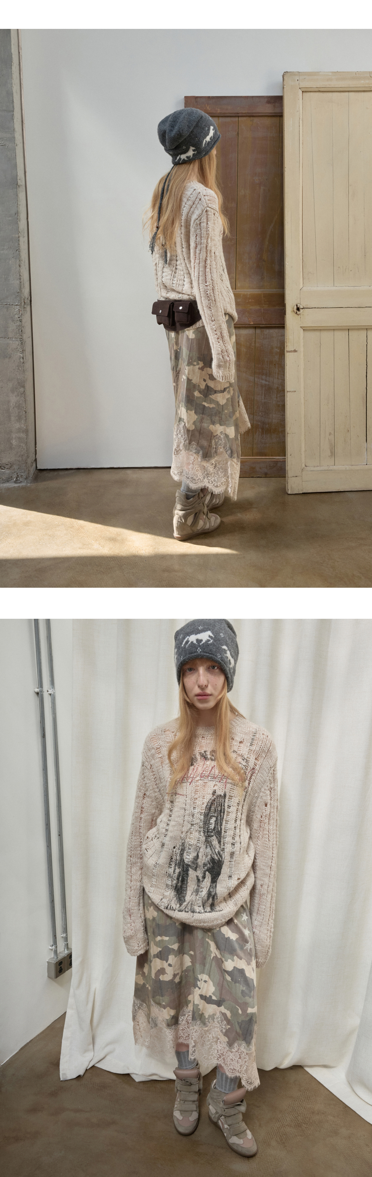 オープンワーでダメージ感を演出し、アニマルモチーフにした遊び心のあるストリートスタイル