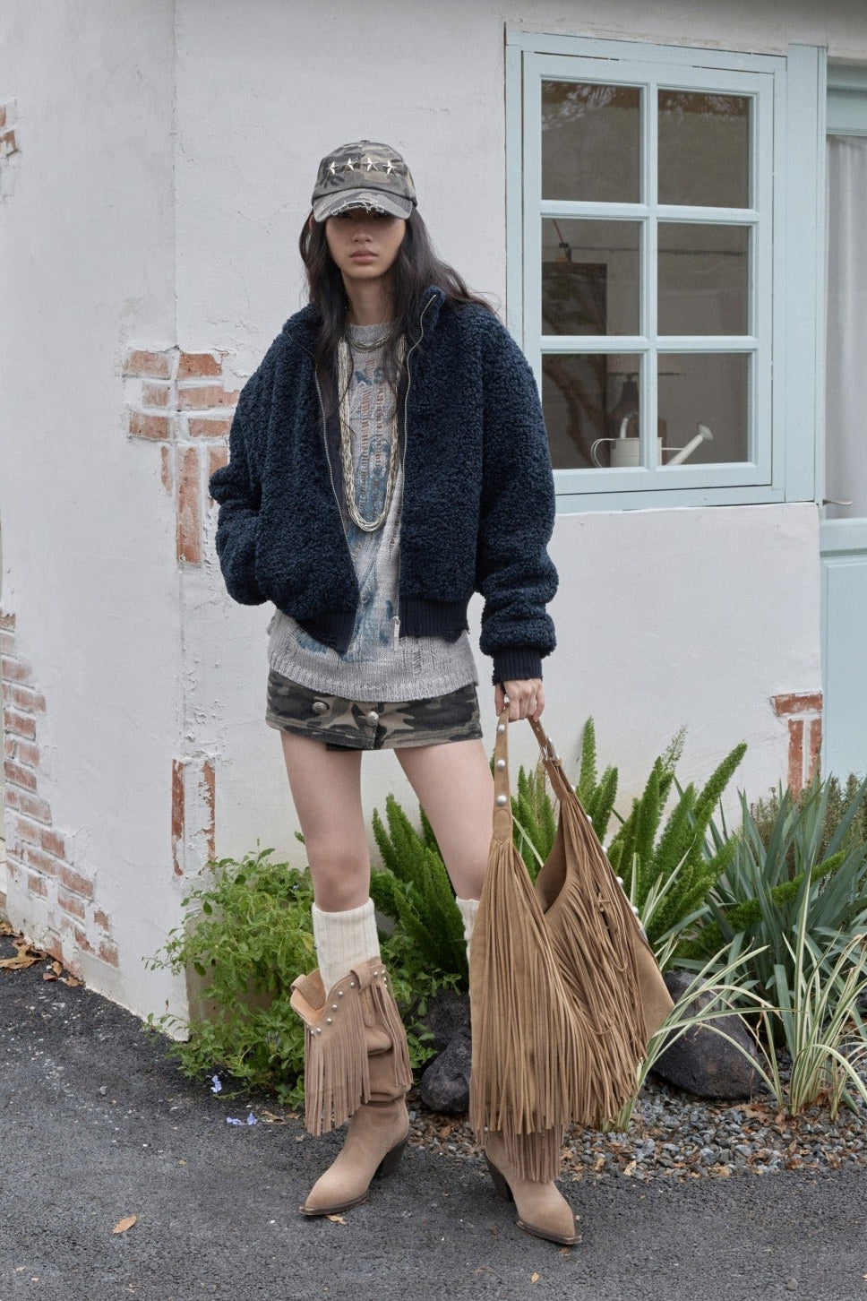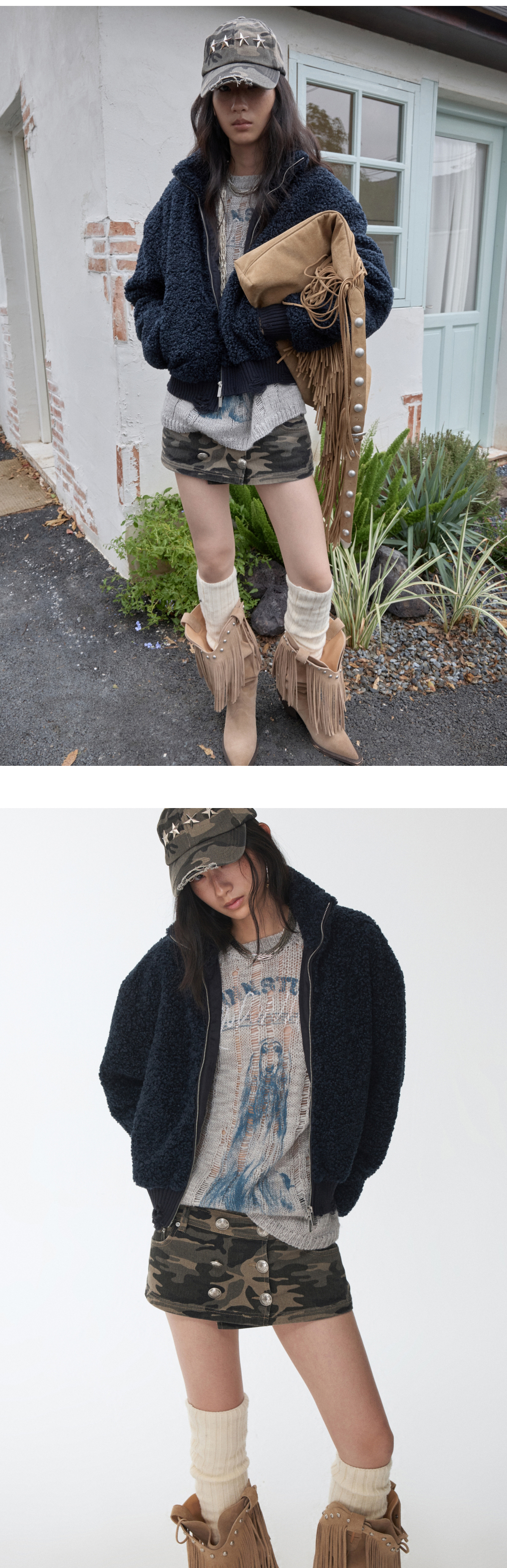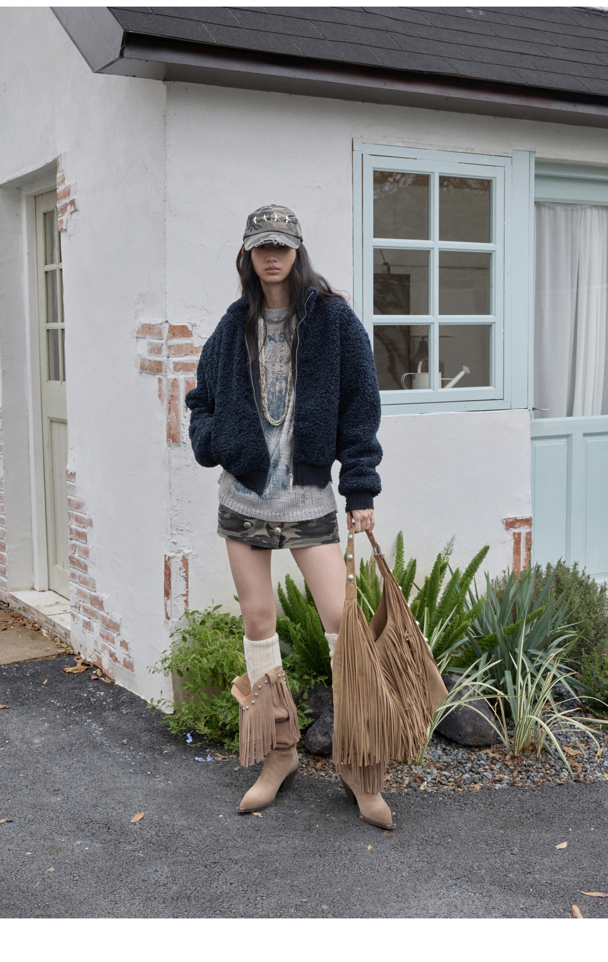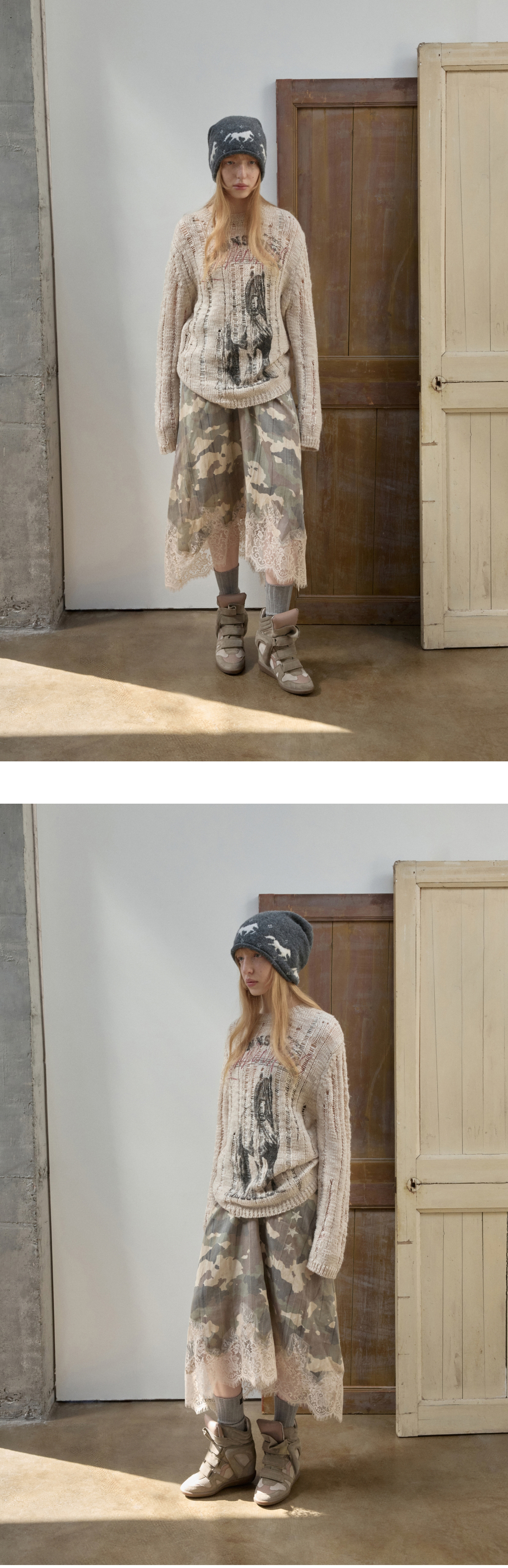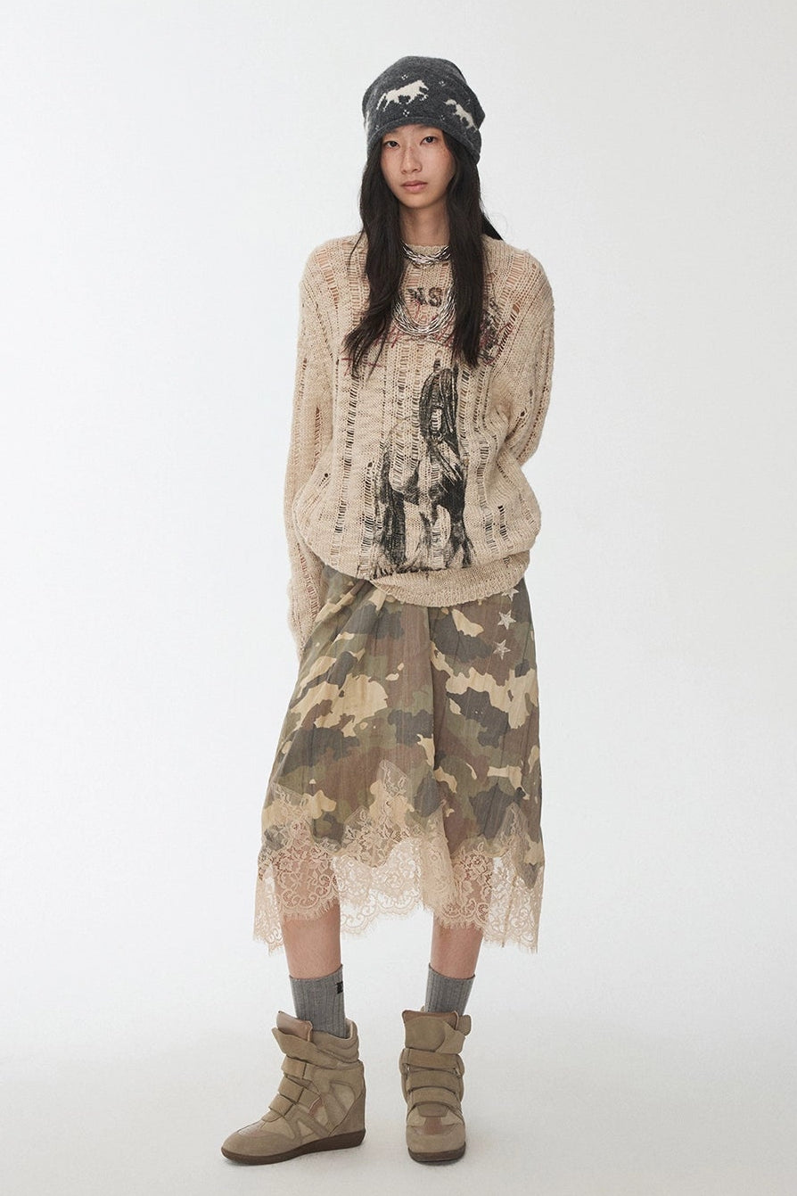 オープンワーでダメージ感を演出し、アニマルモチーフにした遊び心のあるストリートスタイル