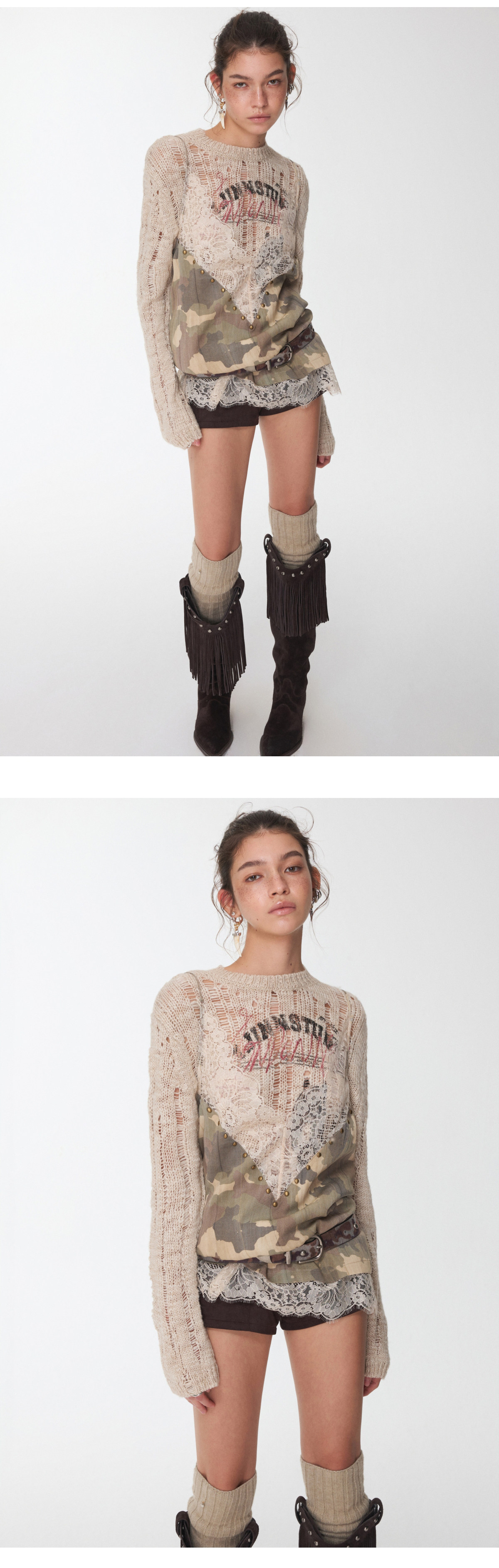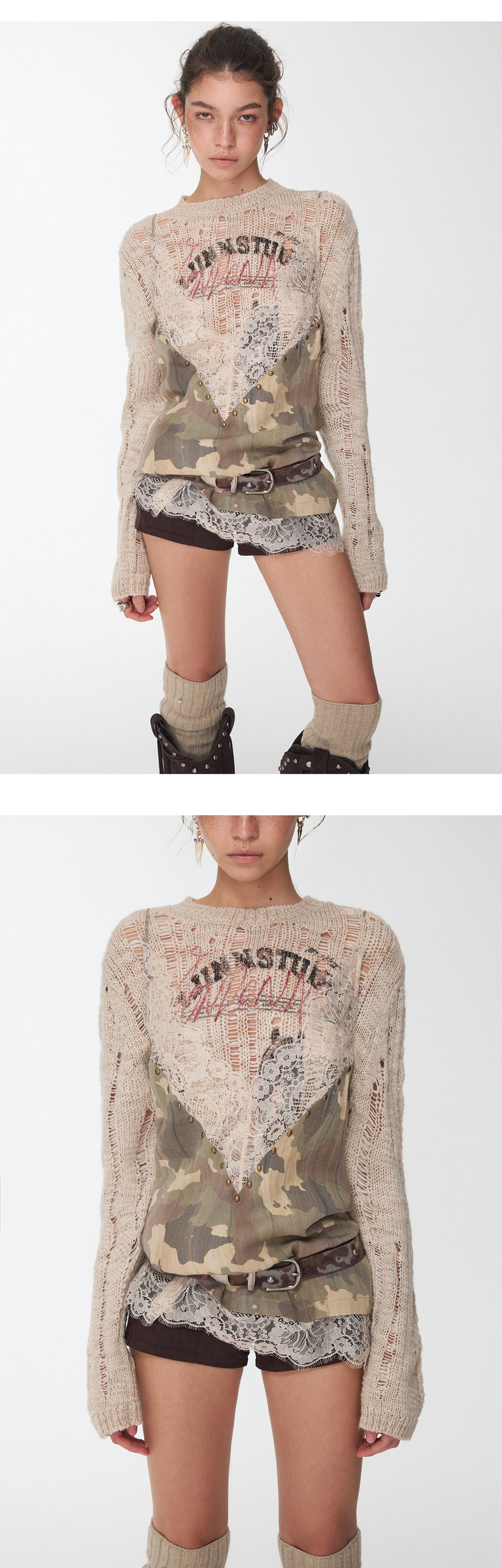カモフラージュVネックラインストーンキャミソール B4393