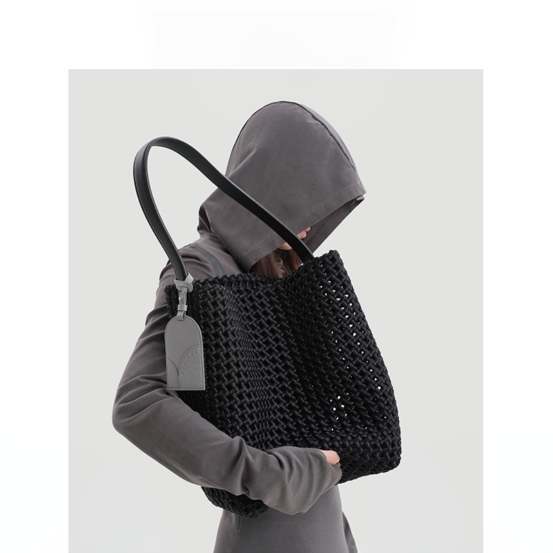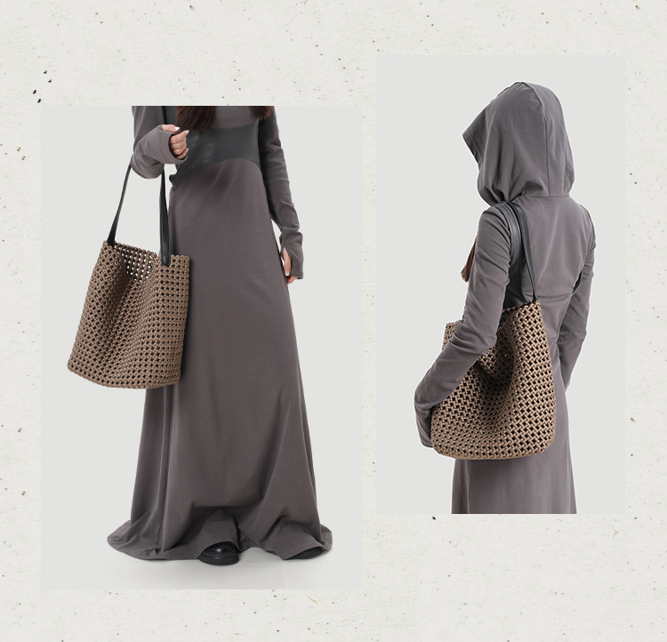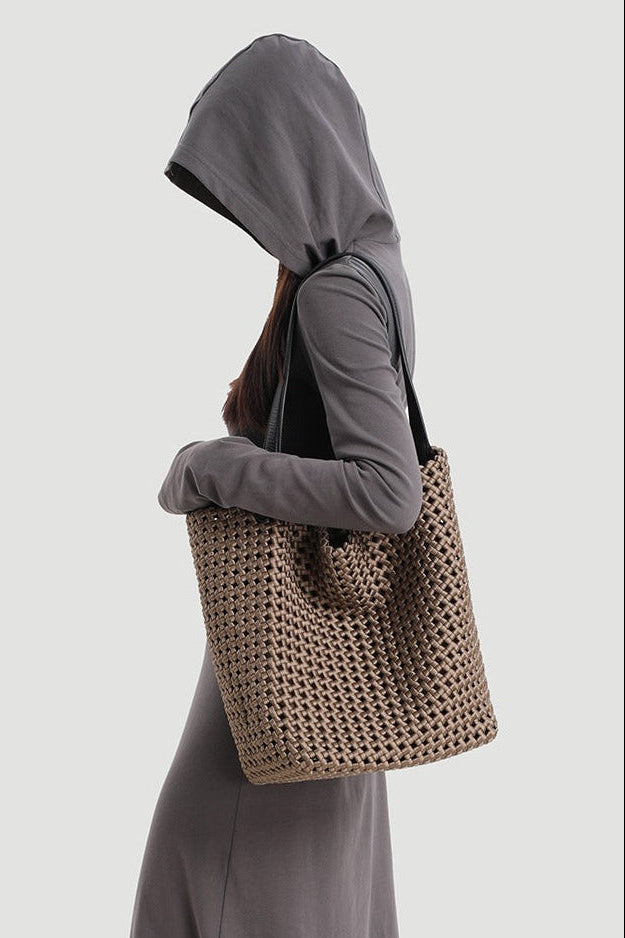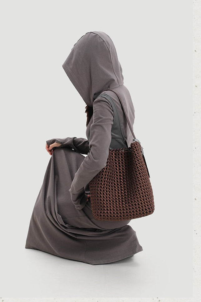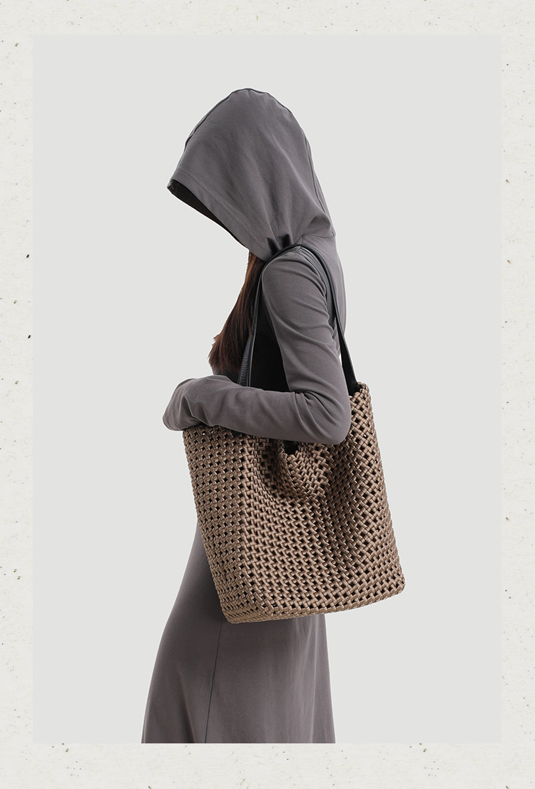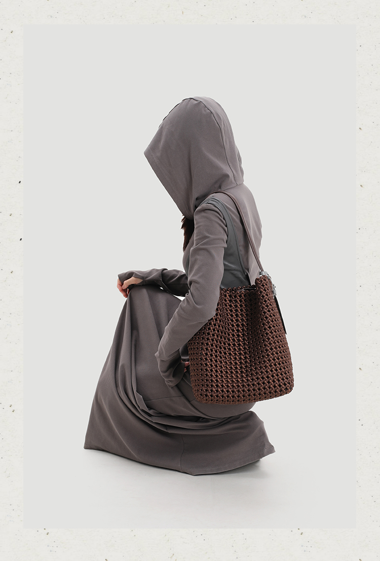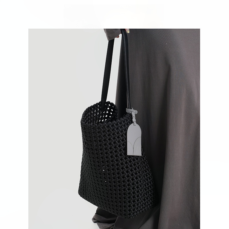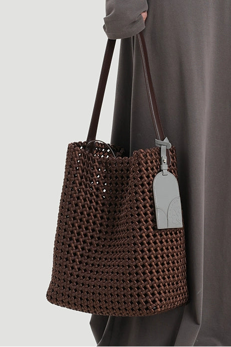 本革手編みシングルショルダーバケットバッグ B4409