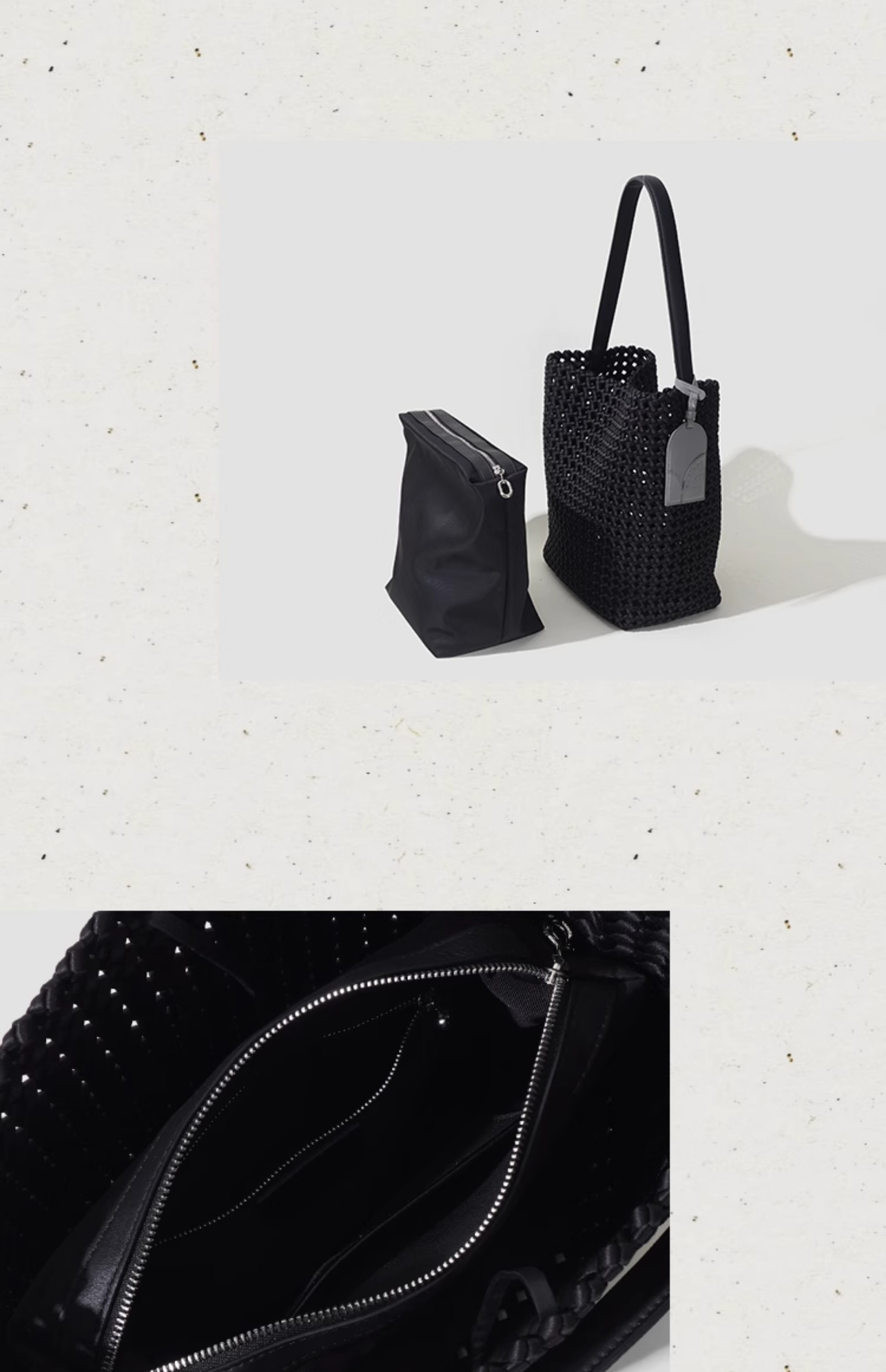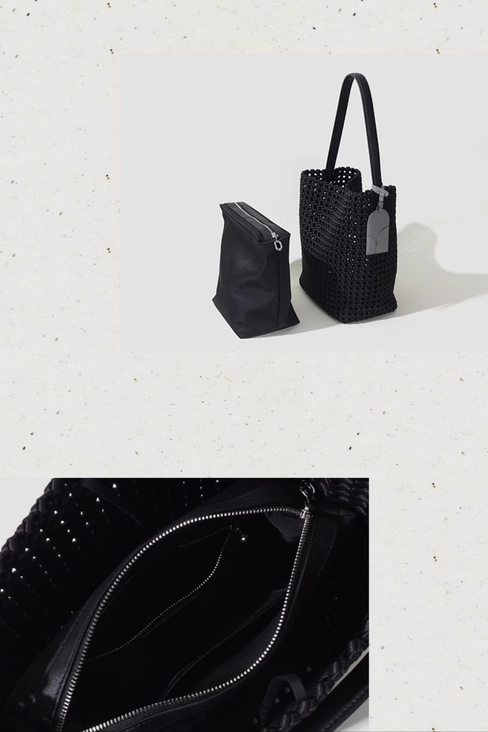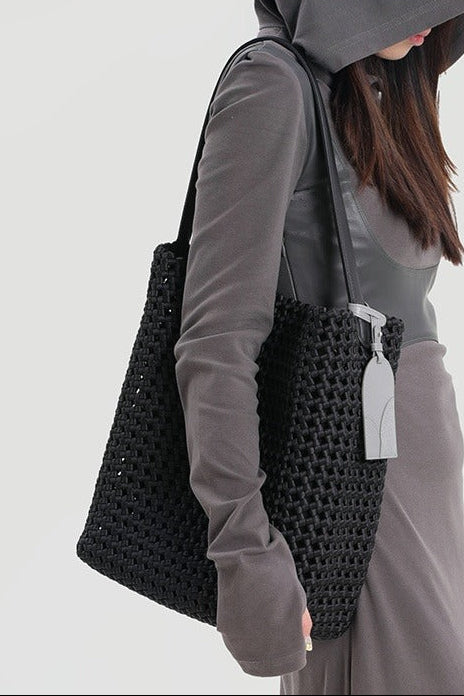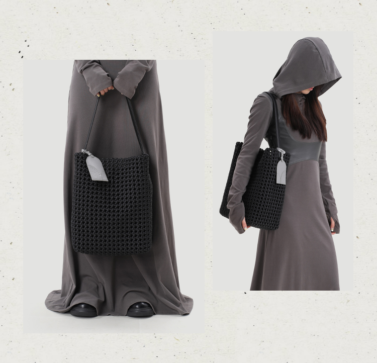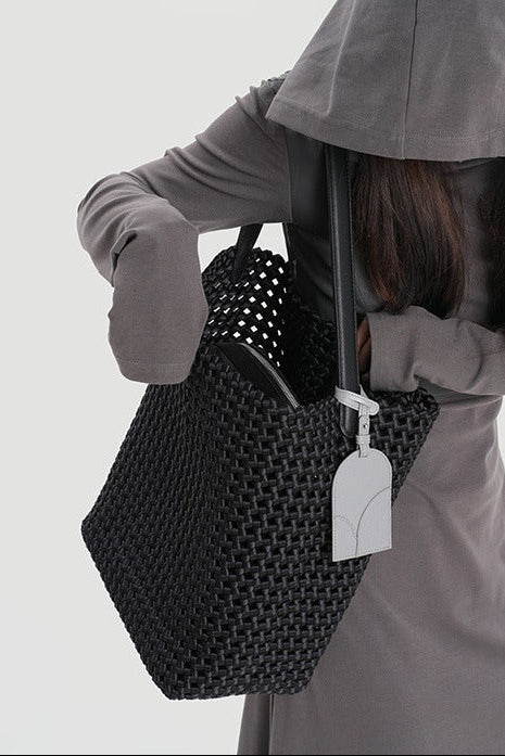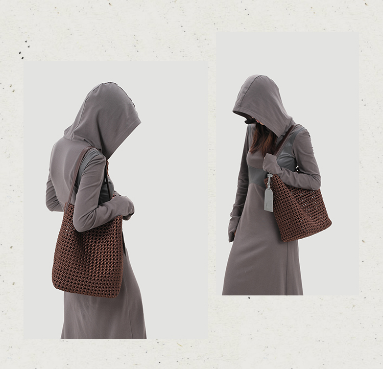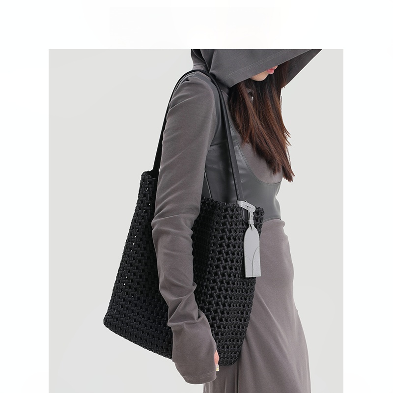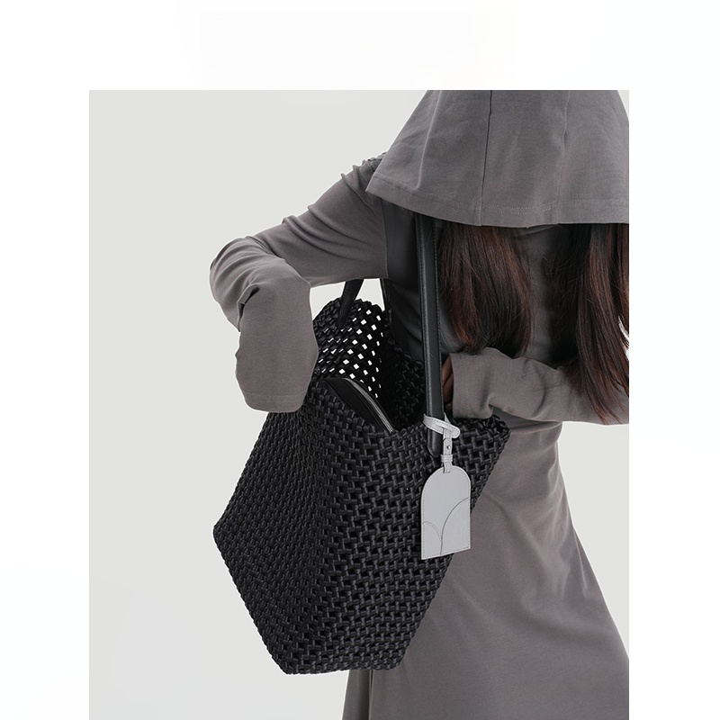 本革手編みシングルショルダーバケットバッグ B4409