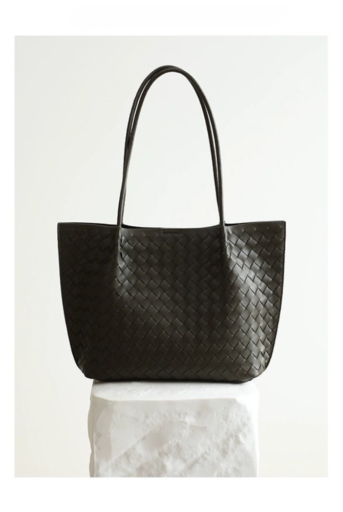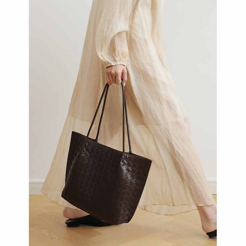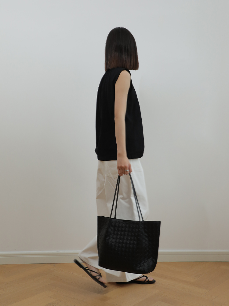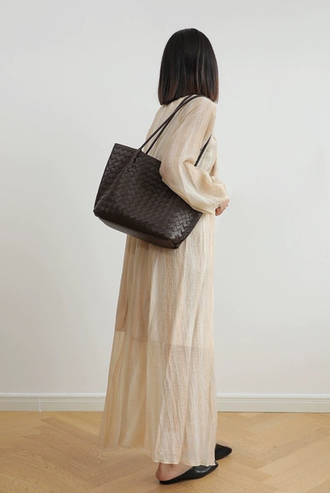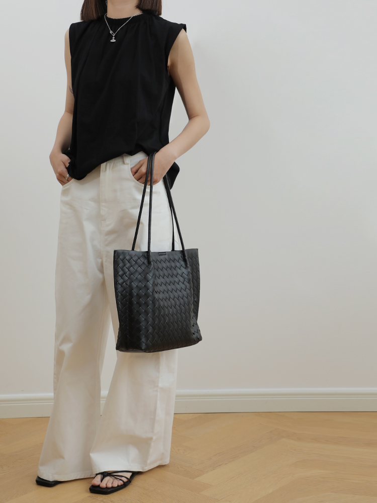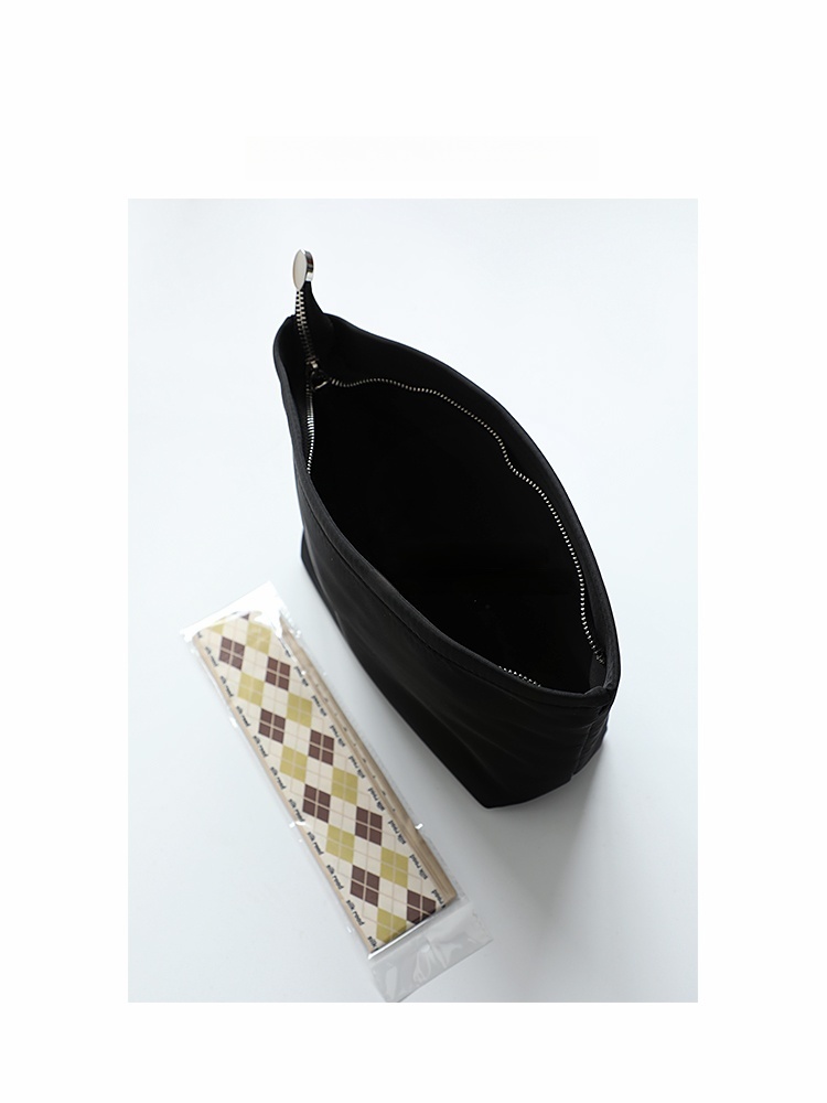 丸い牛革ショルダーストラップをバッグの内側に縫い付ける事で、立体感と上品な印象