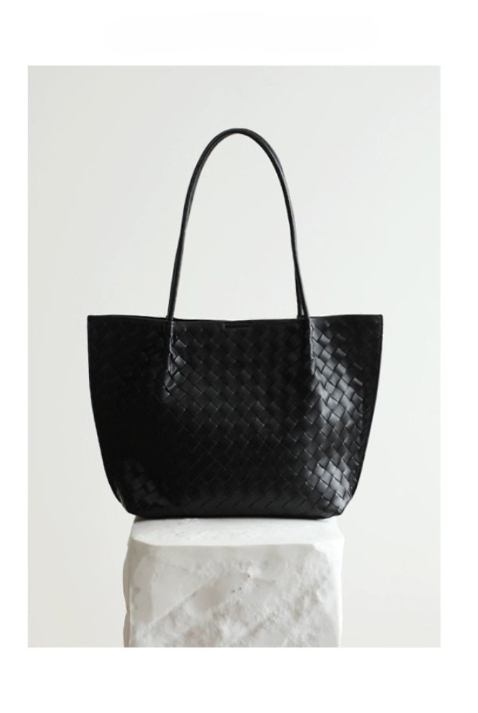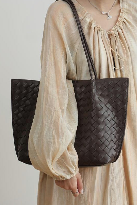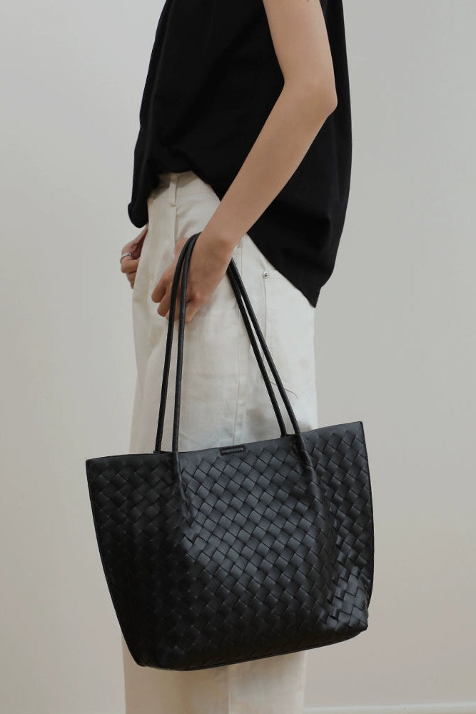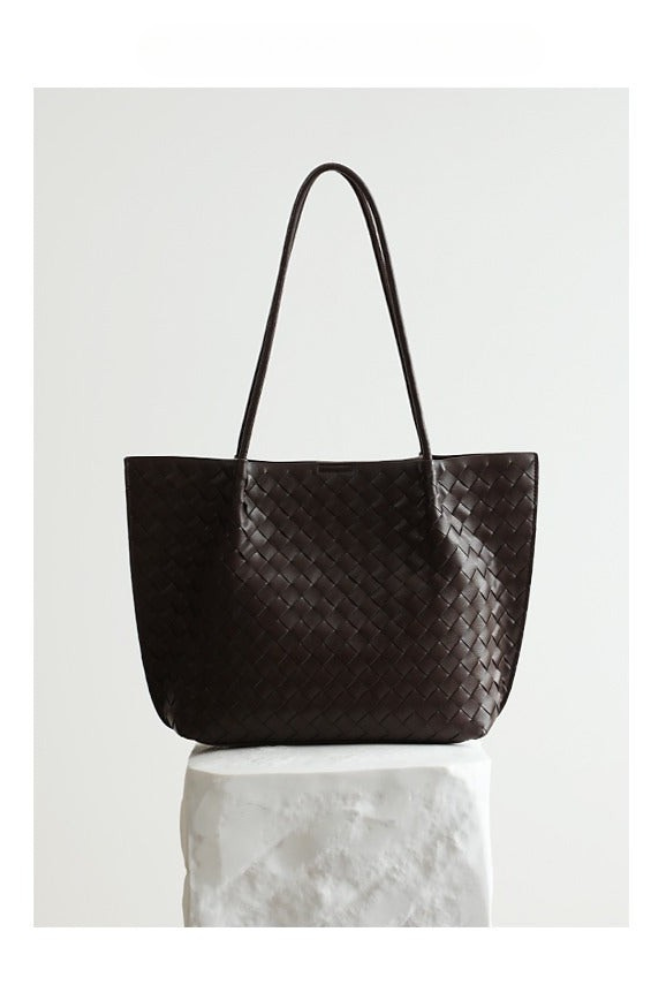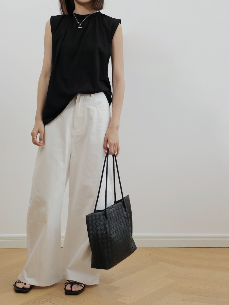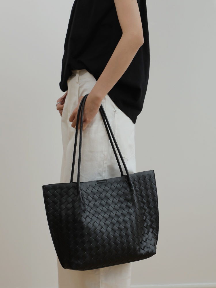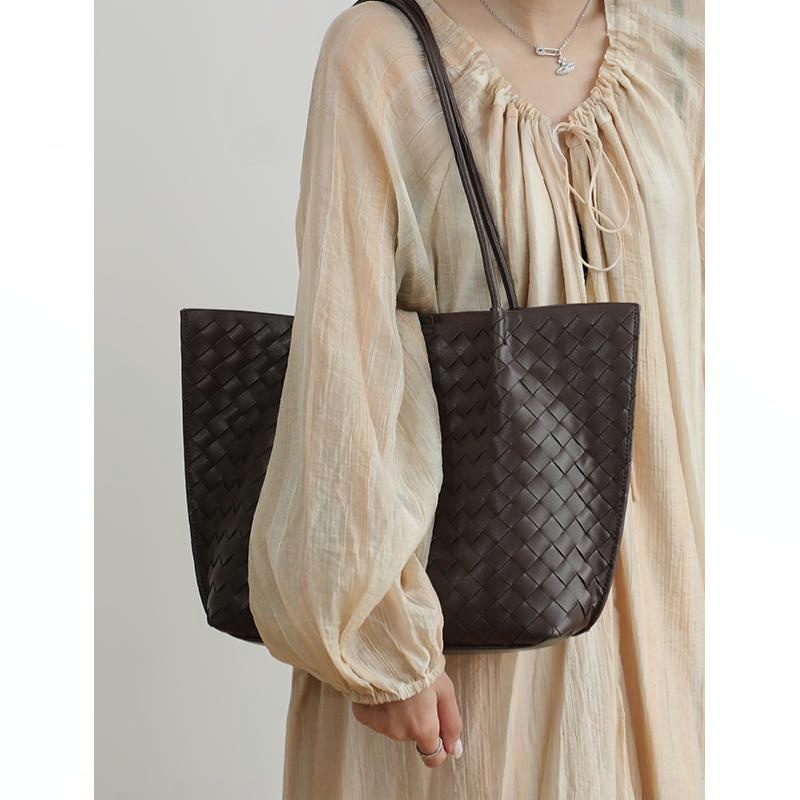 丸い牛革ショルダーストラップをバッグの内側に縫い付ける事で、立体感と上品な印象