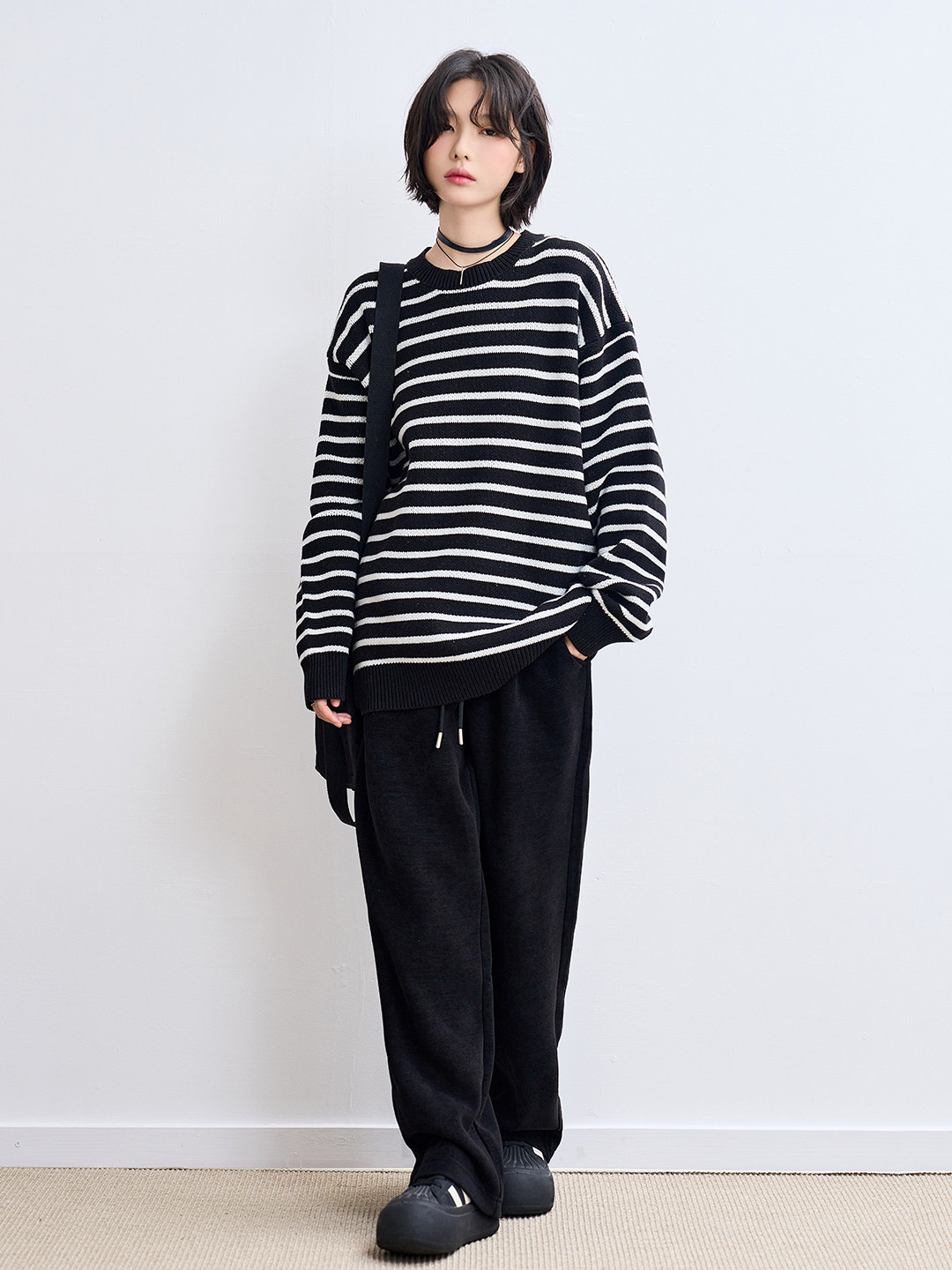 ルーズストレートパンツ(ウエストは調節可能なドローストリングで快適な着心地)