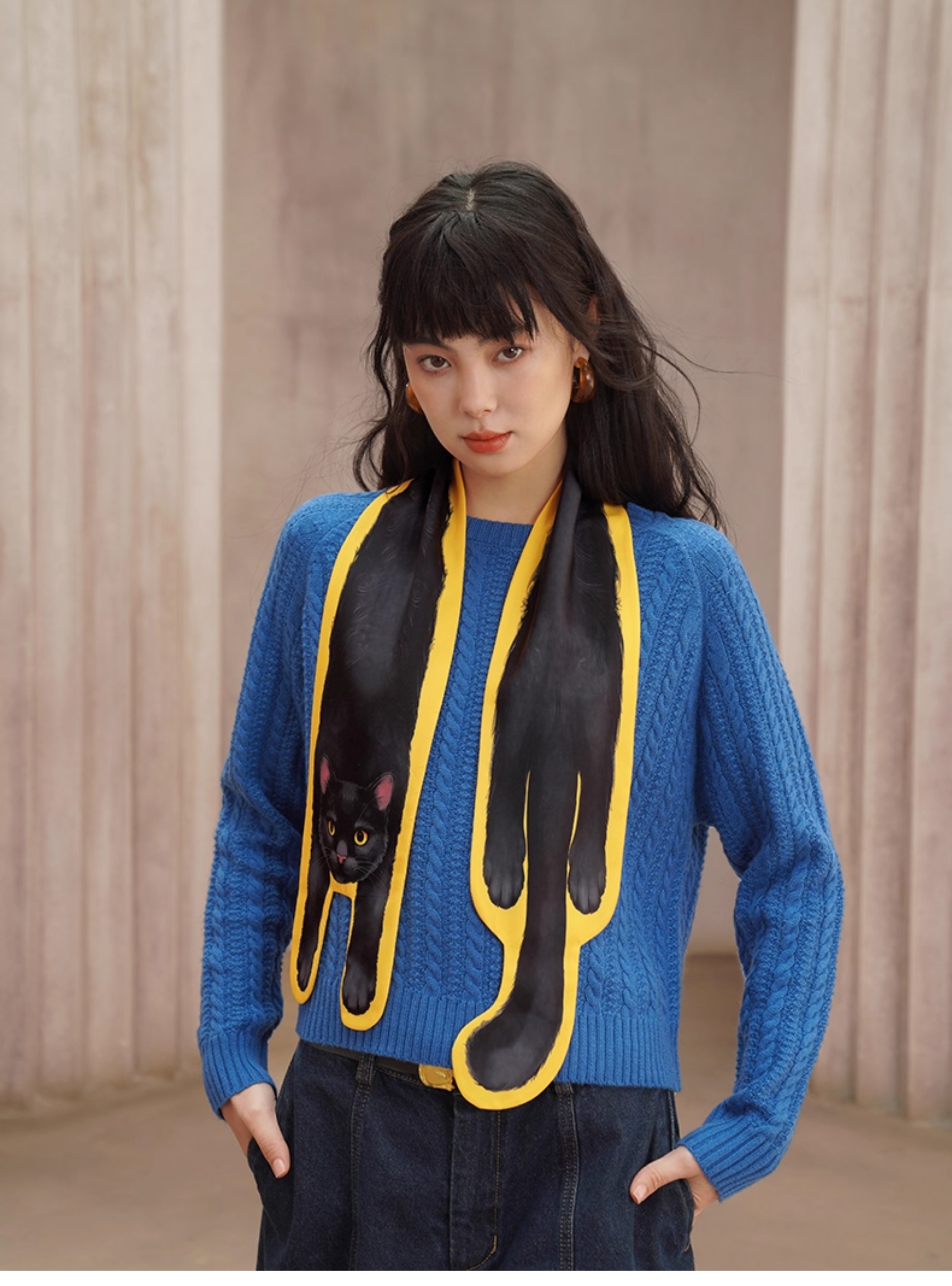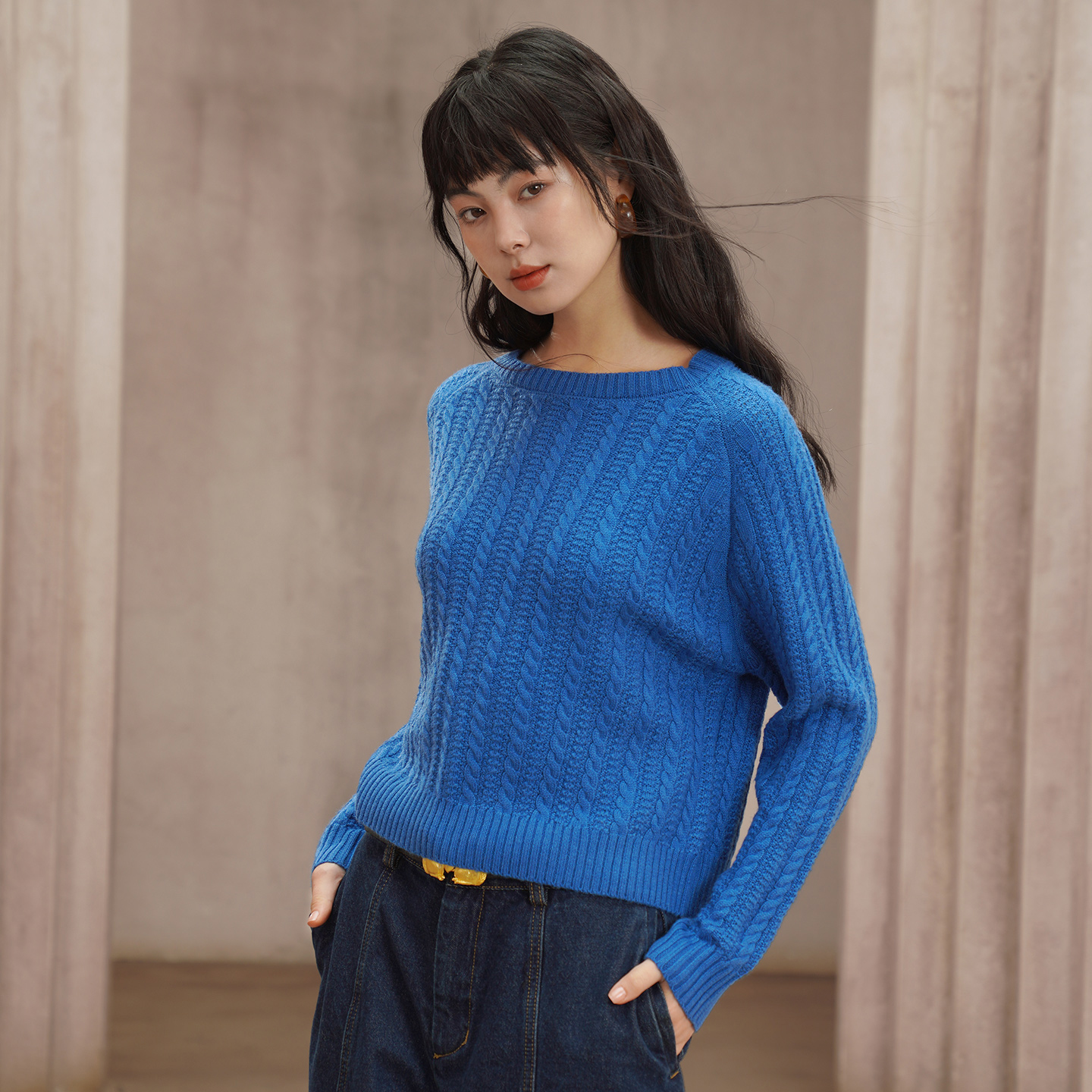 セーター(発色の綺麗な、ケーブル編みのちょっとレトロなアイテム)