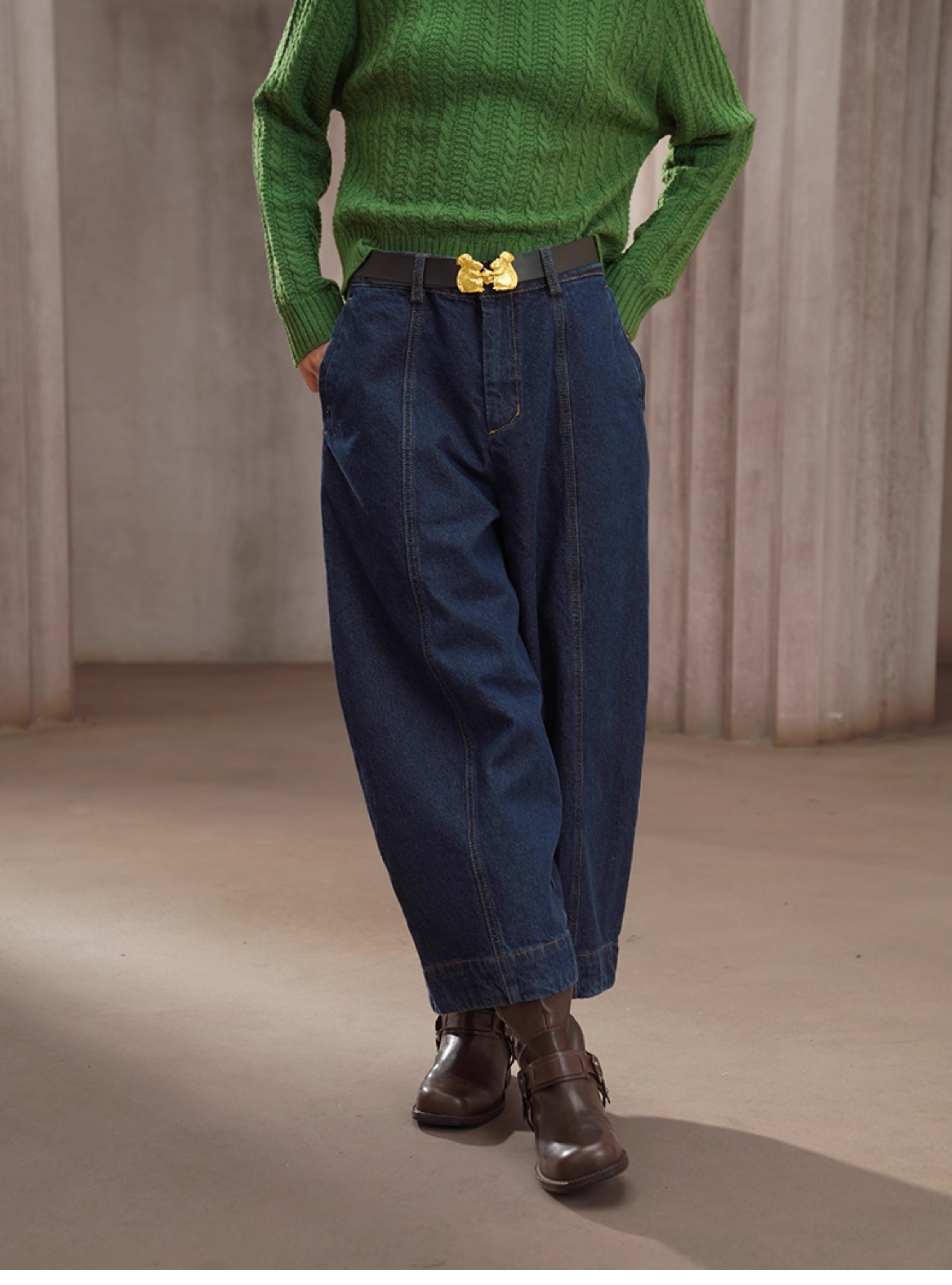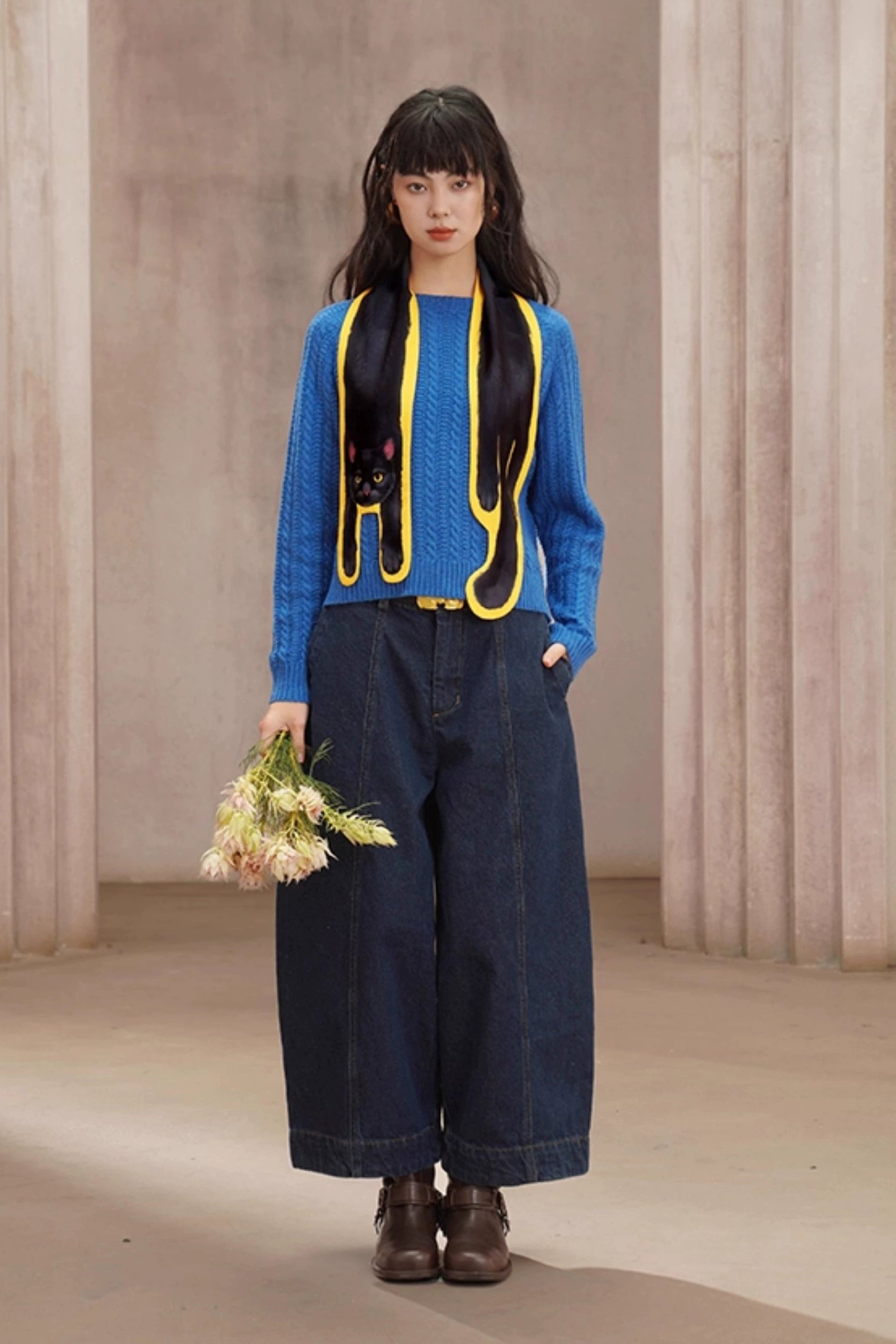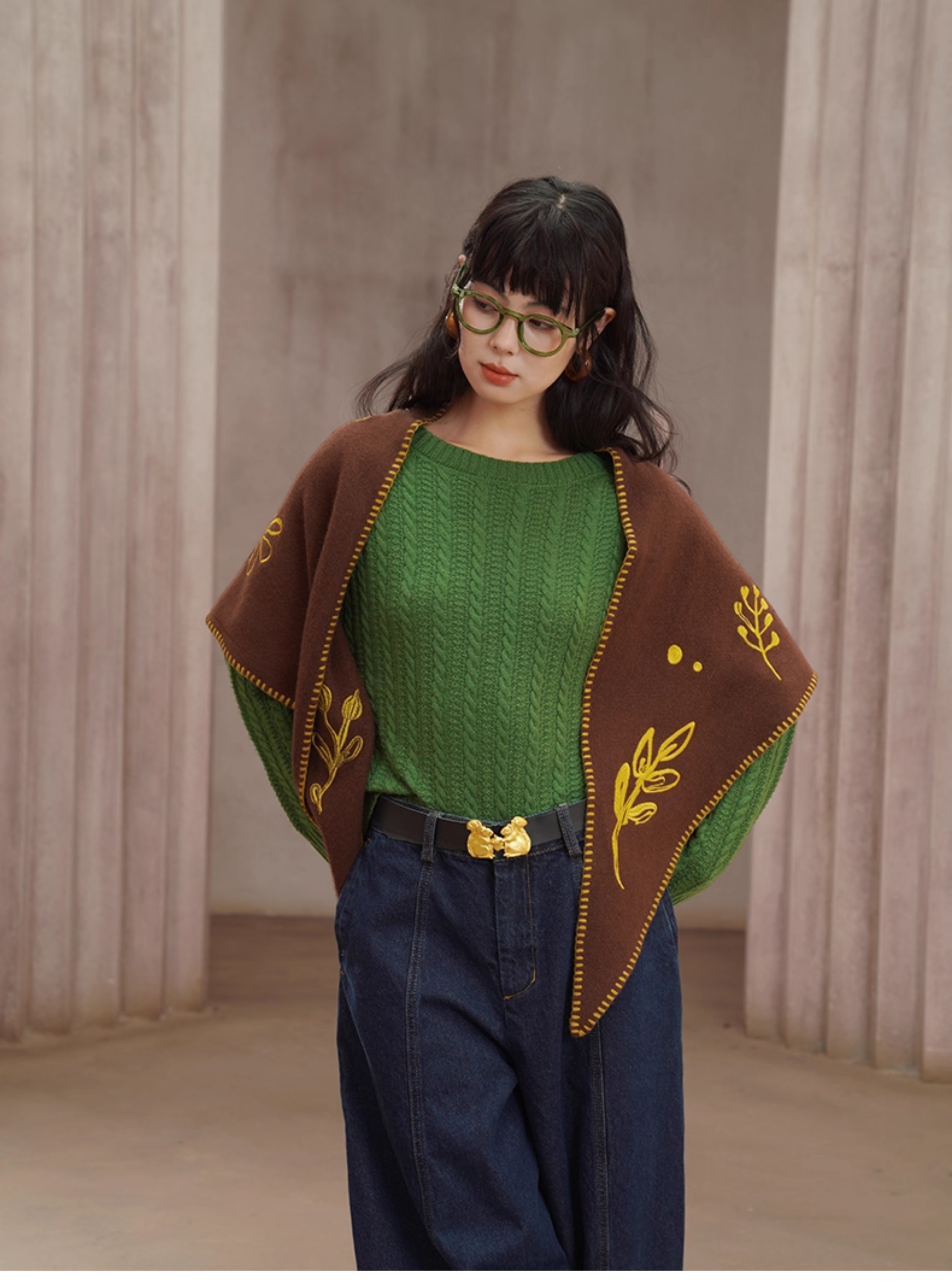 レトロケーブルニットウール混セーター B4454
