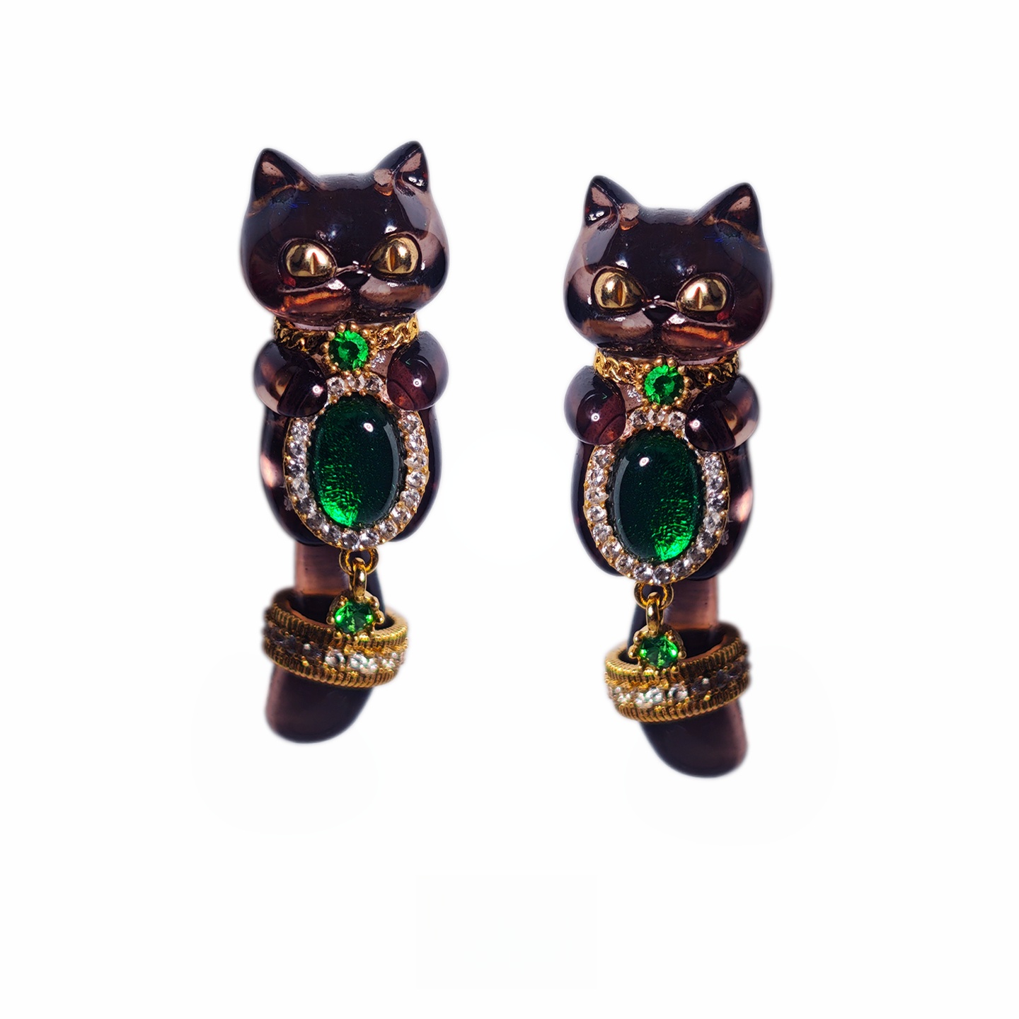 Emerald Transparent Black Meow Alloy Plated With Real Gold(ペア)