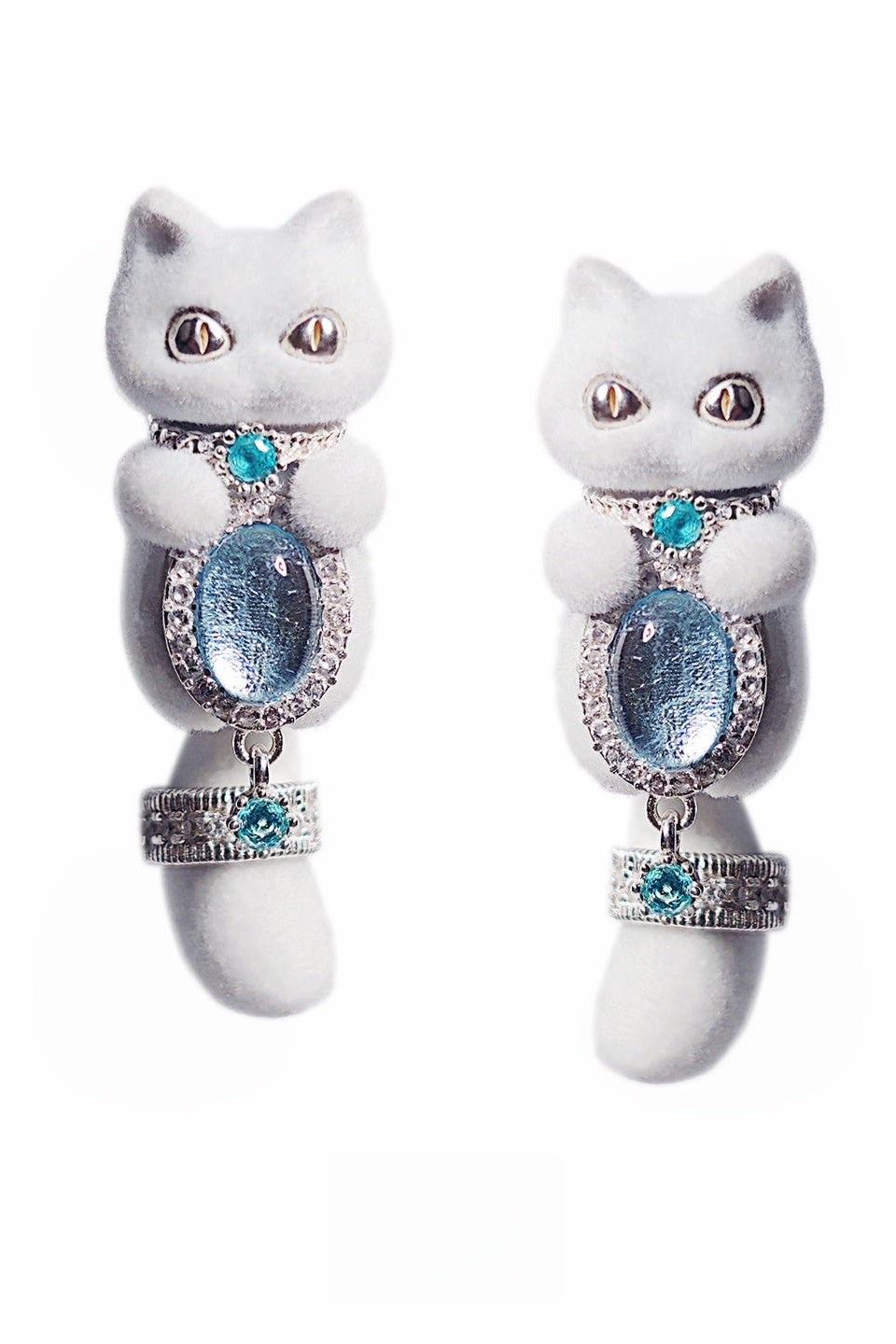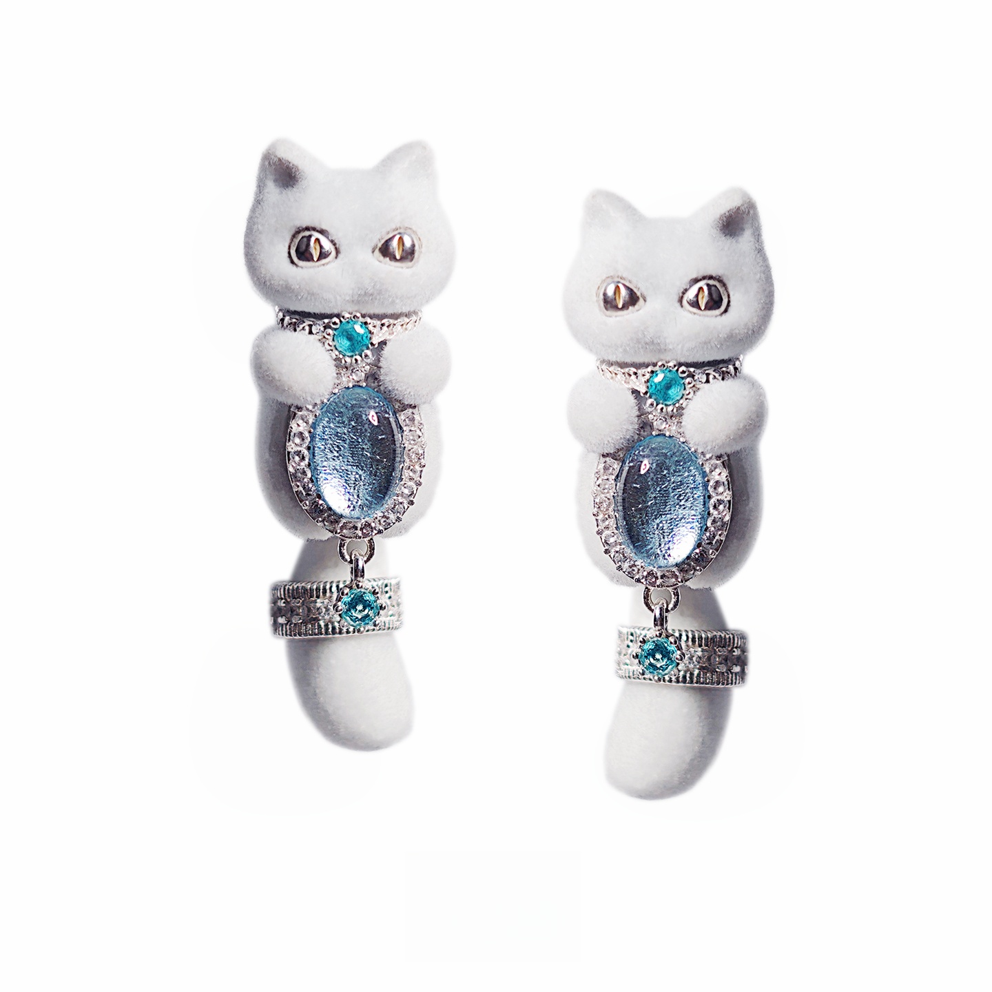 Aquamarine Flocked White Meow Alloy Silver Plated(ペア)
