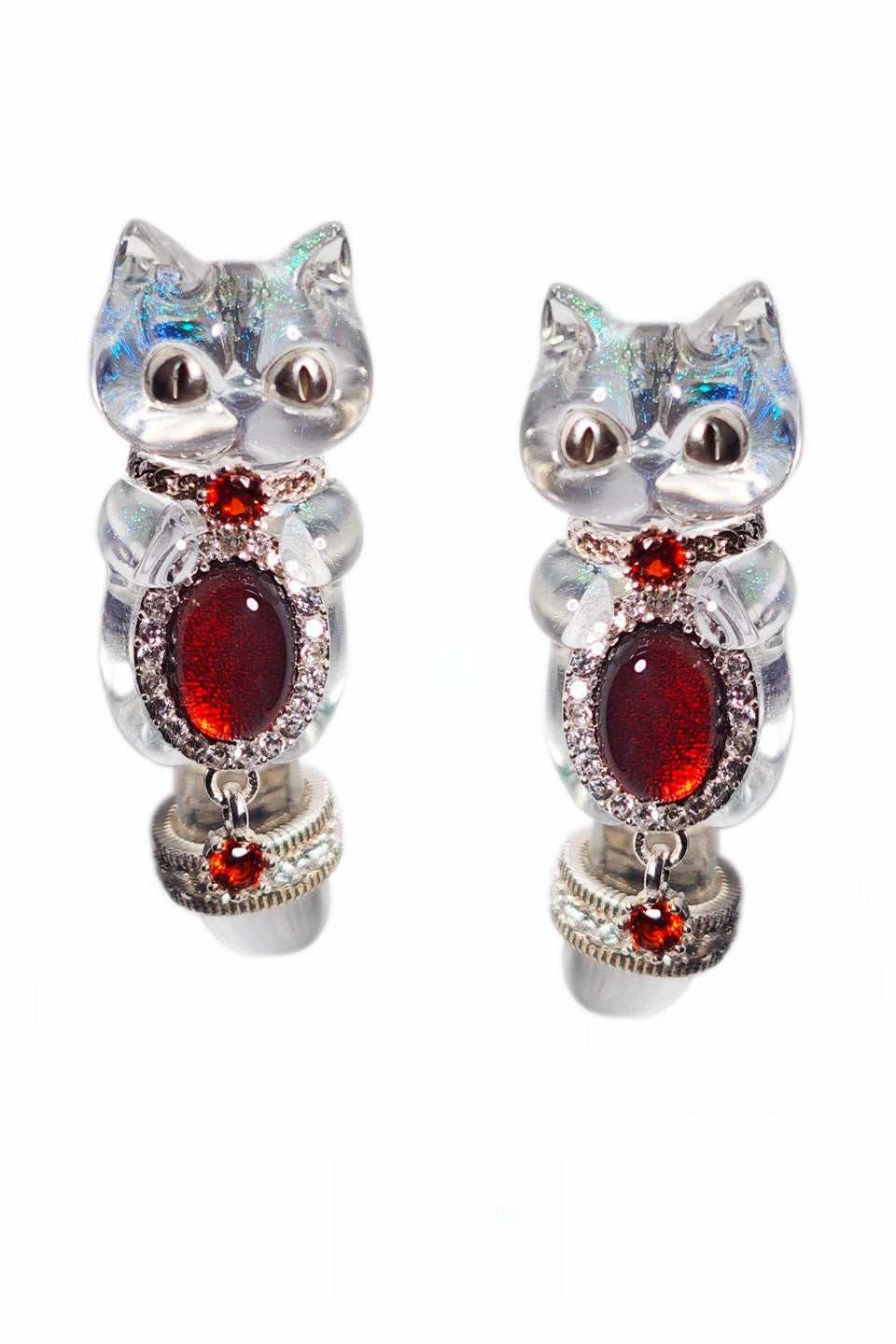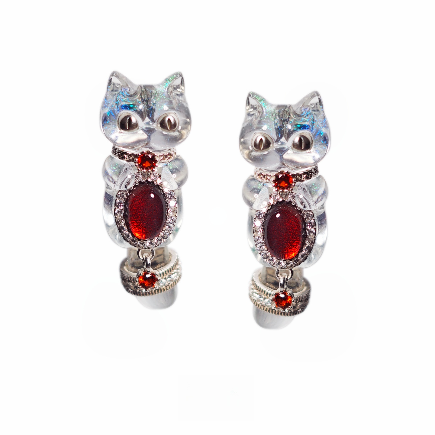 Garnet Dazzling Transparent Meow Alloy Silver-Plated (ペア)