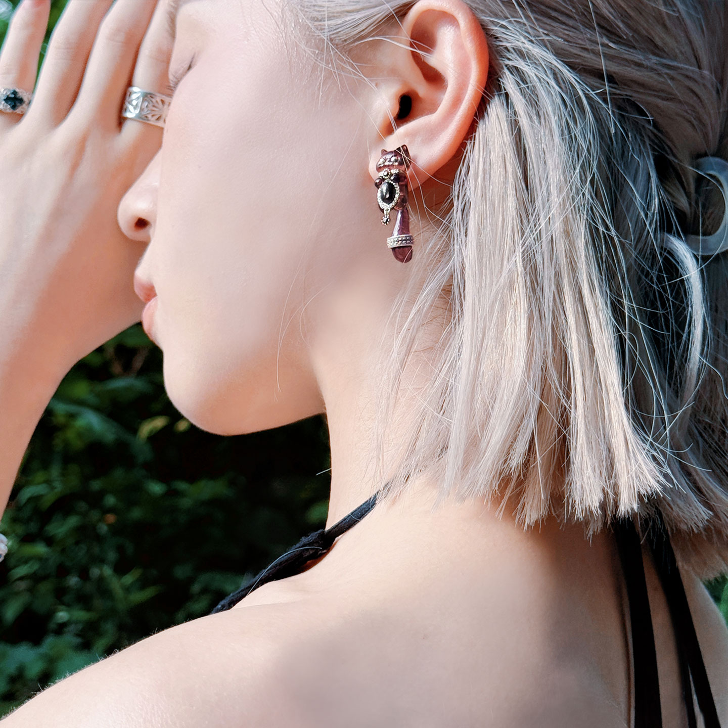Garnet Dazzling Transparent Meow S925 Silver (シングル)