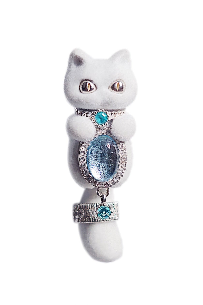 Aquamarine Flocked White Meow S925 Silver(シングル)