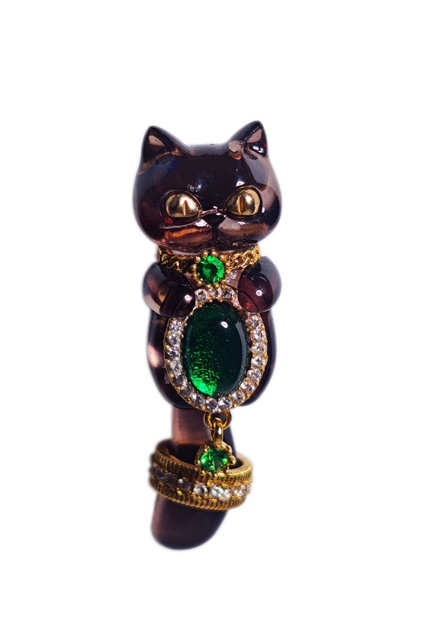 Emerald tTansparent Black Meow S925 Silver Plated Real Gold (シングル)