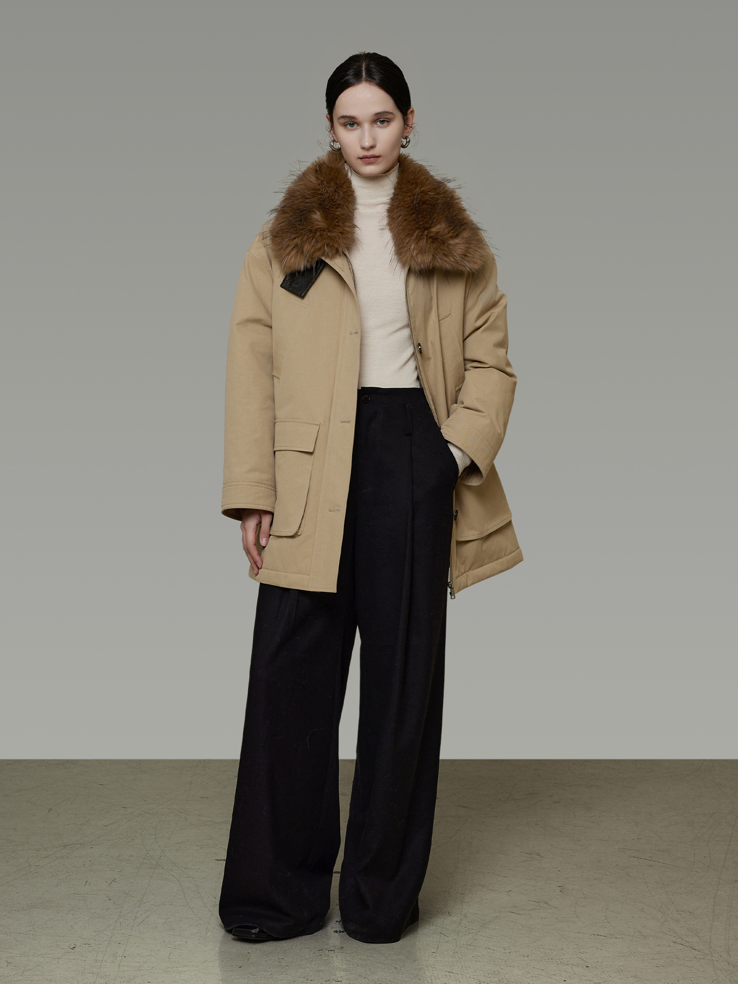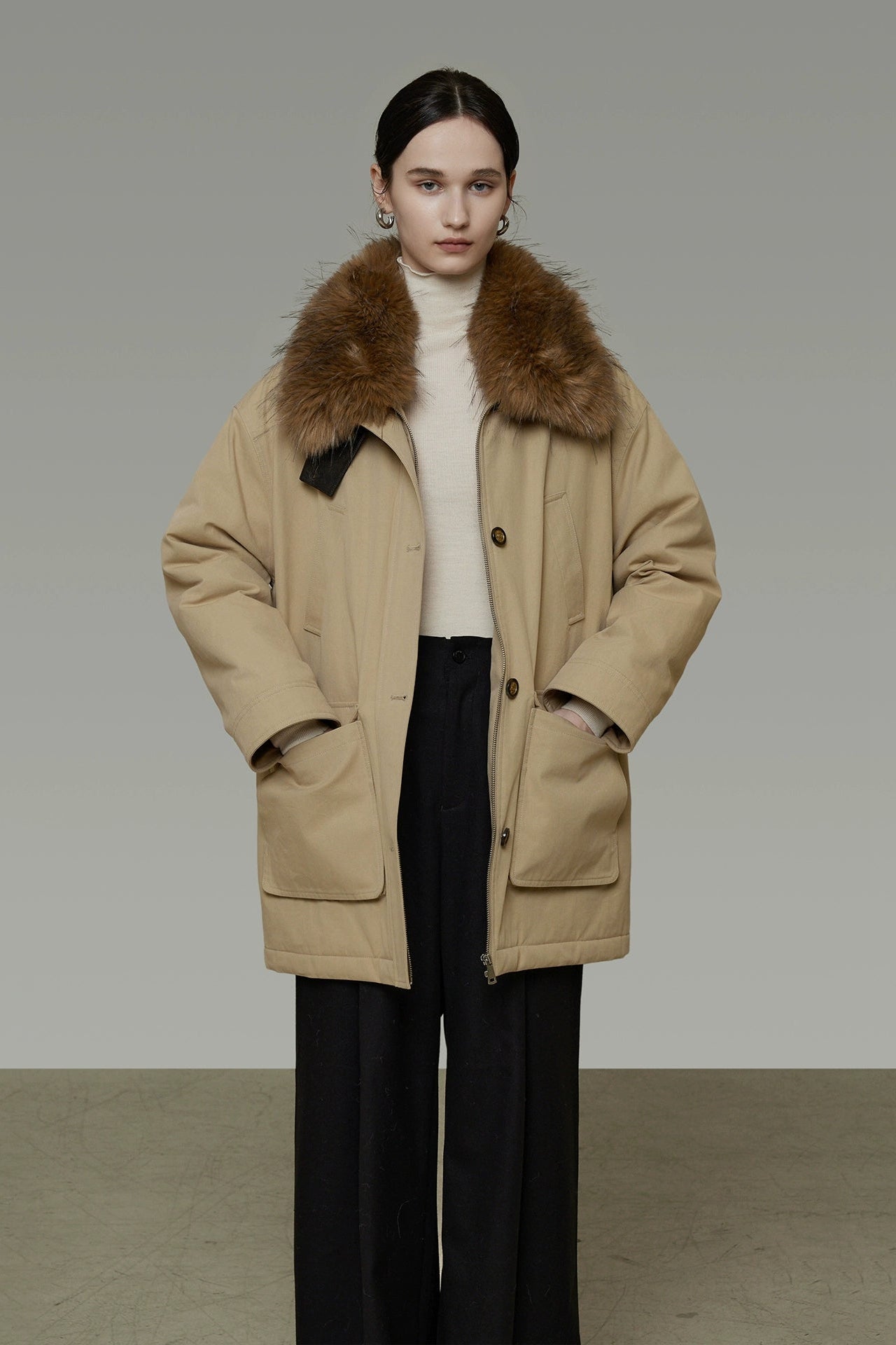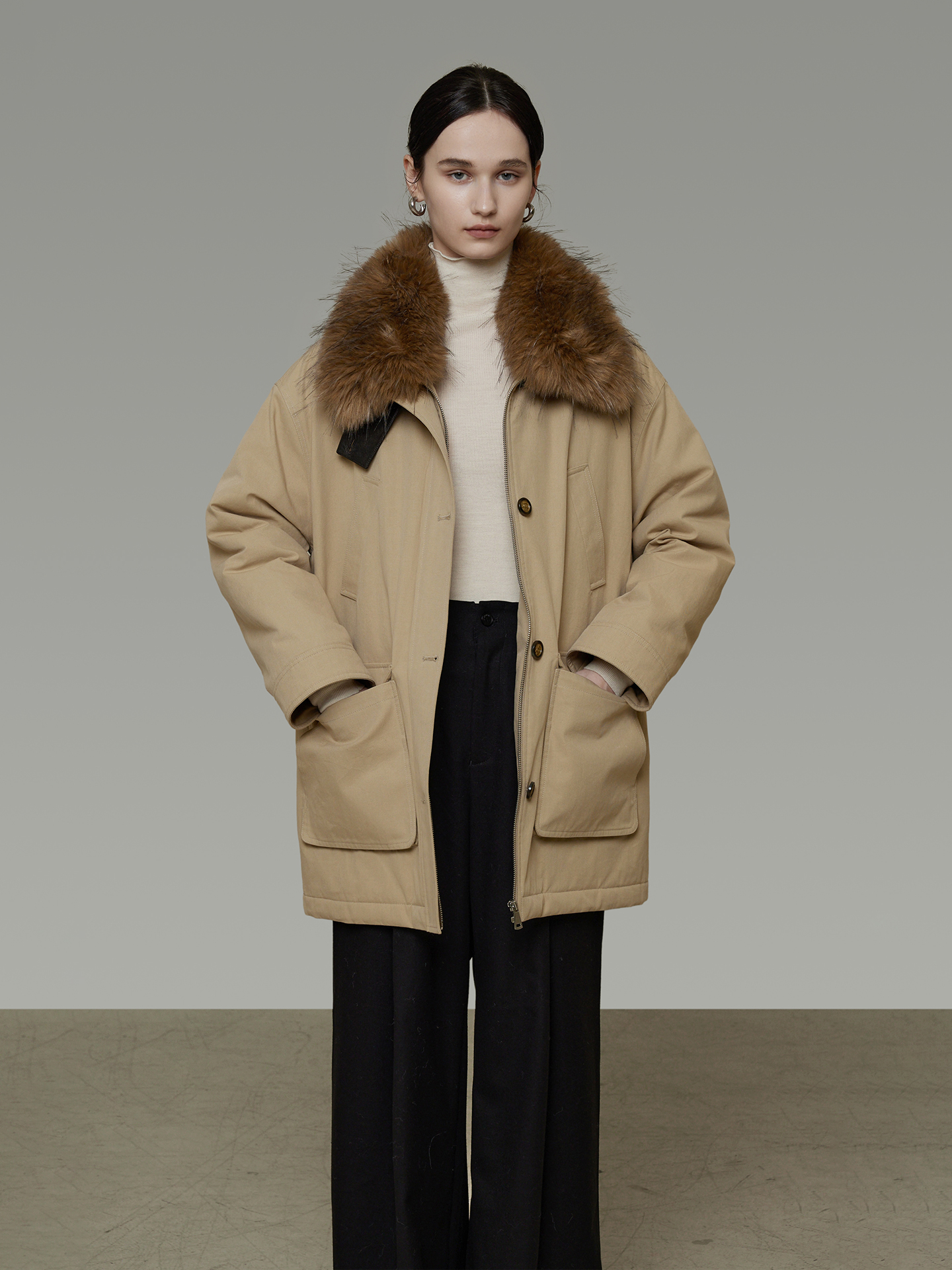 ファーを外すとシンプルなスタイルに早変わり、様々なシーンで活躍する