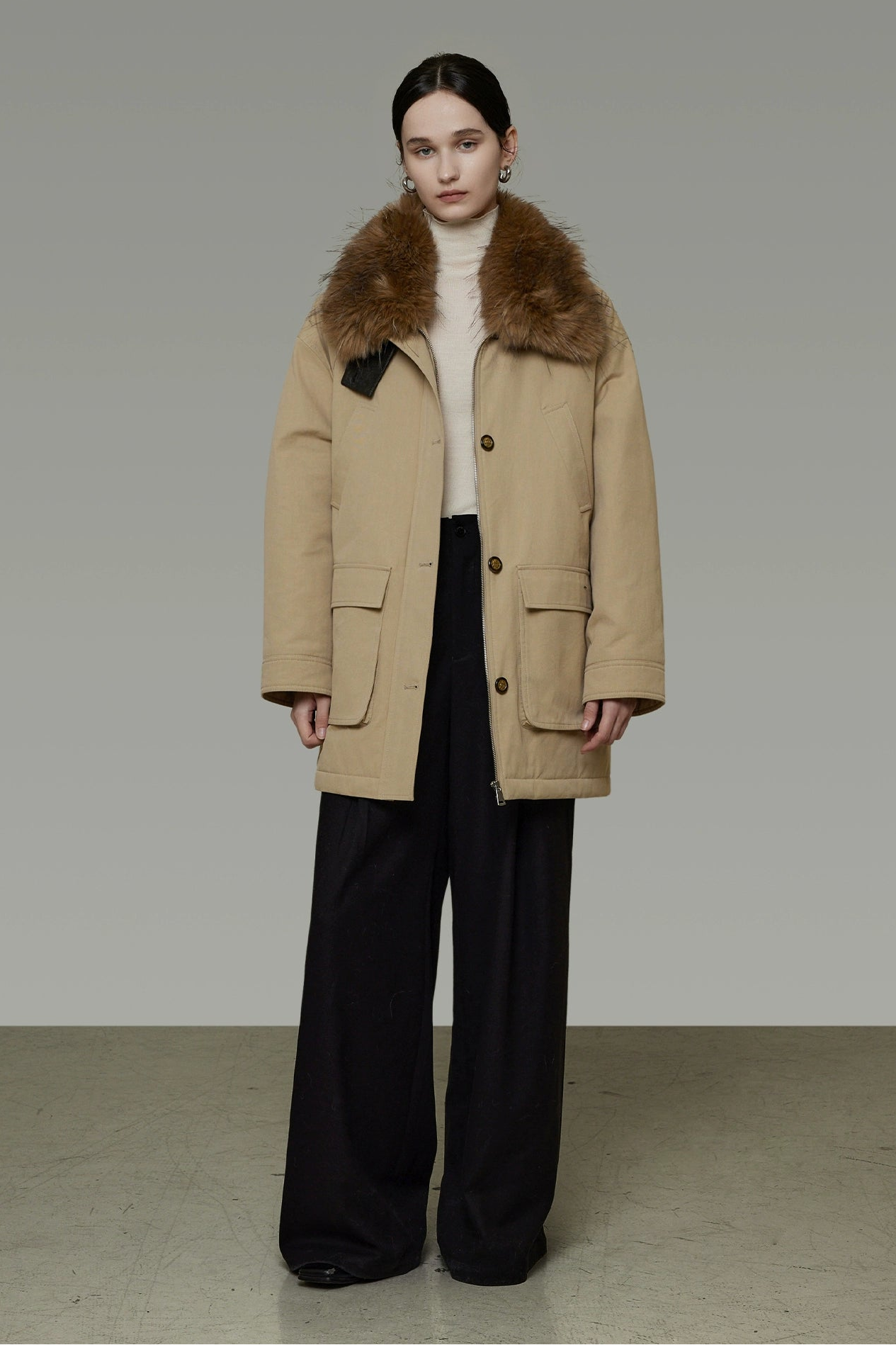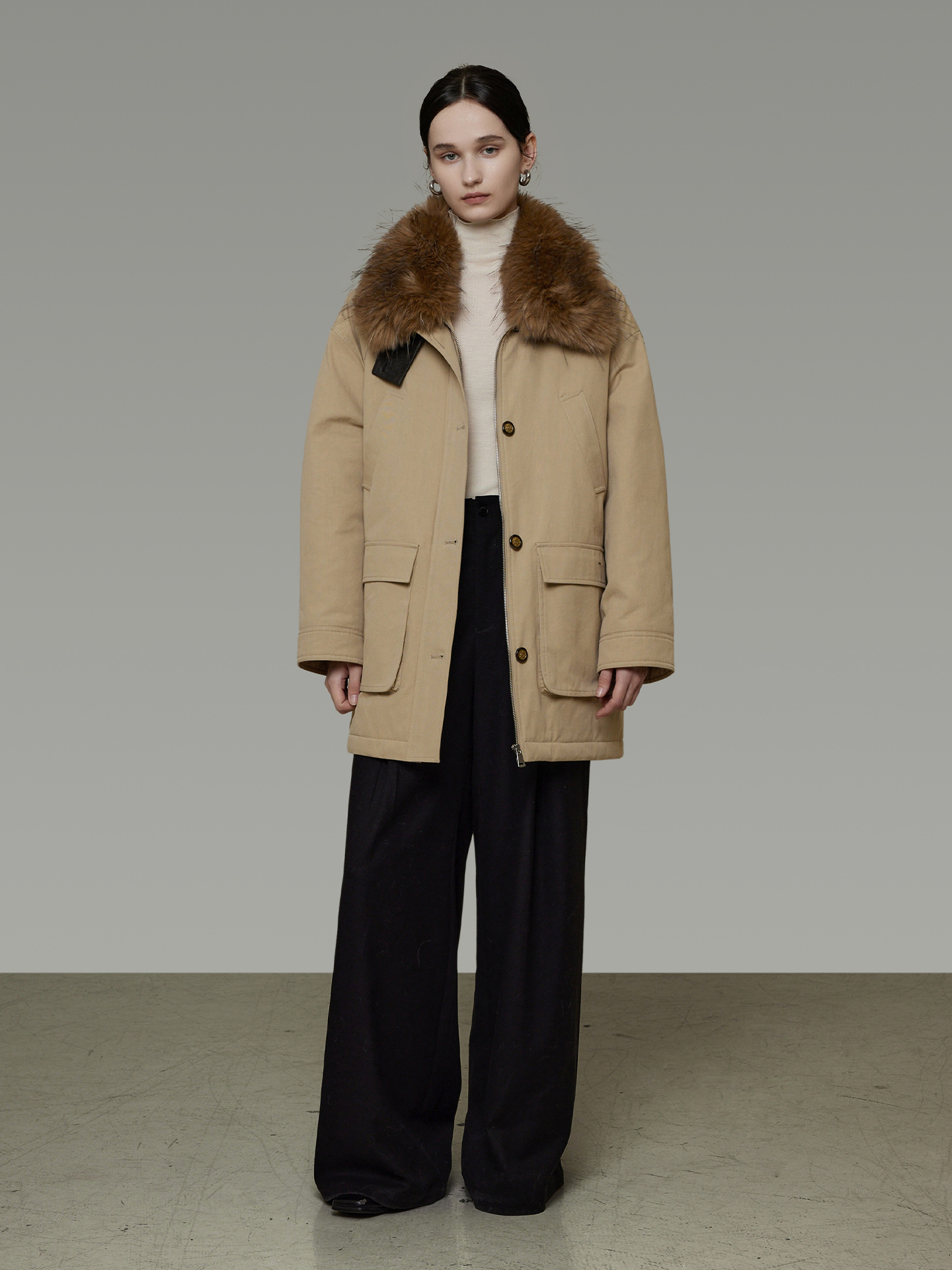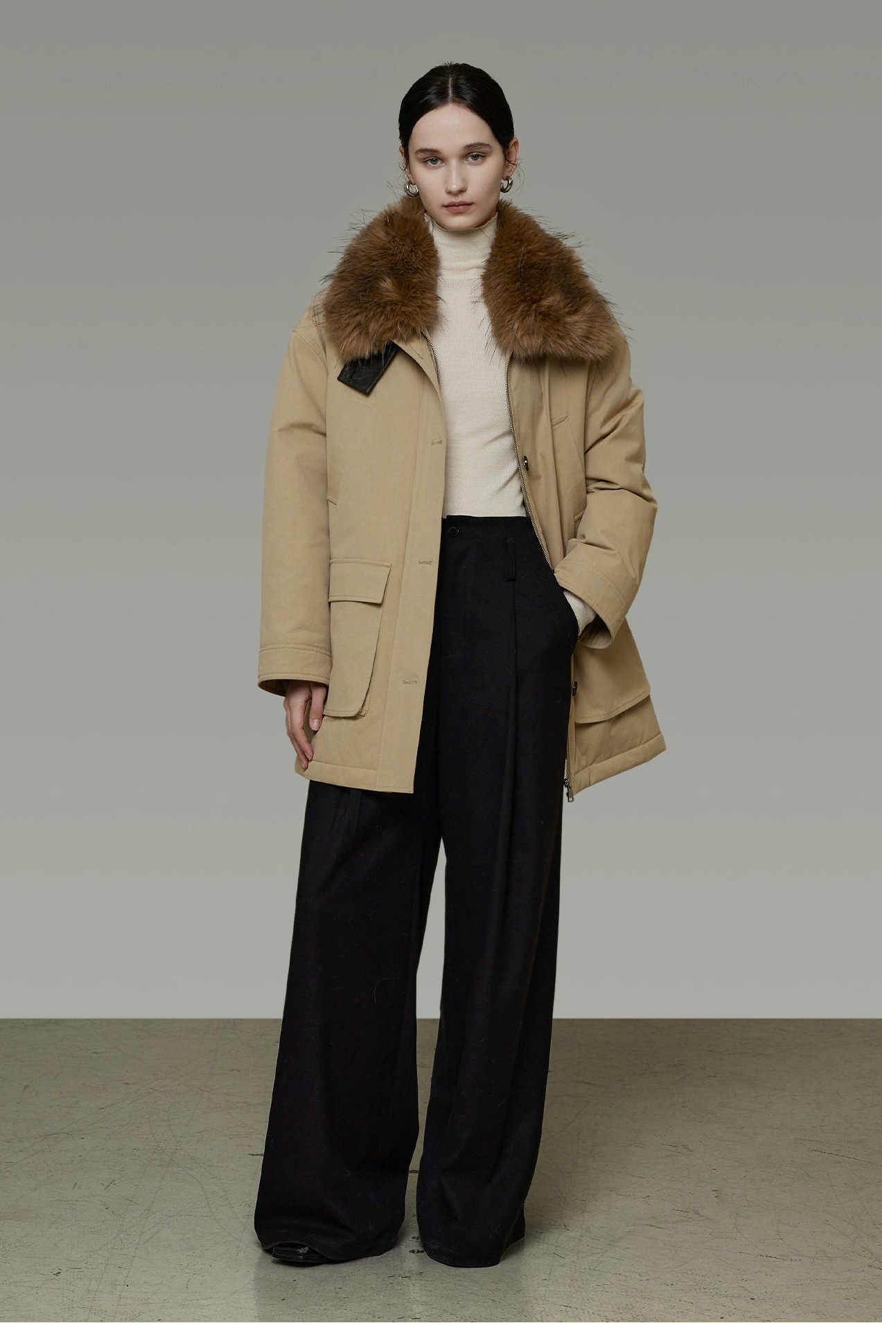 ファーを外すとシンプルなスタイルに早変わり、様々なシーンで活躍する