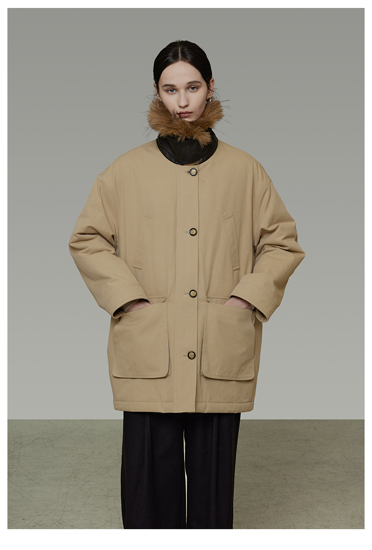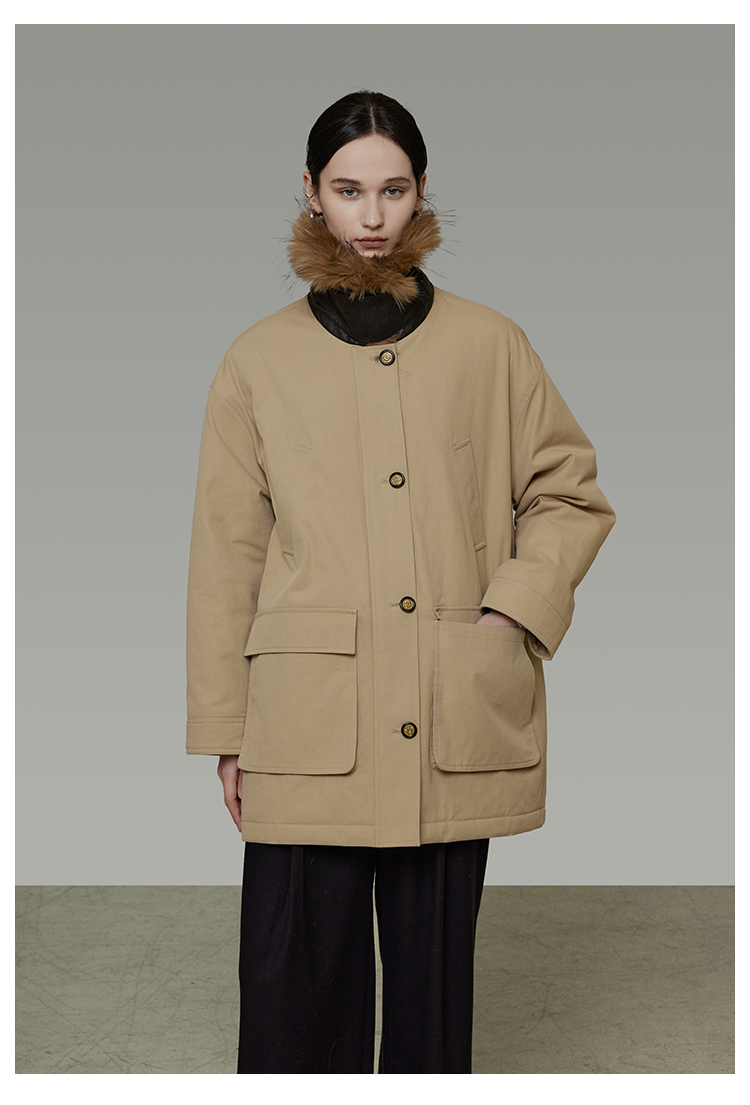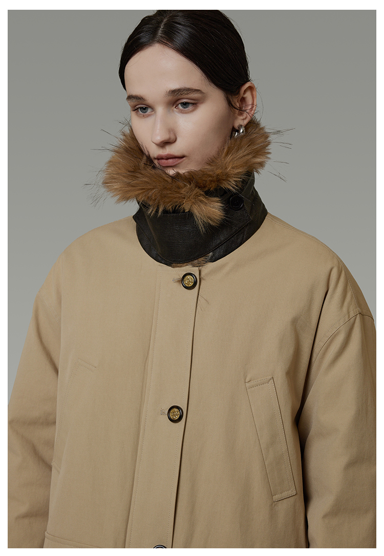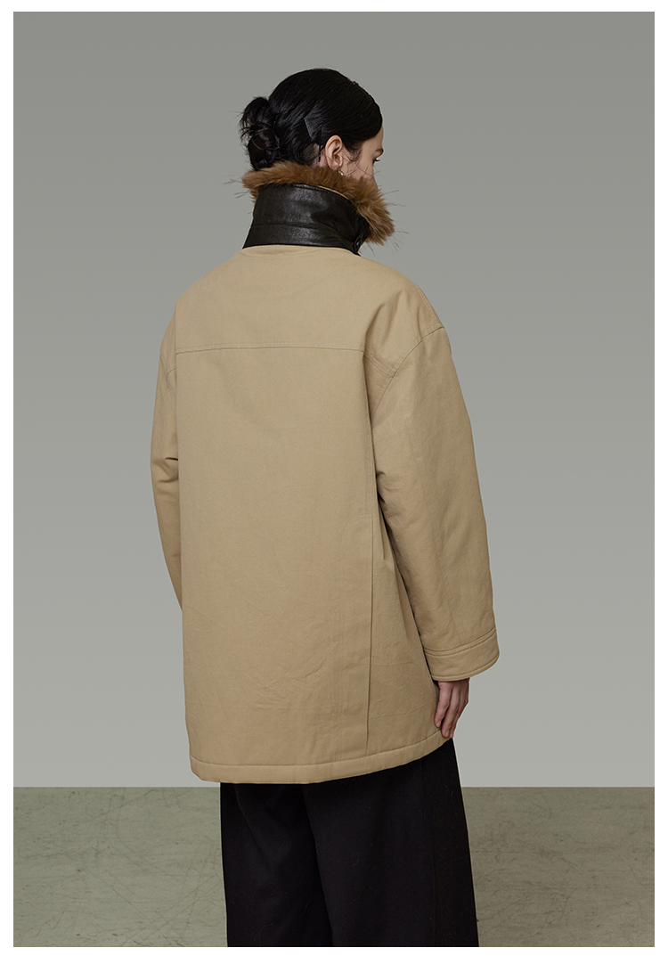 リムーバブルファーカラーコットンパディッドコート B4509