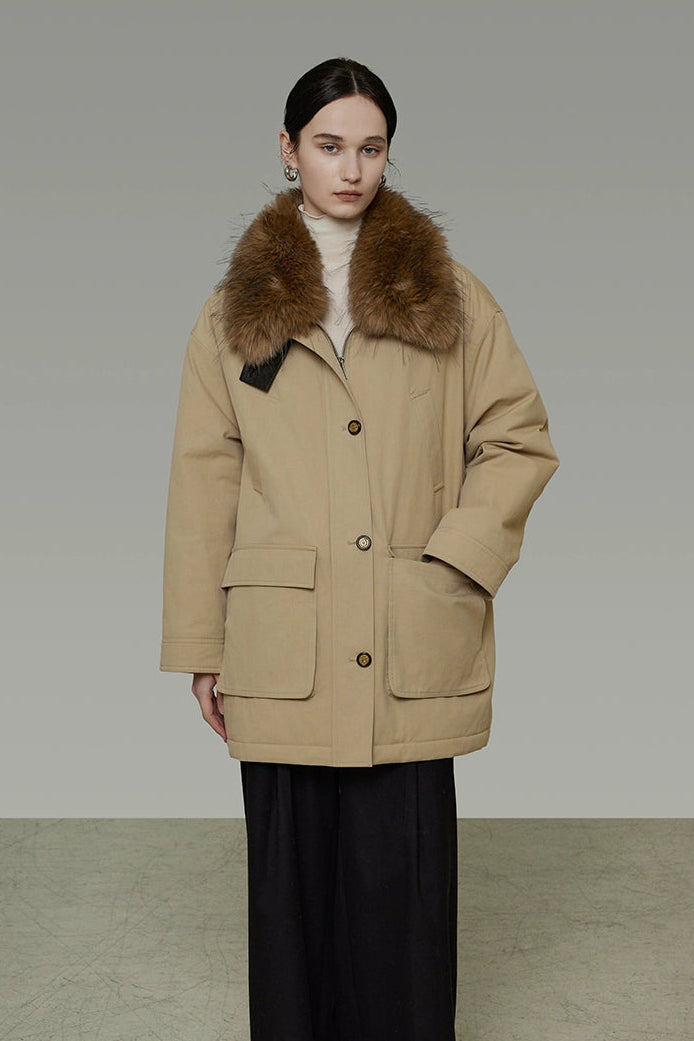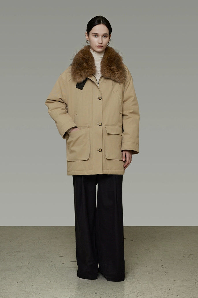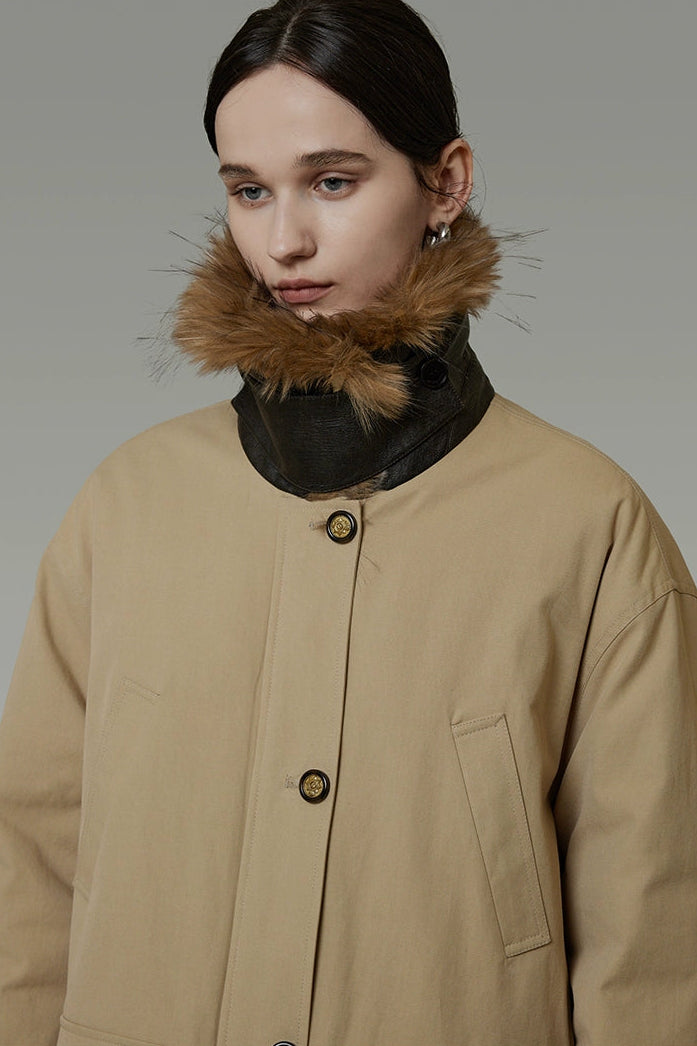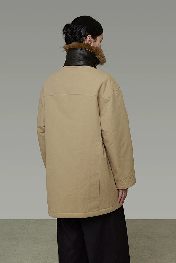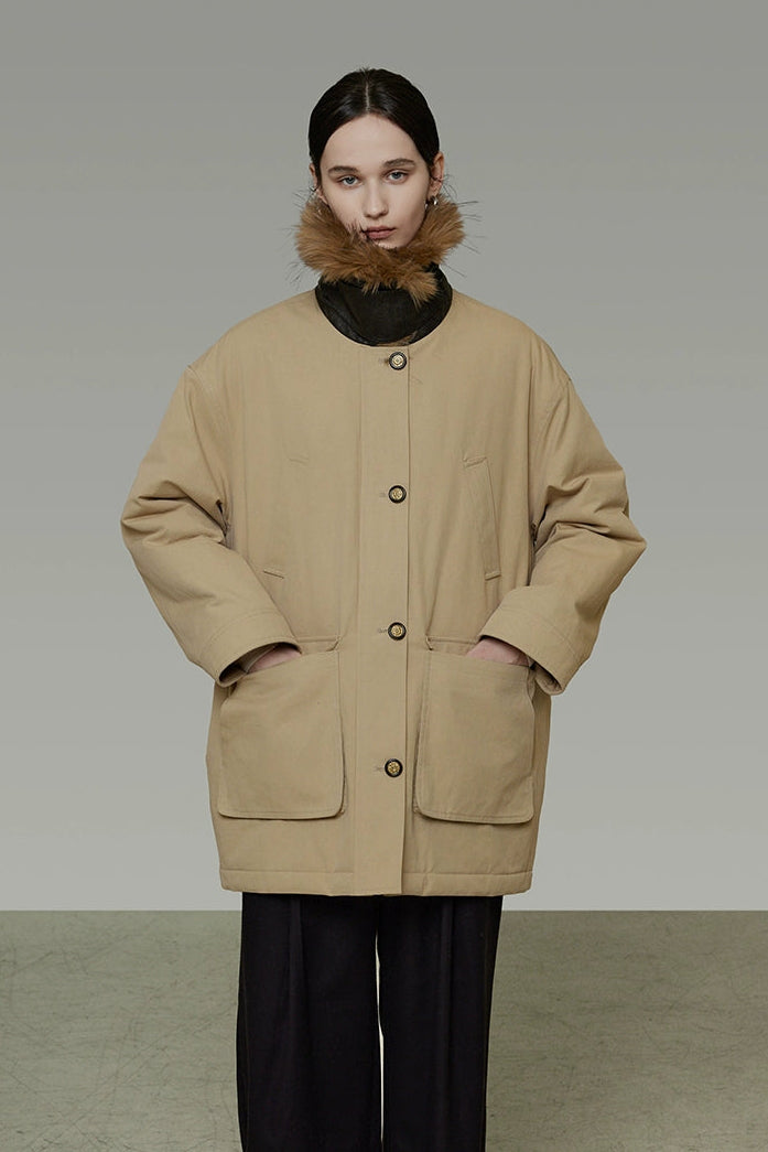 リムーバブルファーカラーコットンパディッドコート B4509