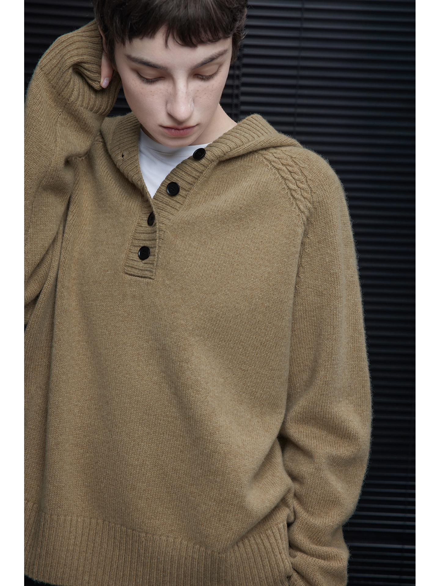 ラグランスリーブとケーブルニットがリッチでスタイリッシュ