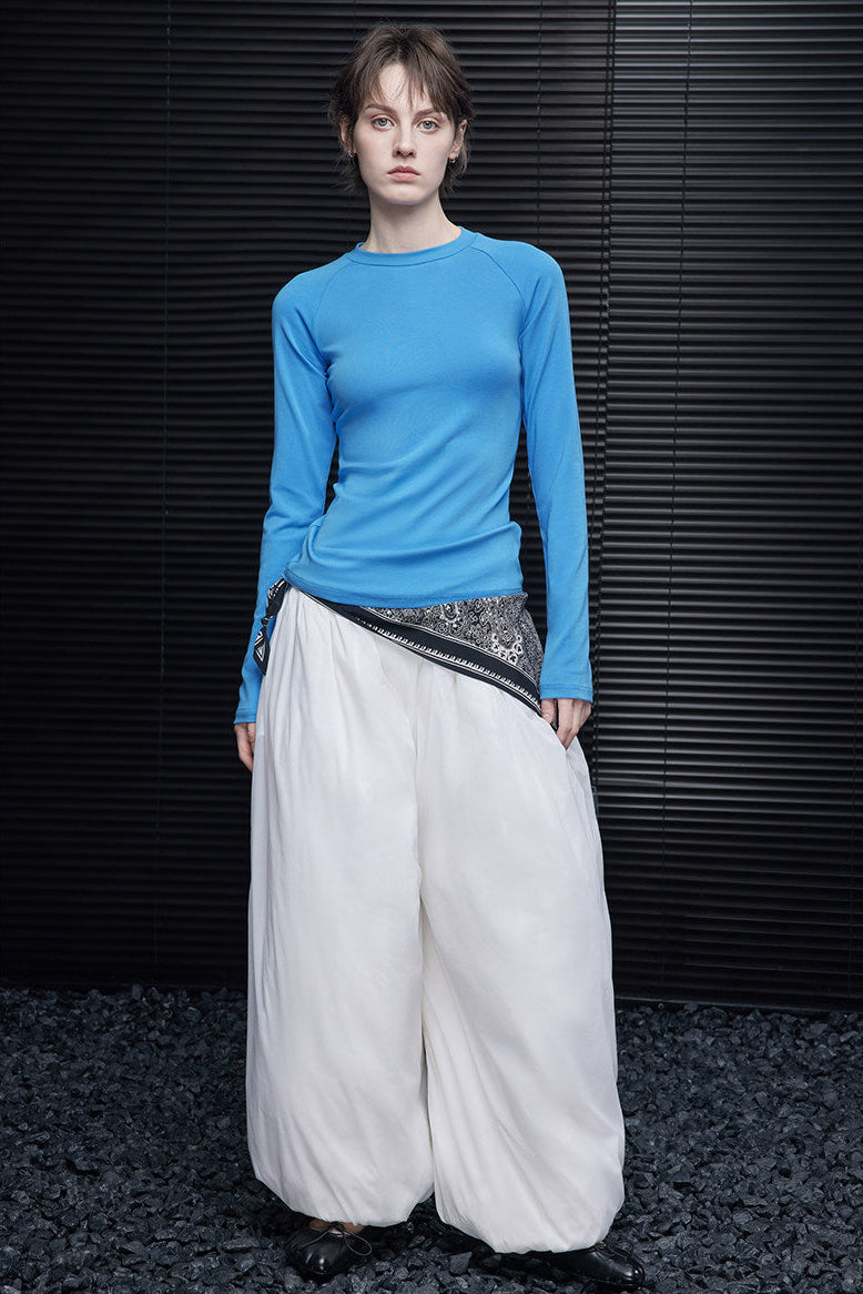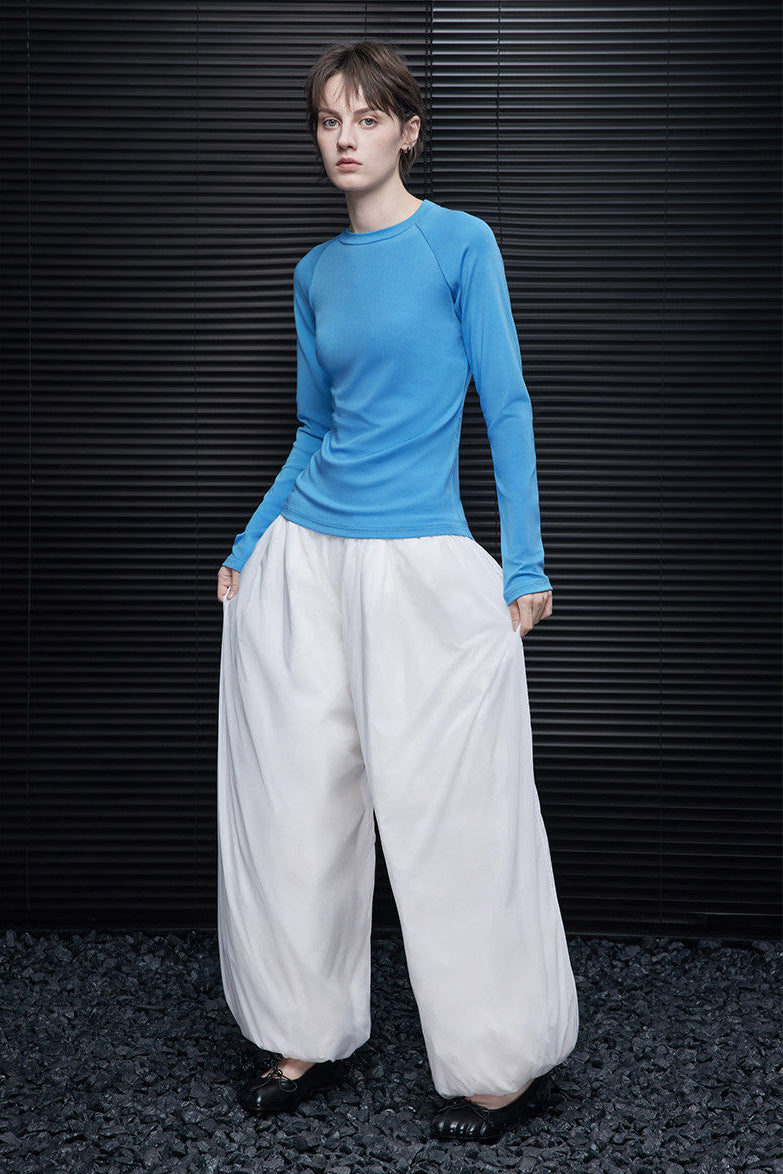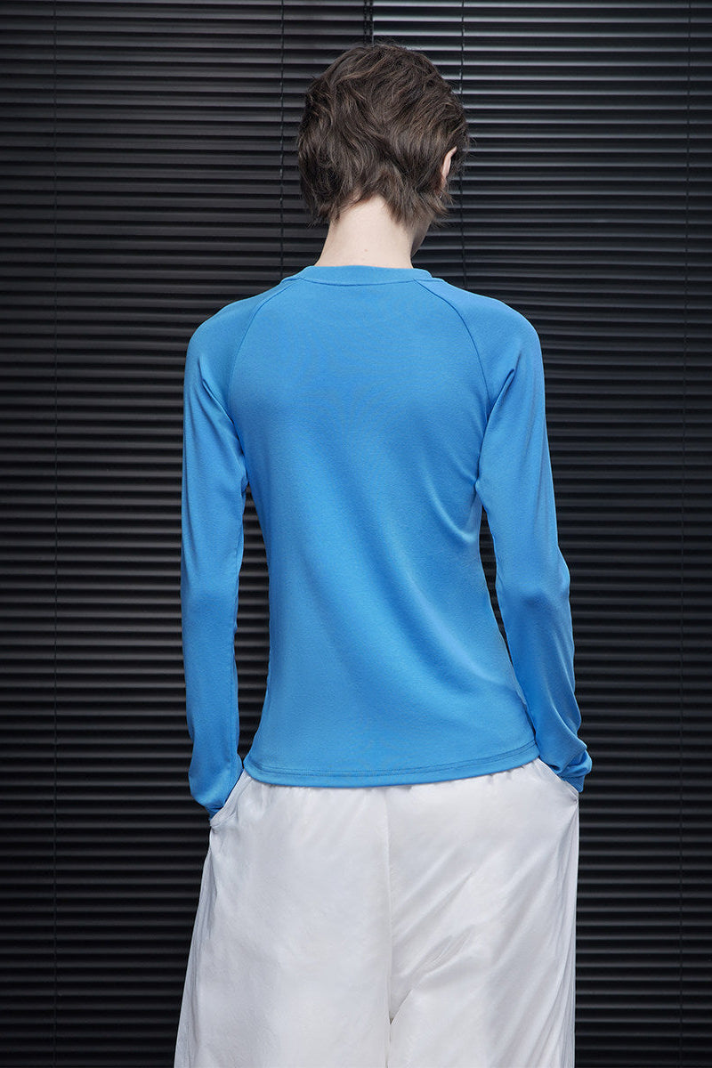 ドロップショルダーのフィット感のある長袖Tシャツ