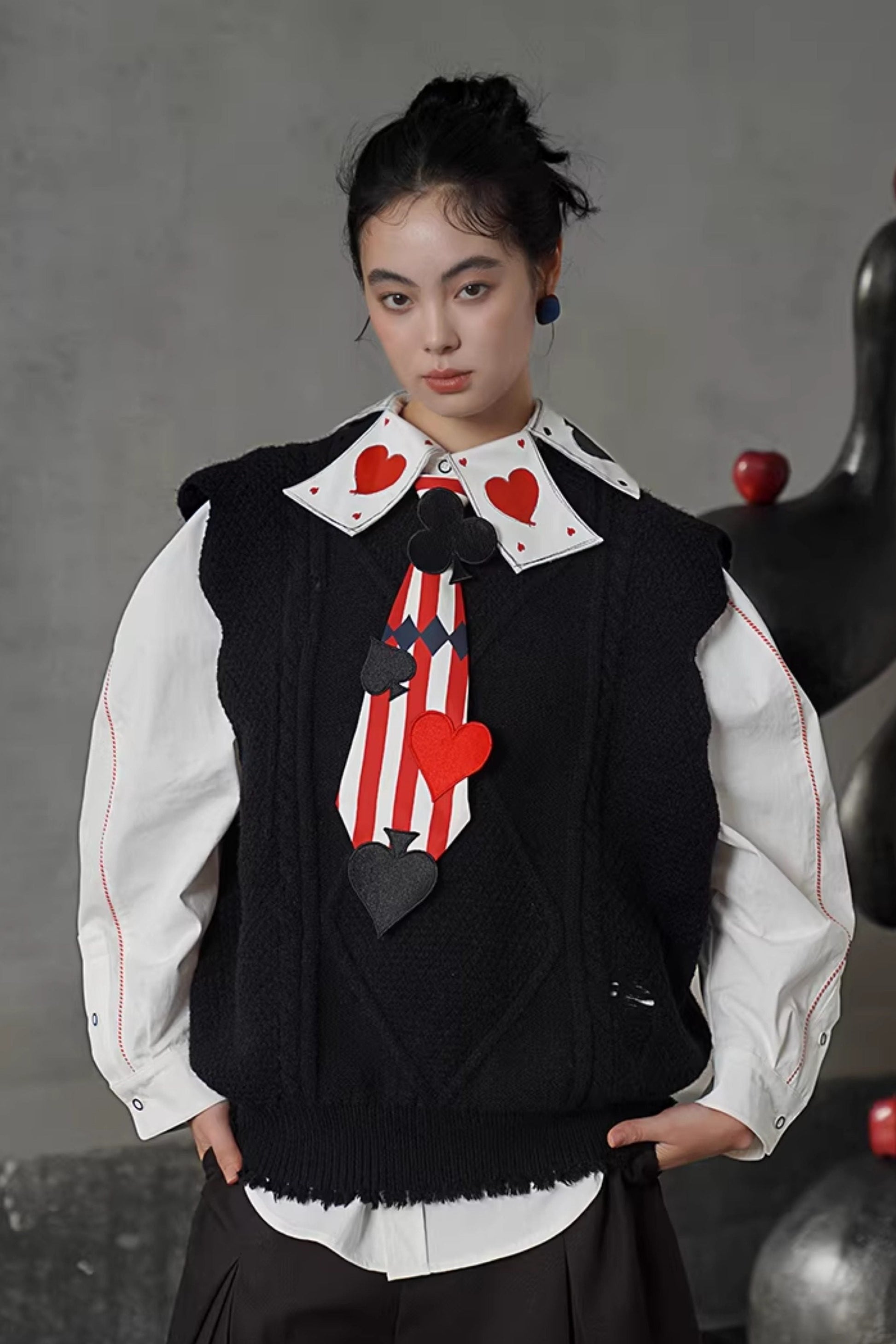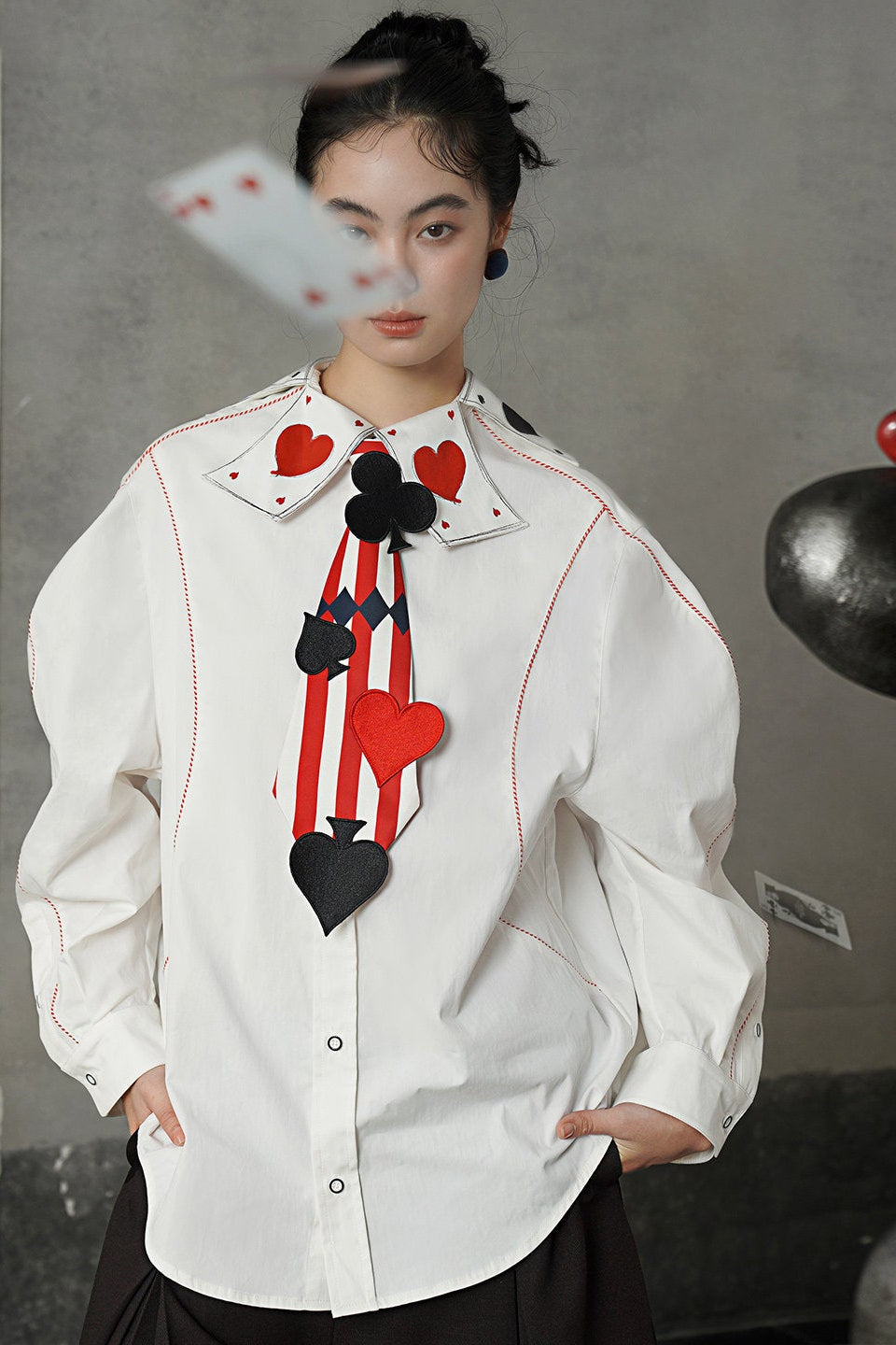 白いシャツに描かれたトランプカードはすべて一筆一筆描かれており、味のある仕上がりになっています