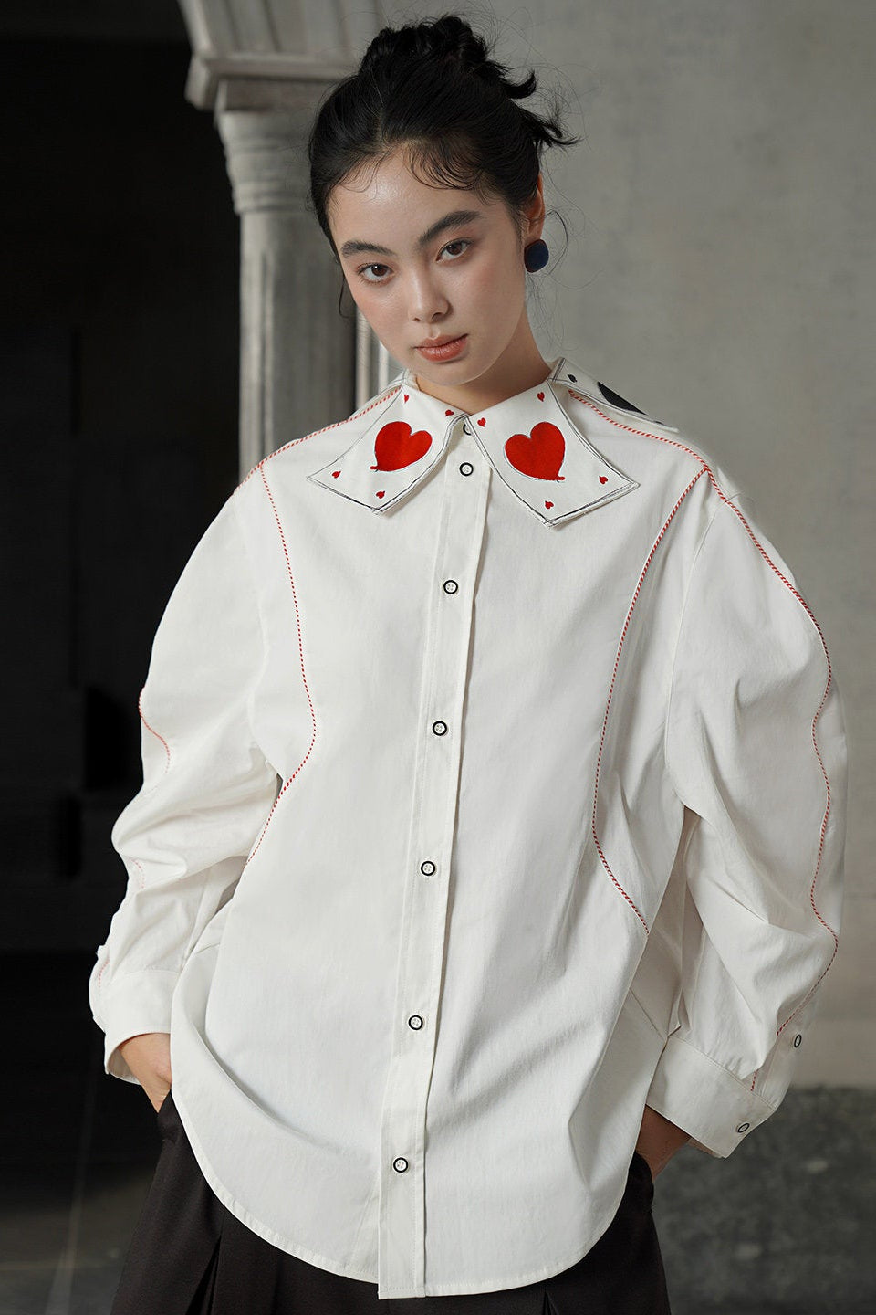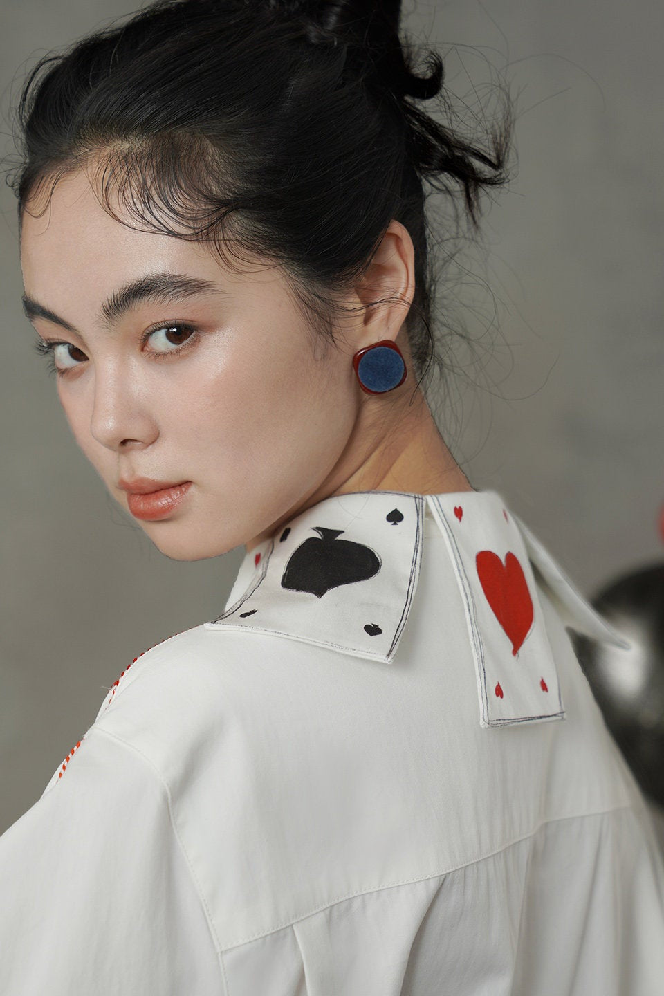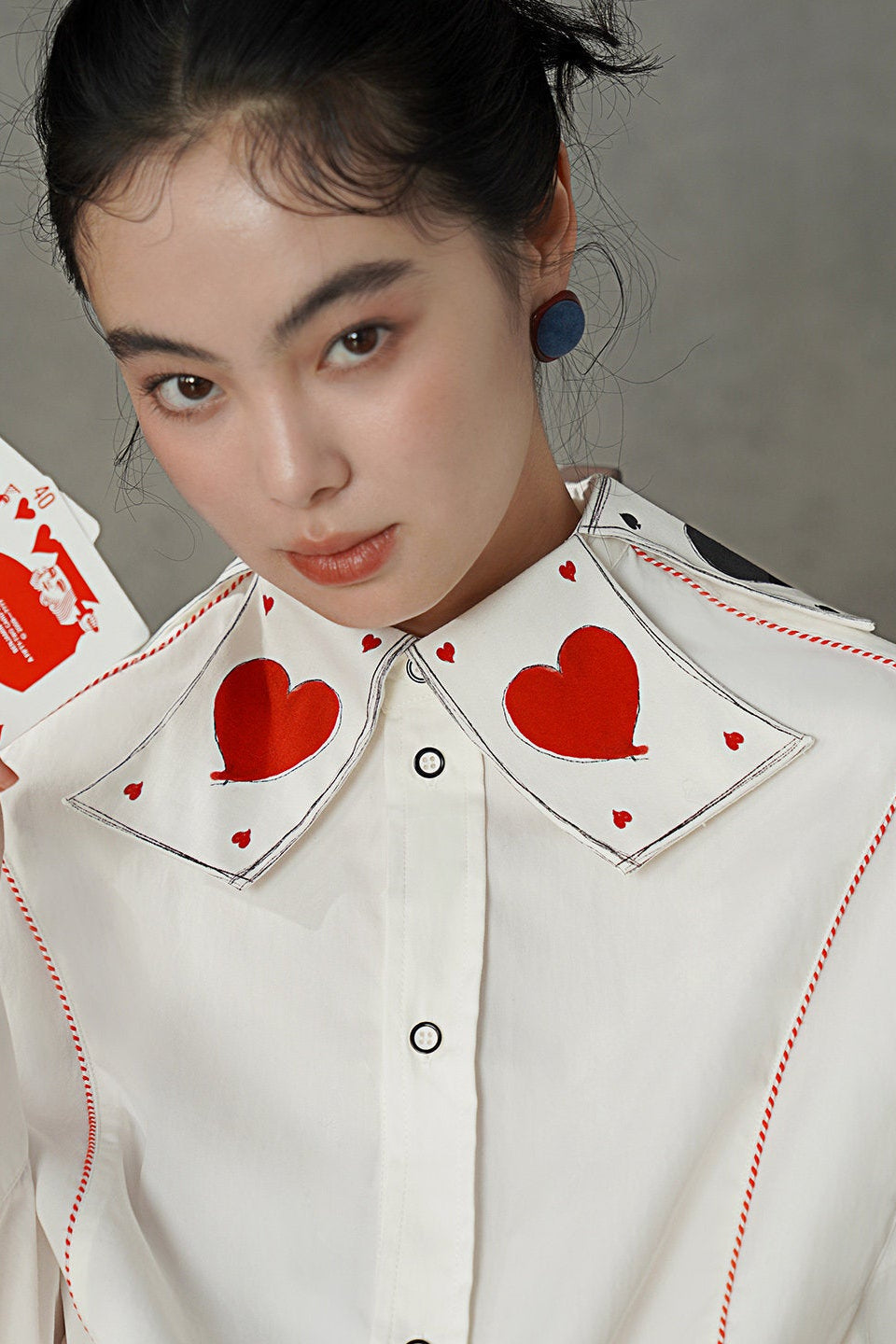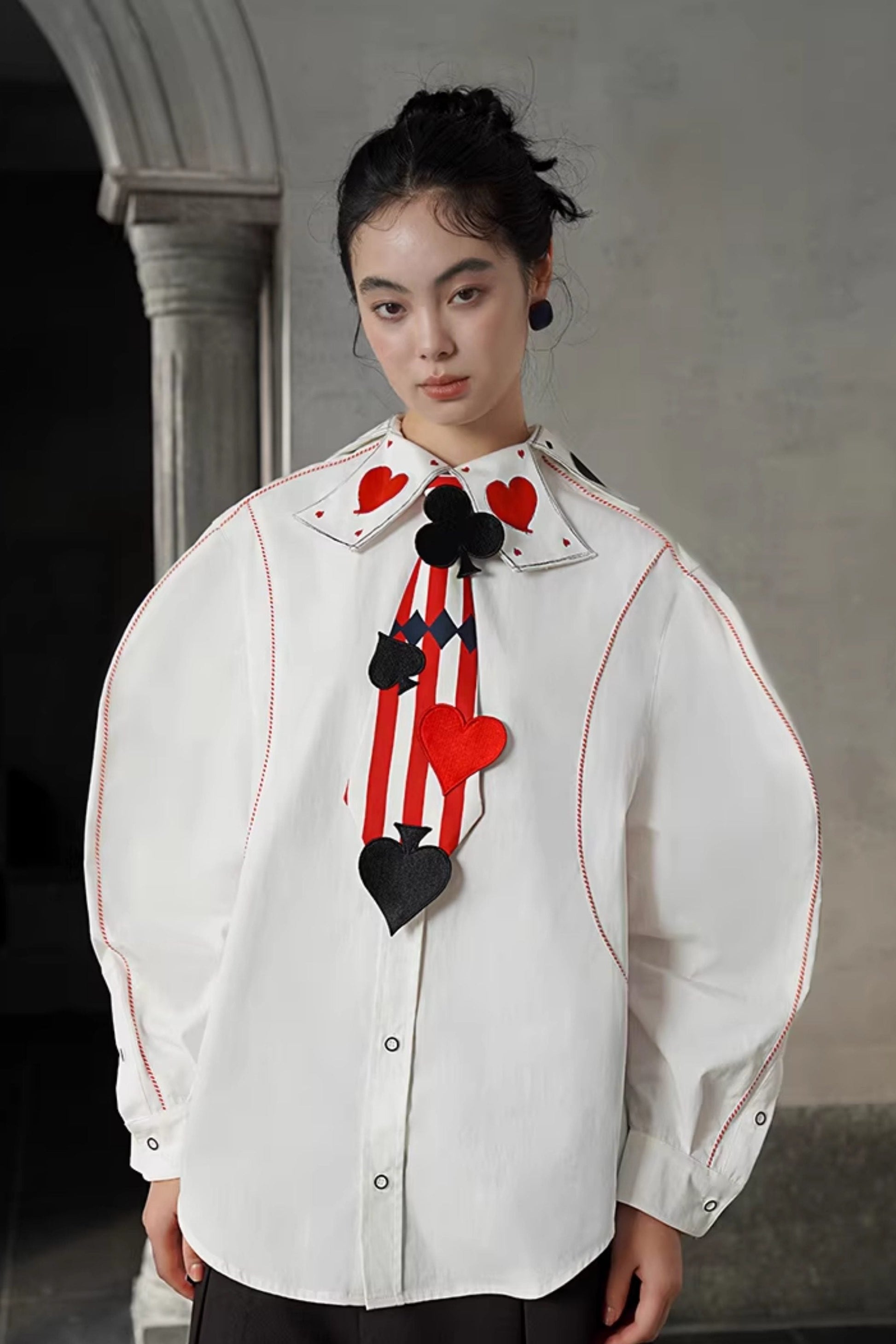 フレンチスイートトランプ刺繍カラーシャツ B4581