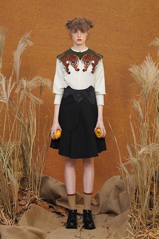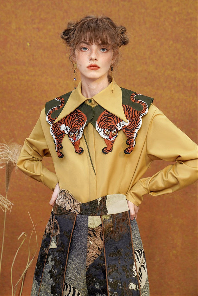 デタッチャブルカラー (リアルな虎を丹念に刺繡、インパクトあるアイテム)