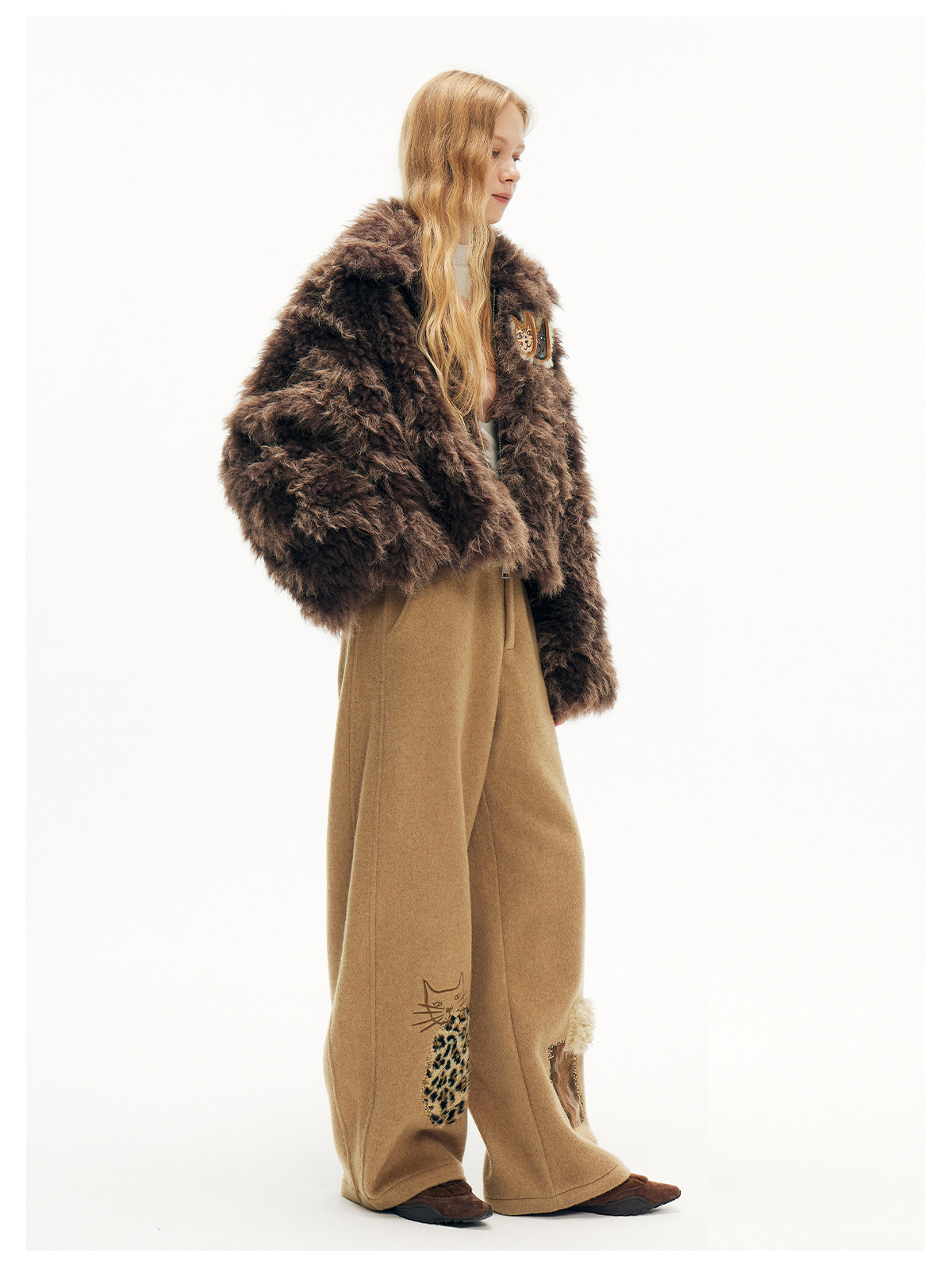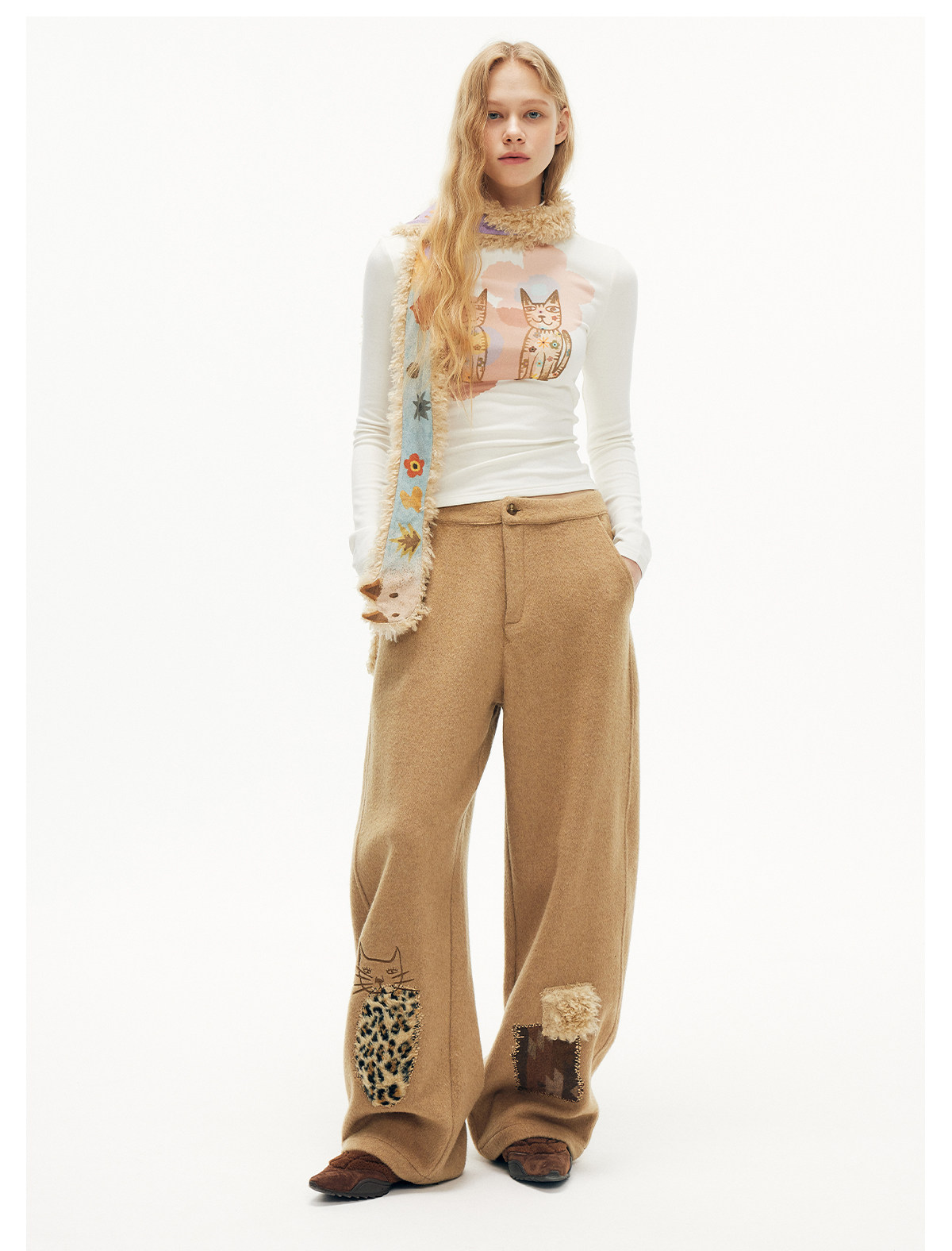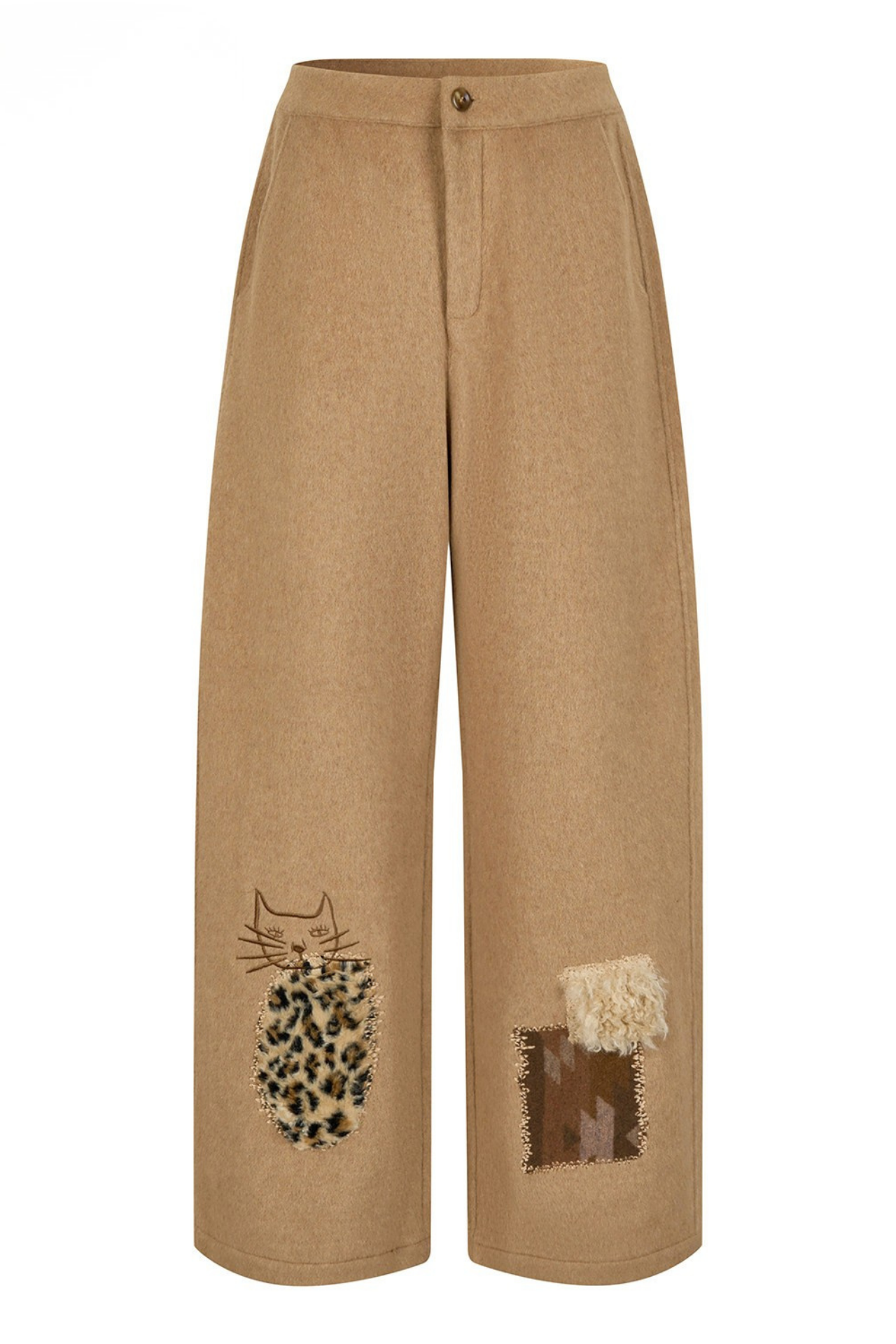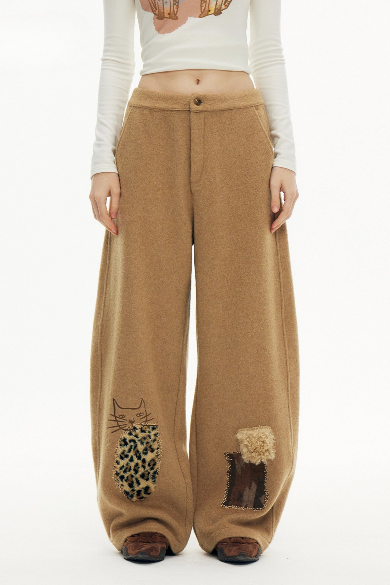 キャットアップリケ刺繡ウール混シミターパンツ B4590