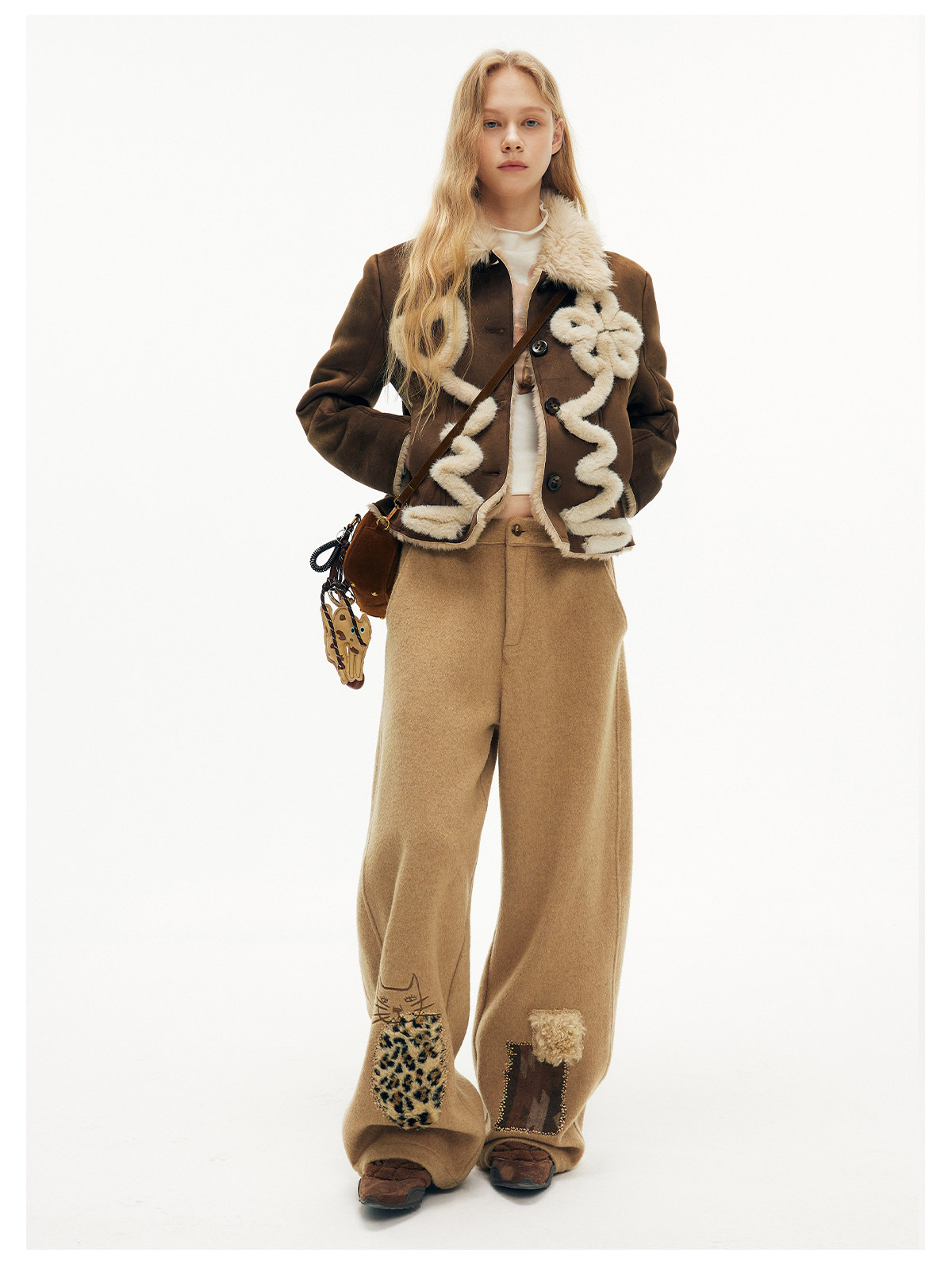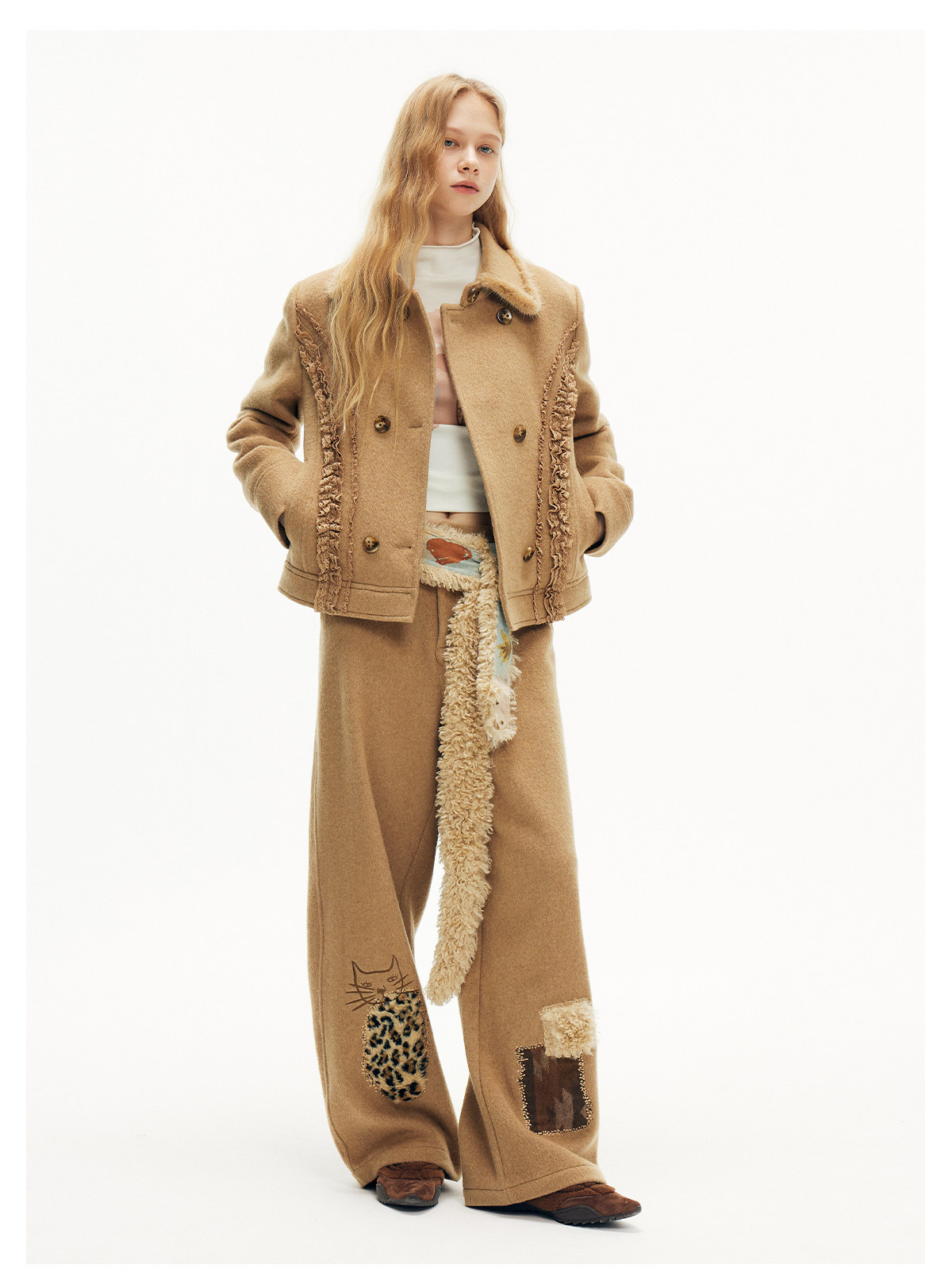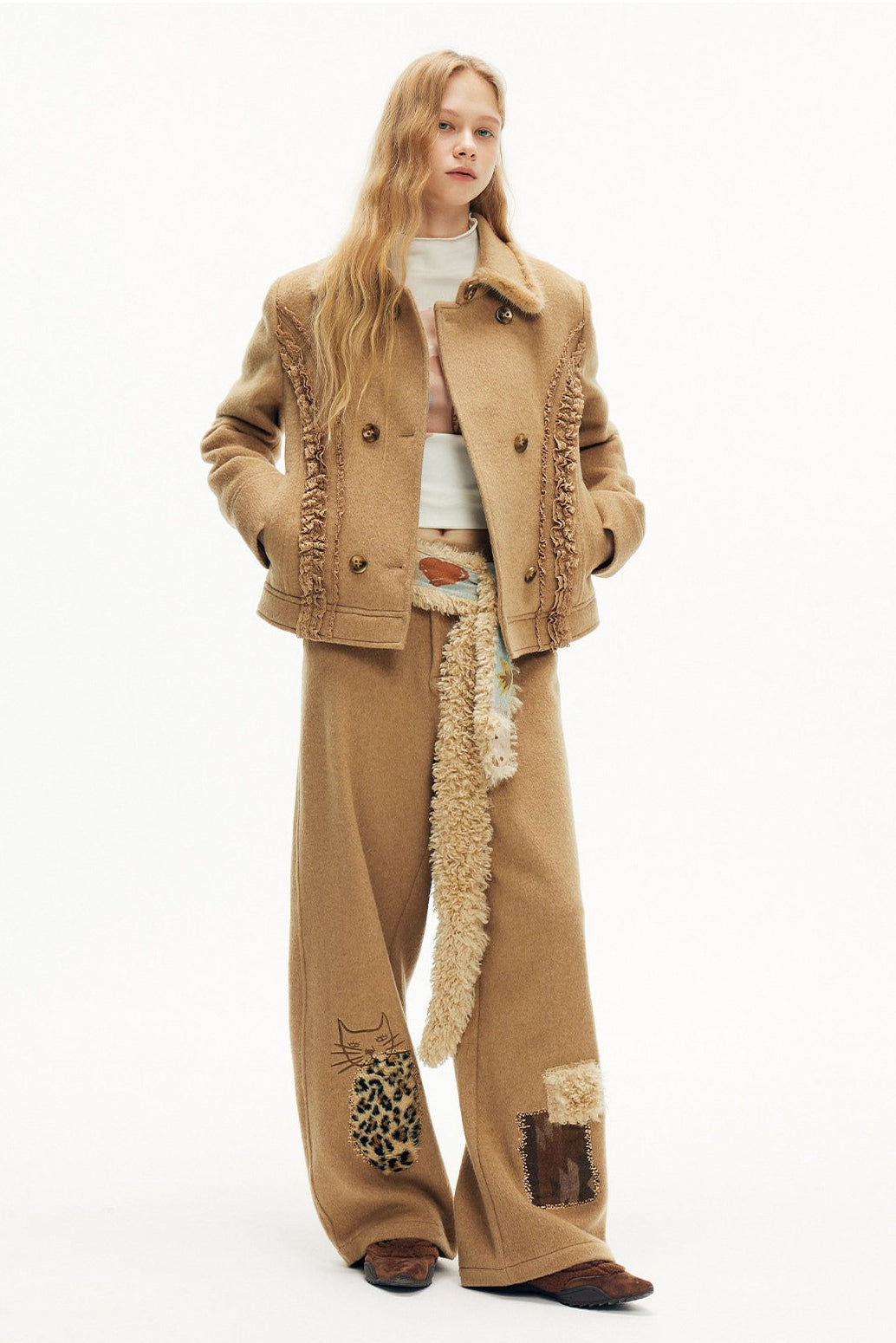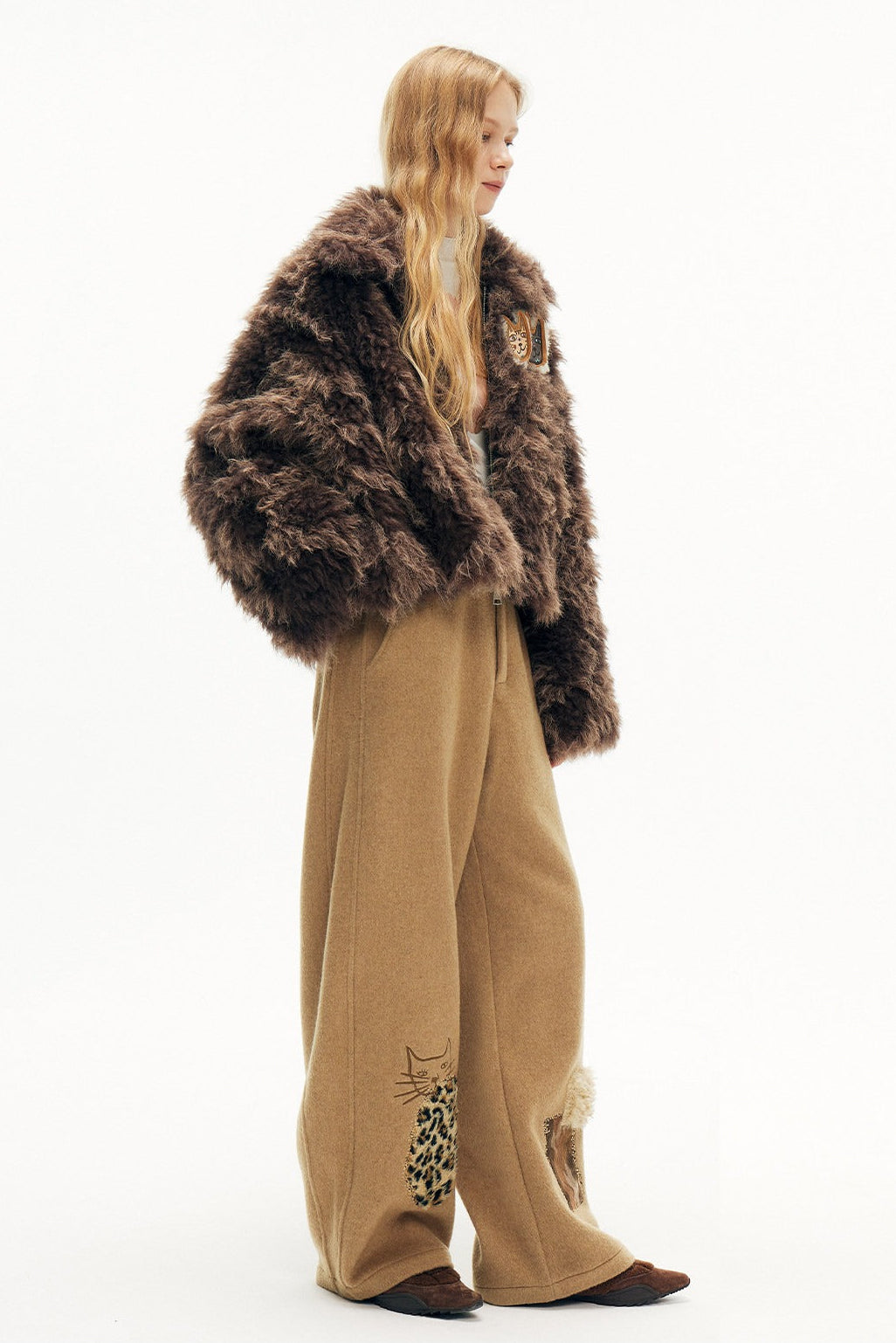 キャットアップリケ刺繡ウール混シミターパンツ B4590