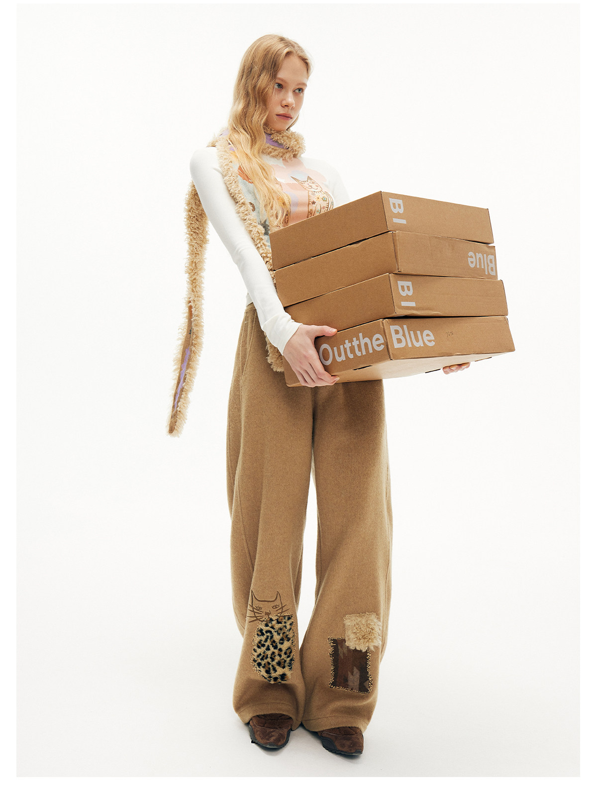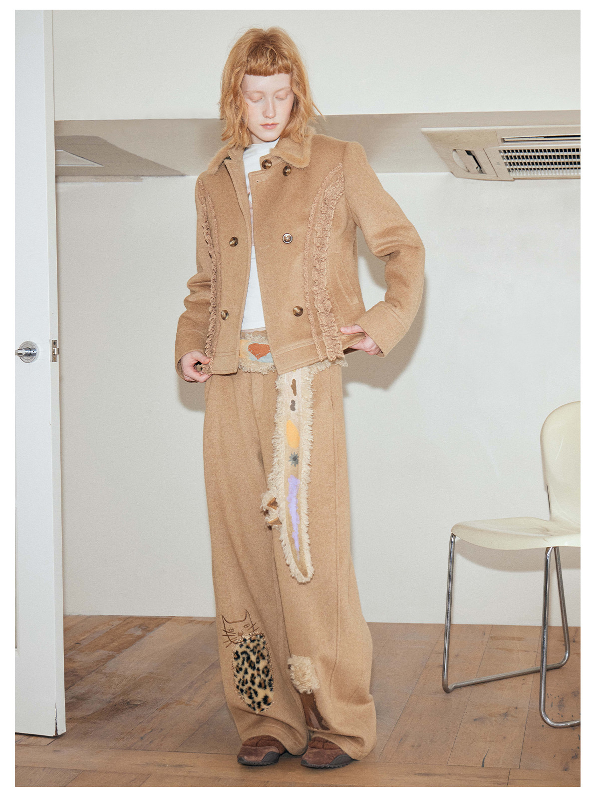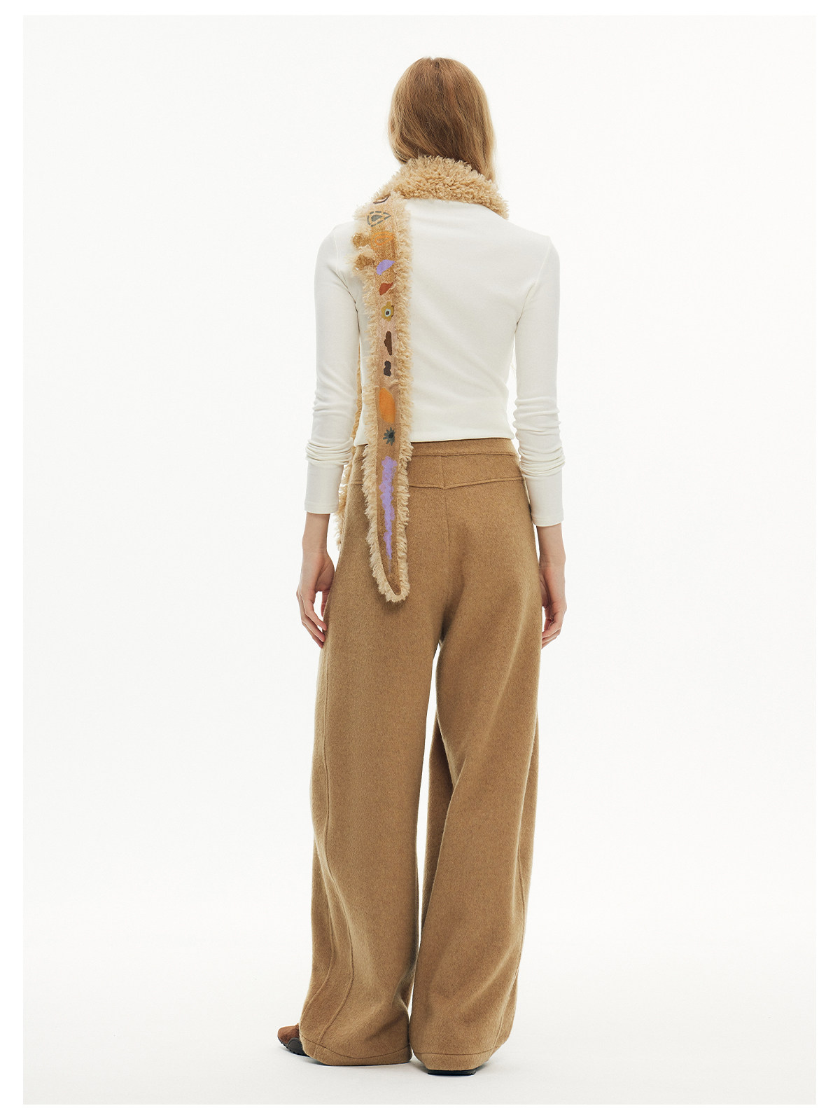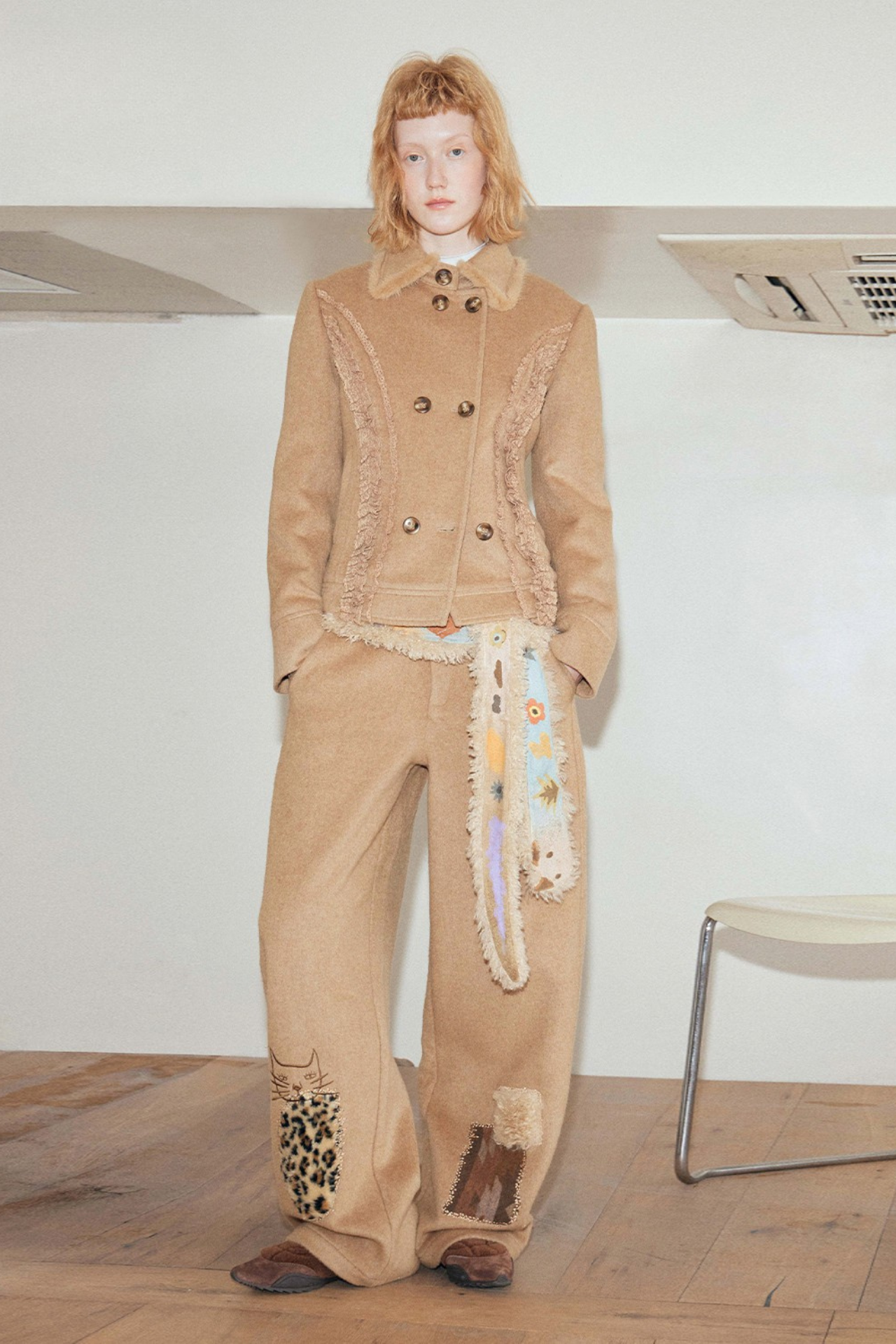 キャットアップリケ刺繡ウール混シミターパンツ B4590