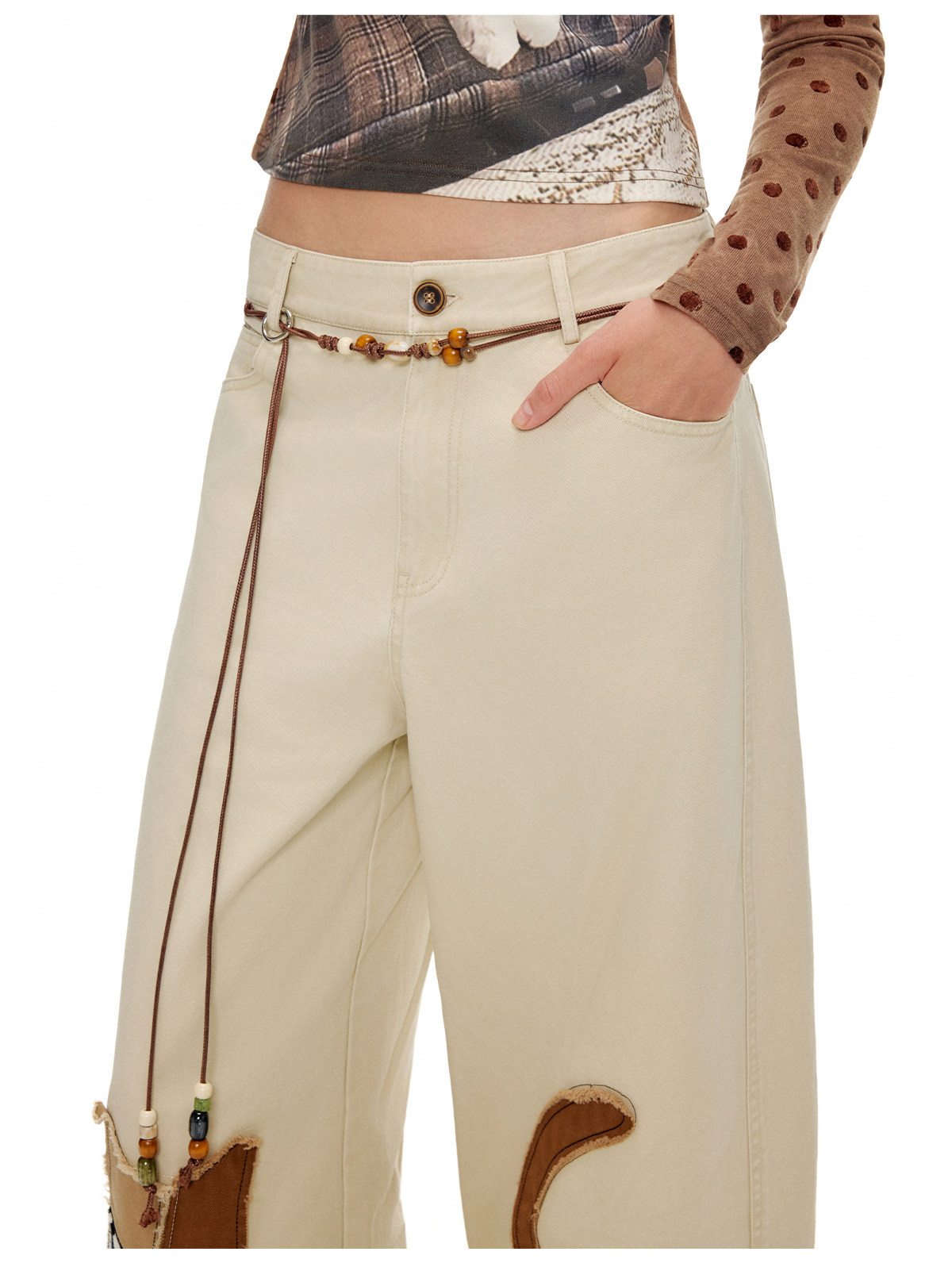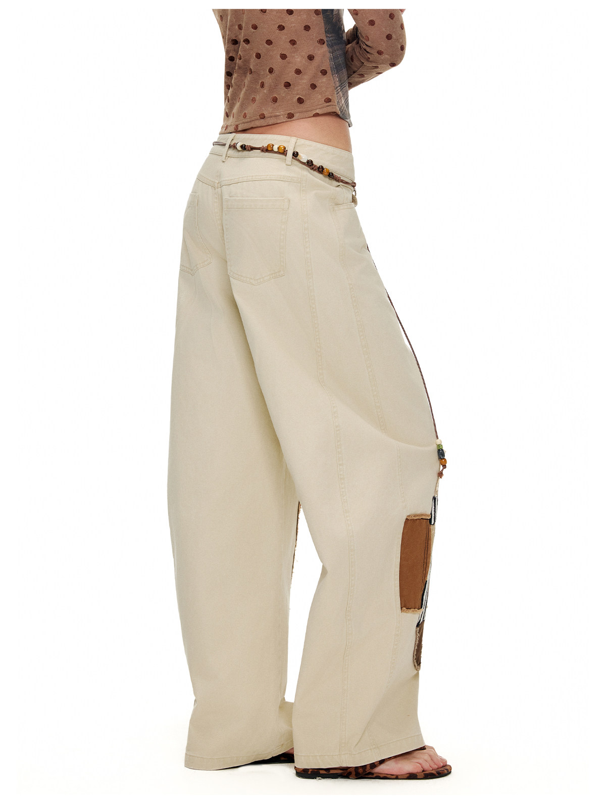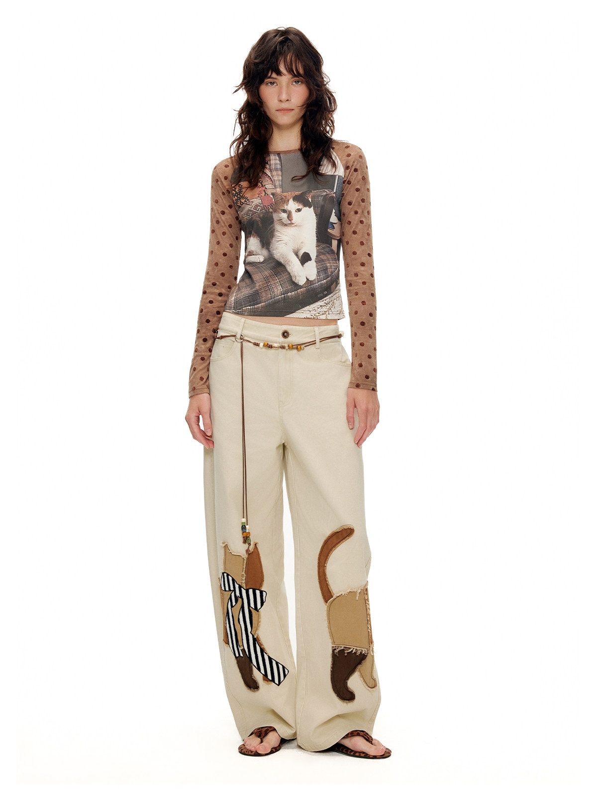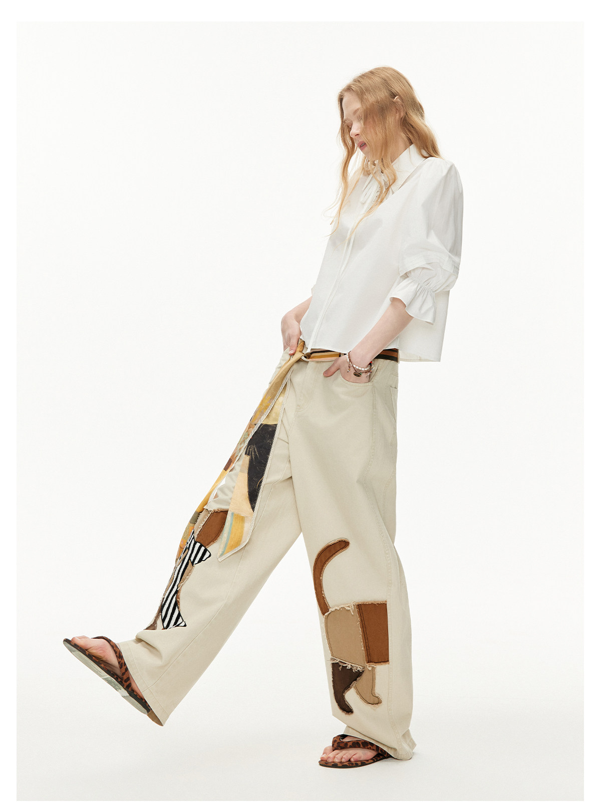 キャットアップリケ刺繡ウオッシュドシミターパンツ B4592