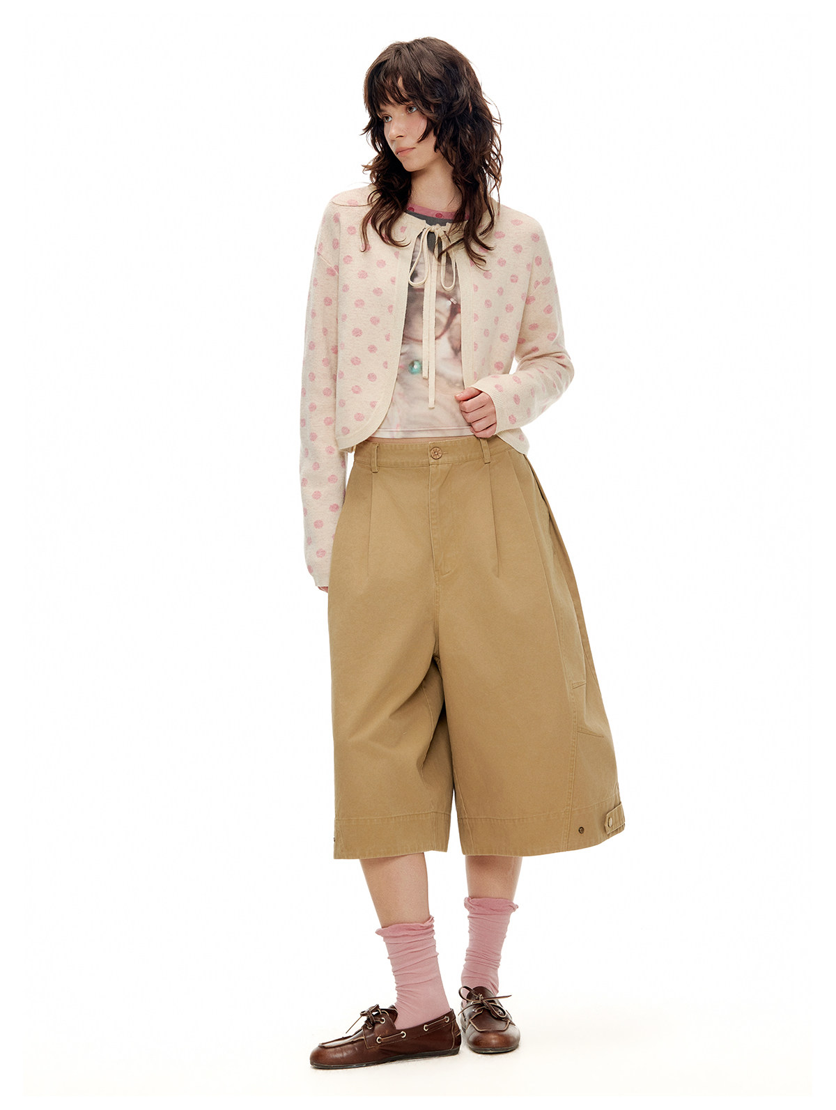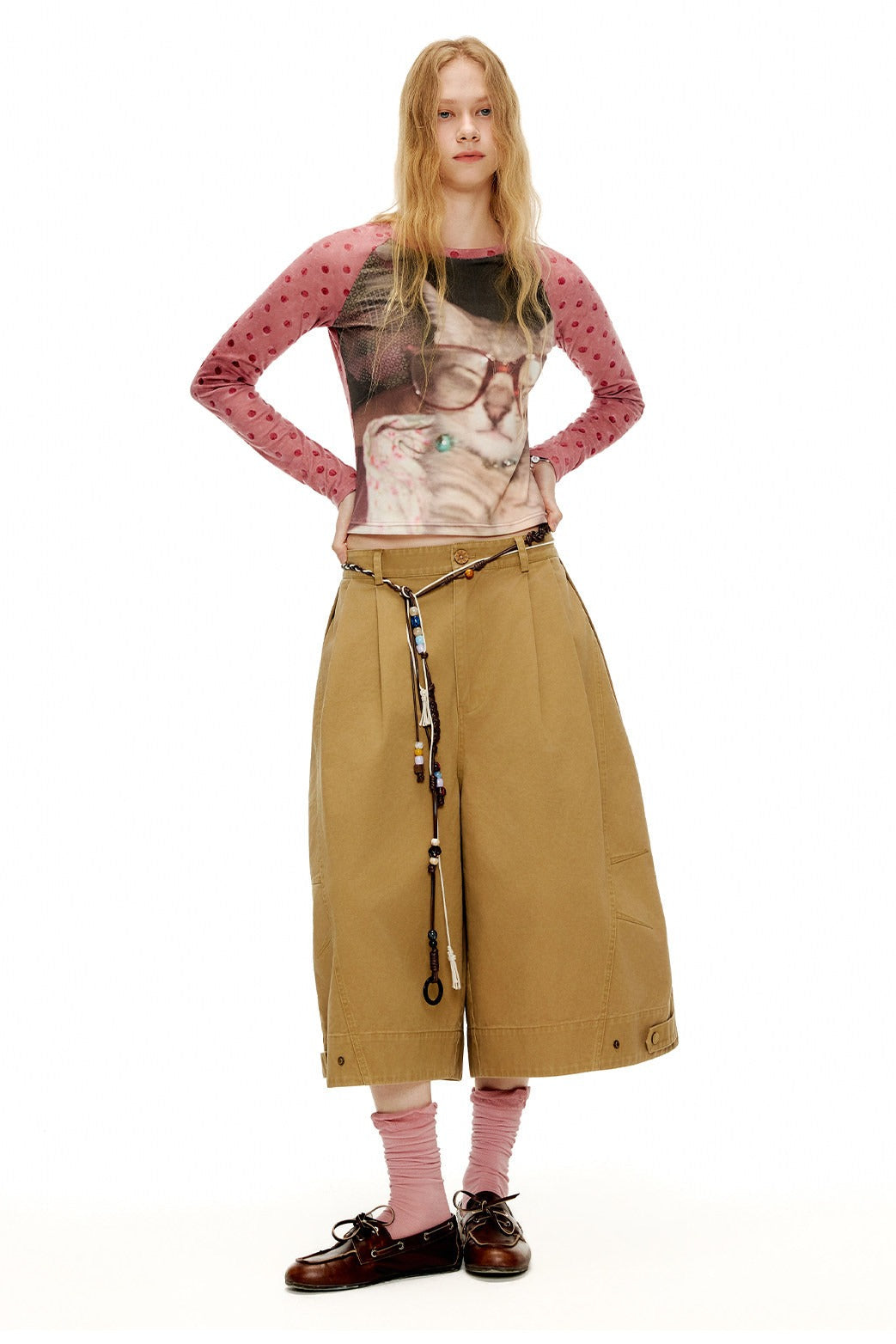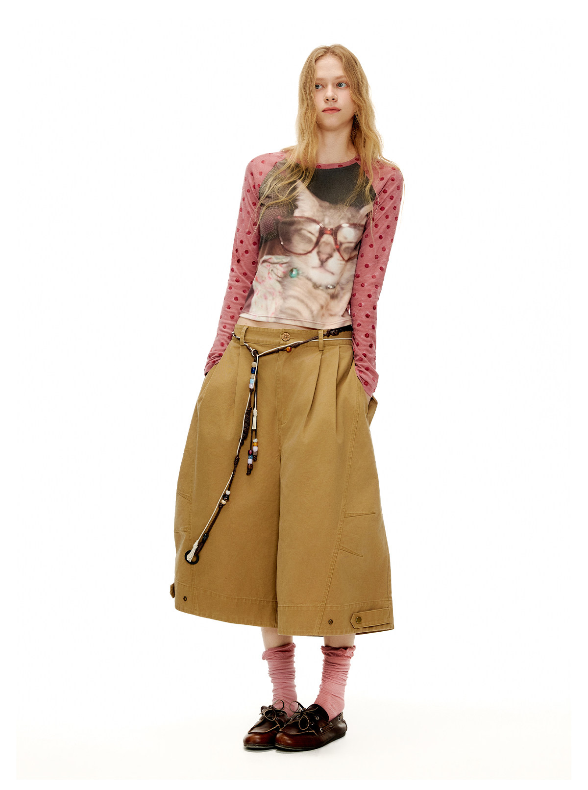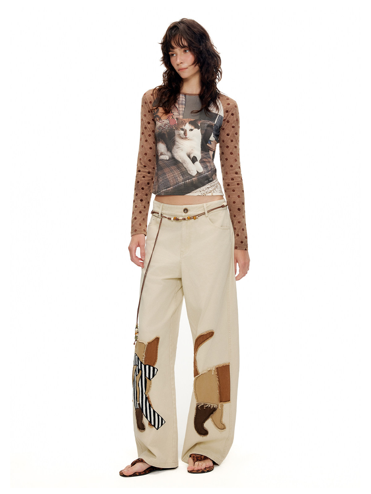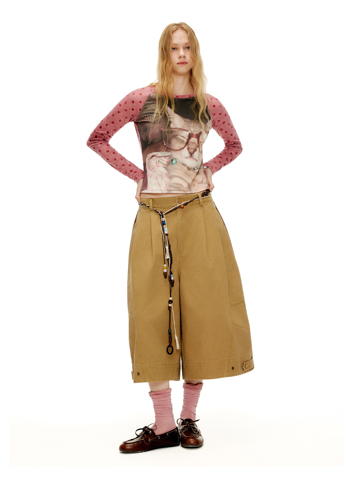 ドット柄のフロック生地との組み合わせの着やすいラグランスリーブのTシャツ