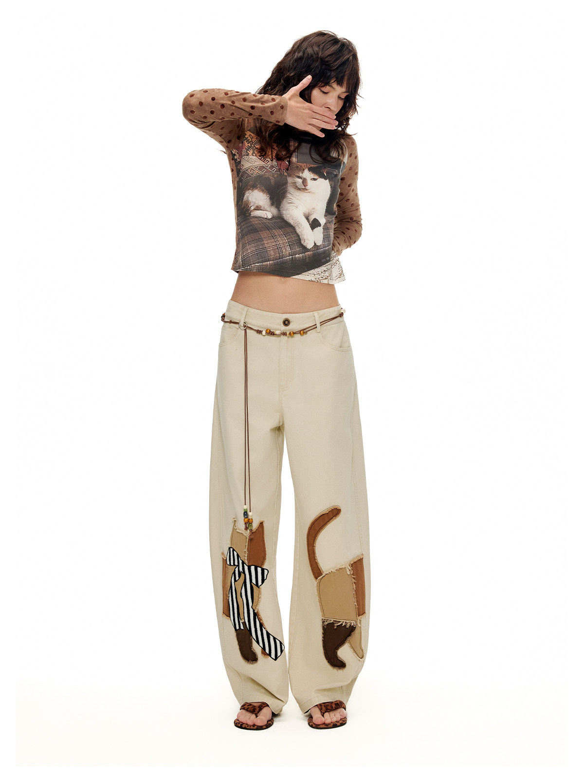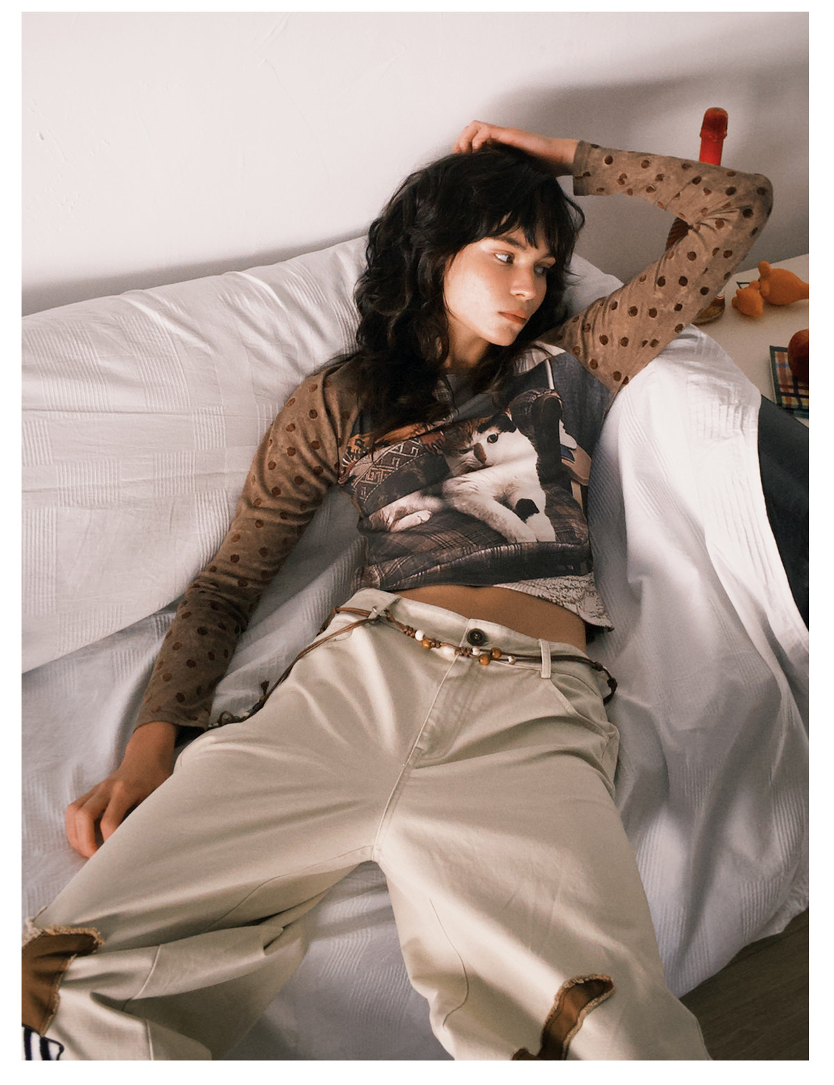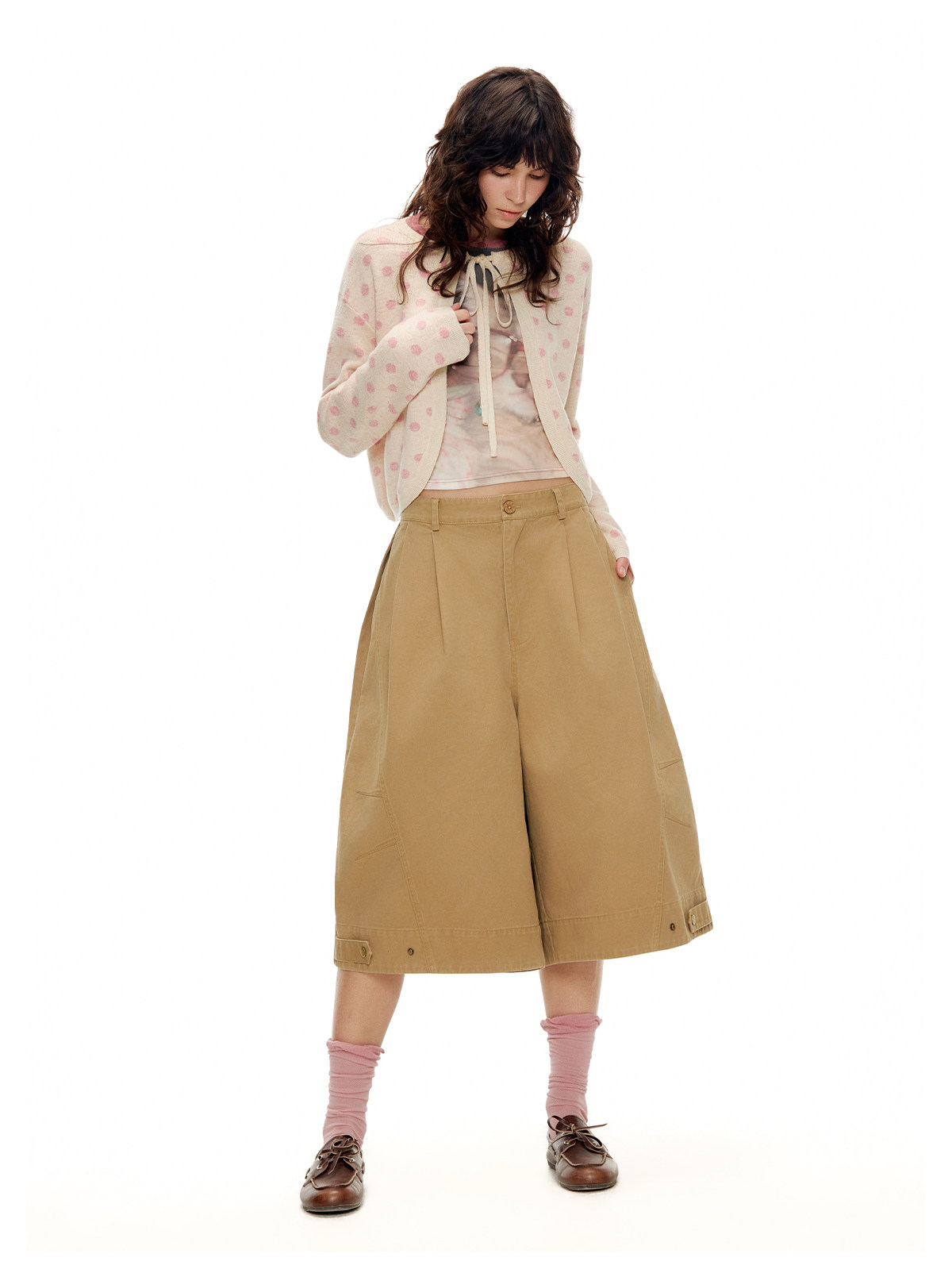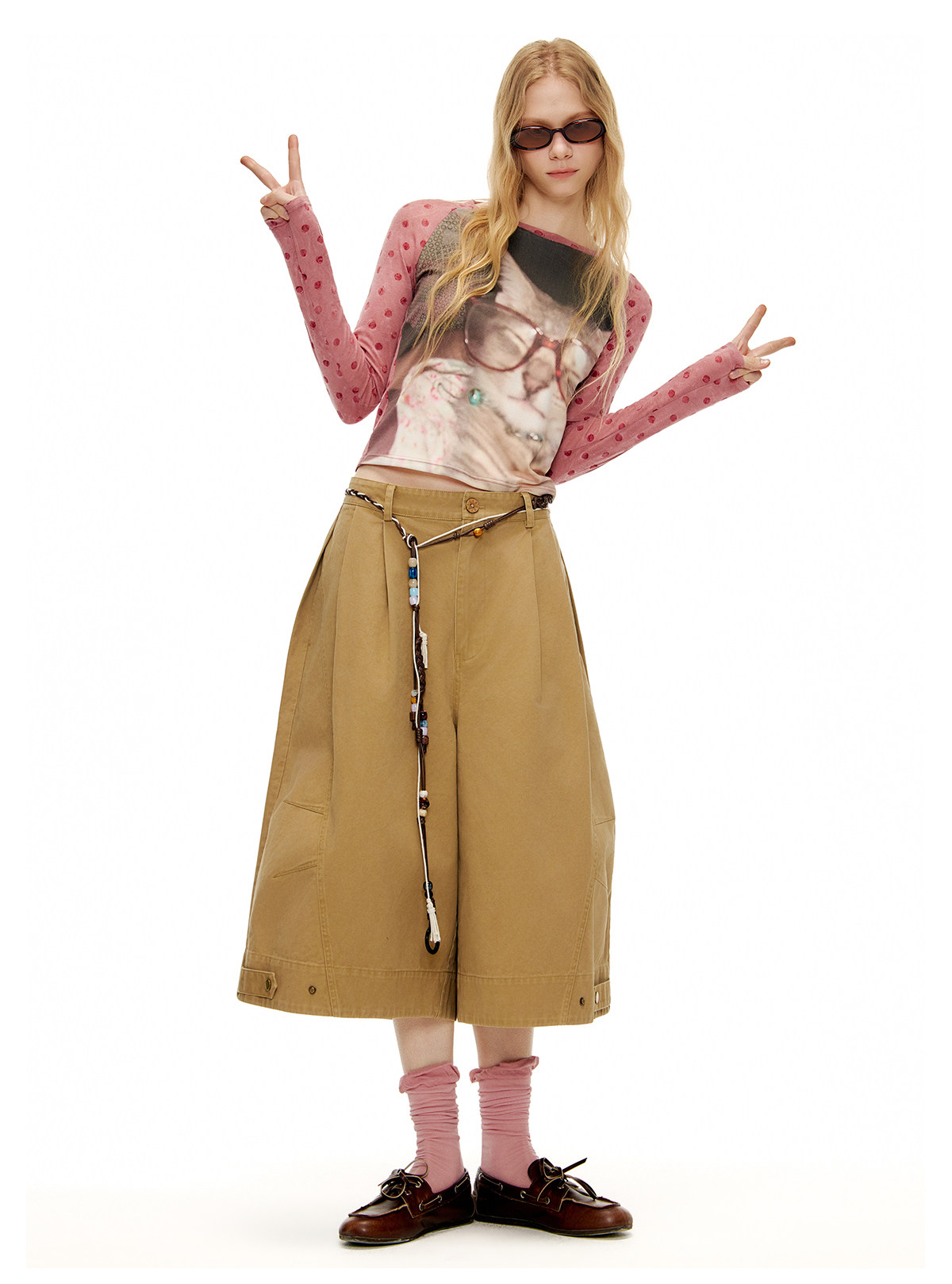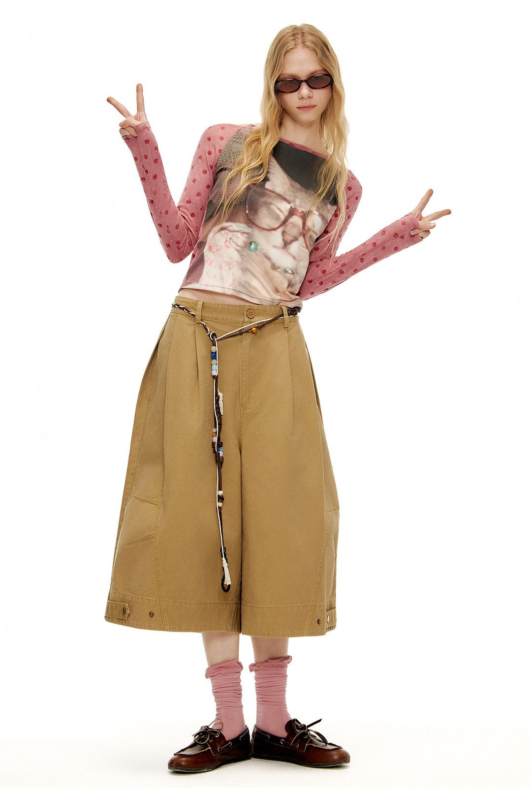 ドット柄のフロック生地との組み合わせの着やすいラグランスリーブのTシャツ