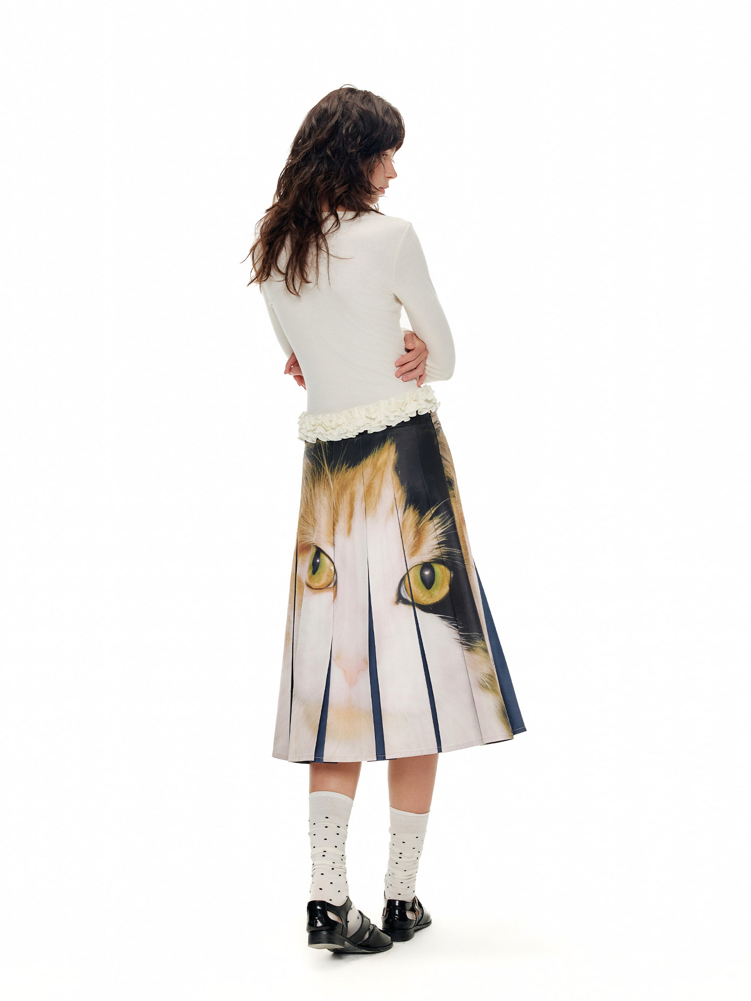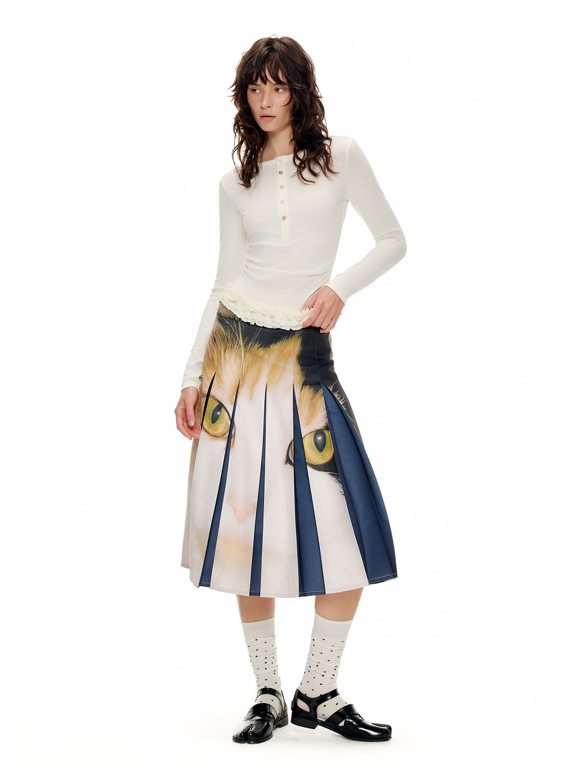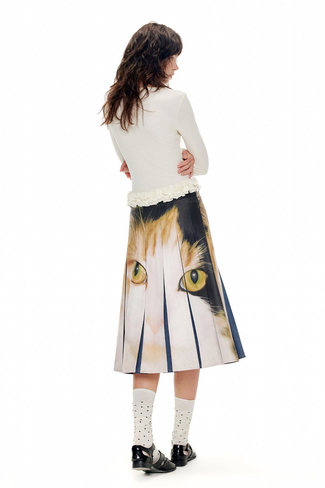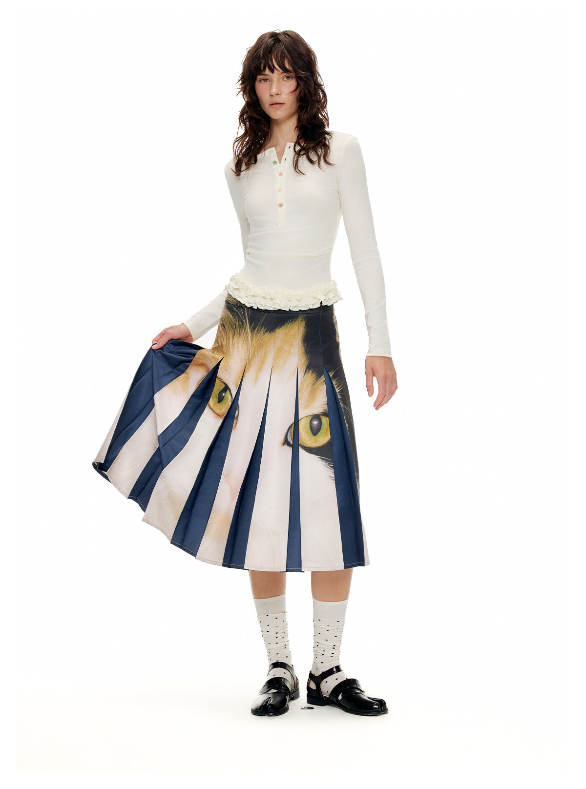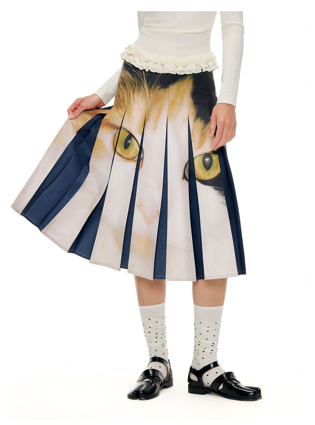 ミディアム丈のAラインシルエットのプリーツは、様々な体型にマッチします