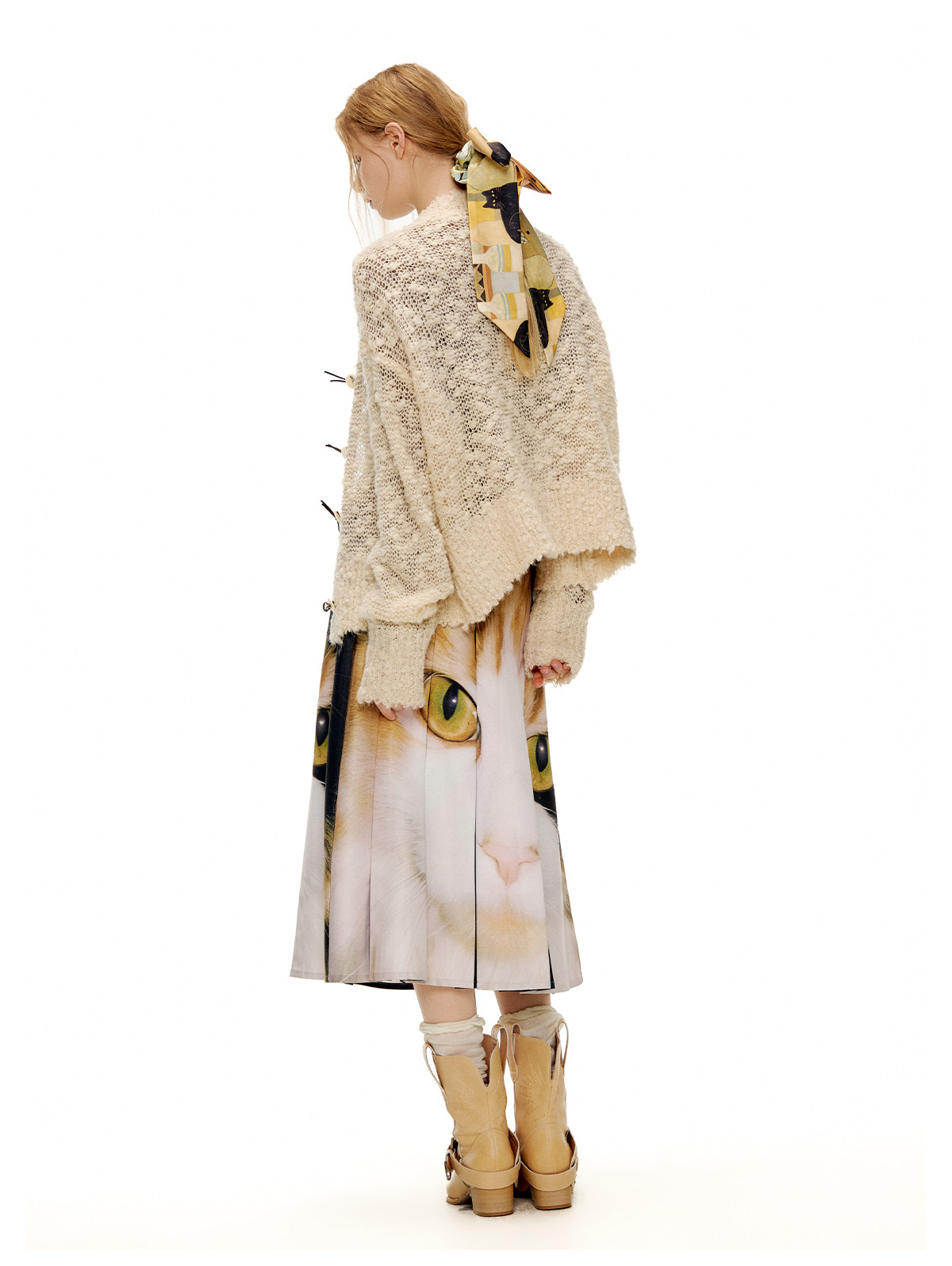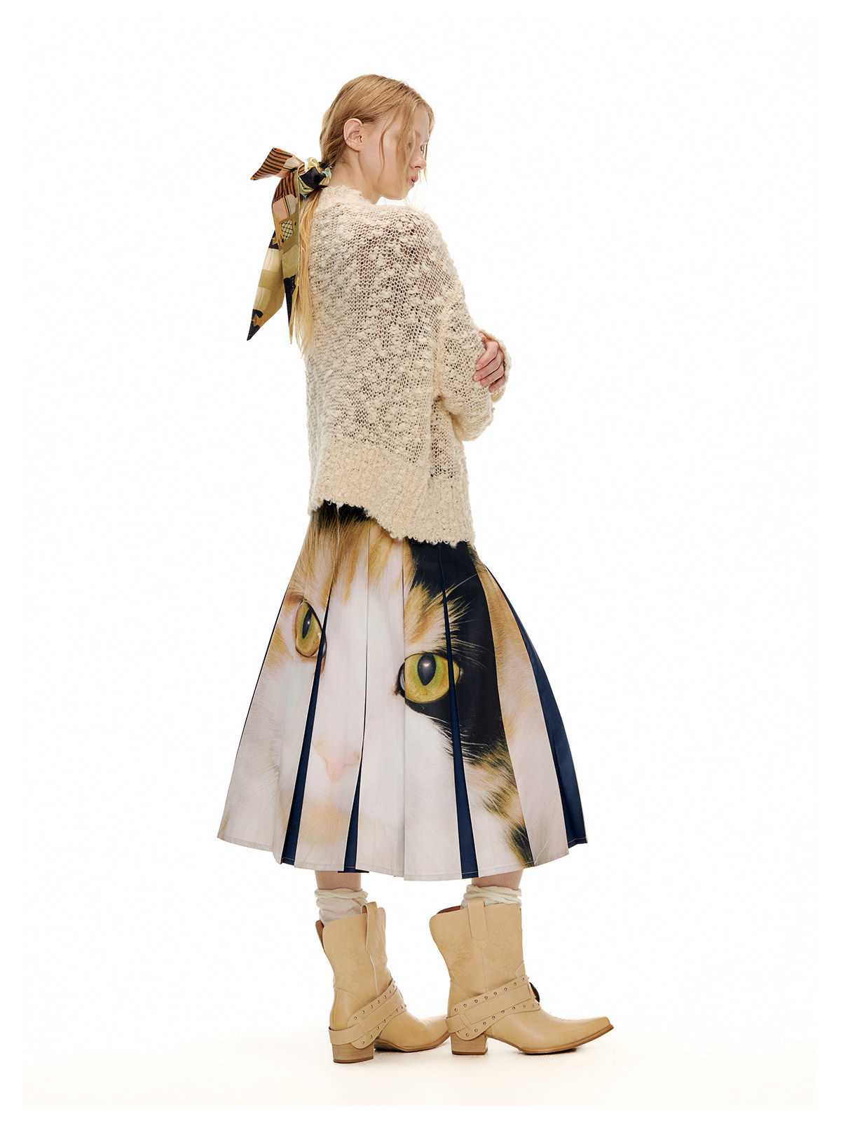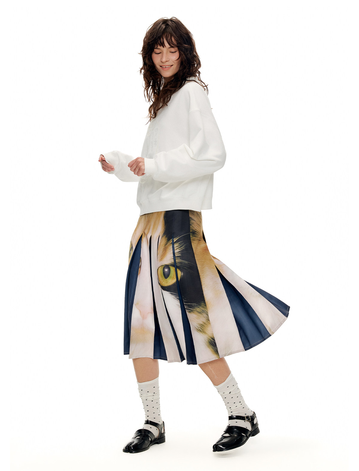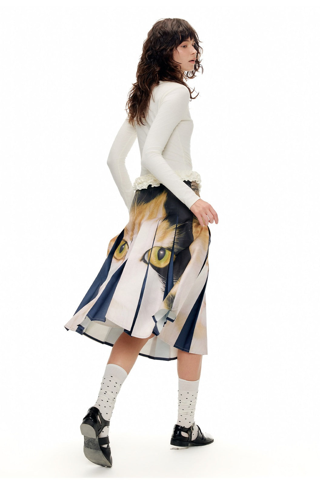 ミディアム丈のAラインシルエットのプリーツは、様々な体型にマッチします