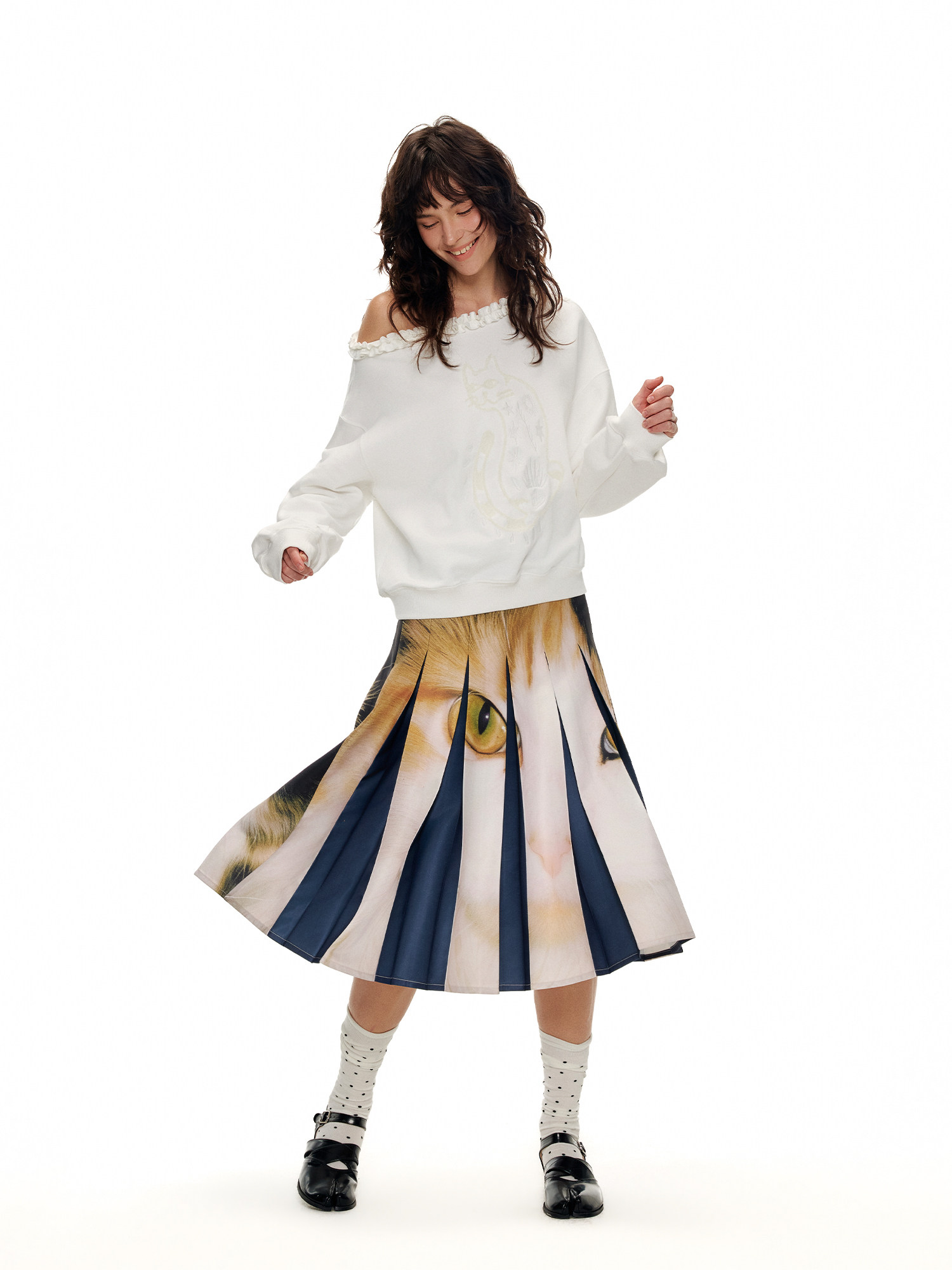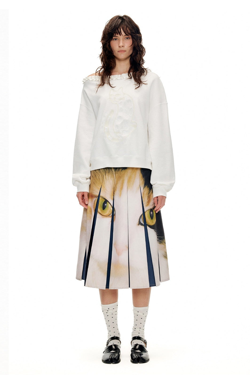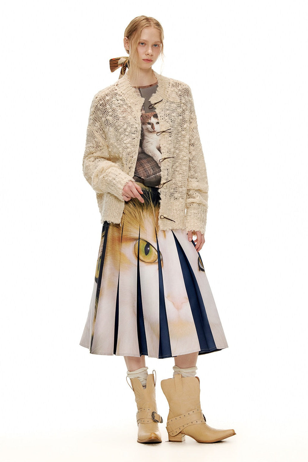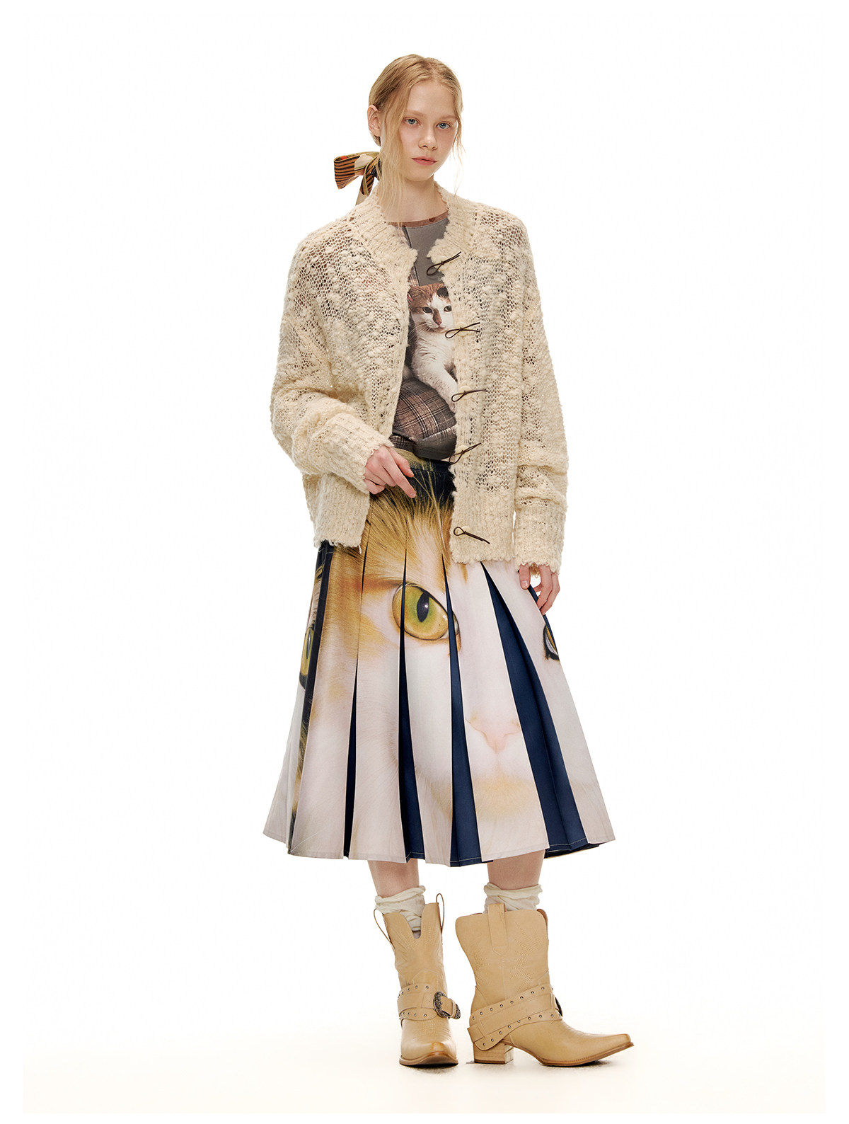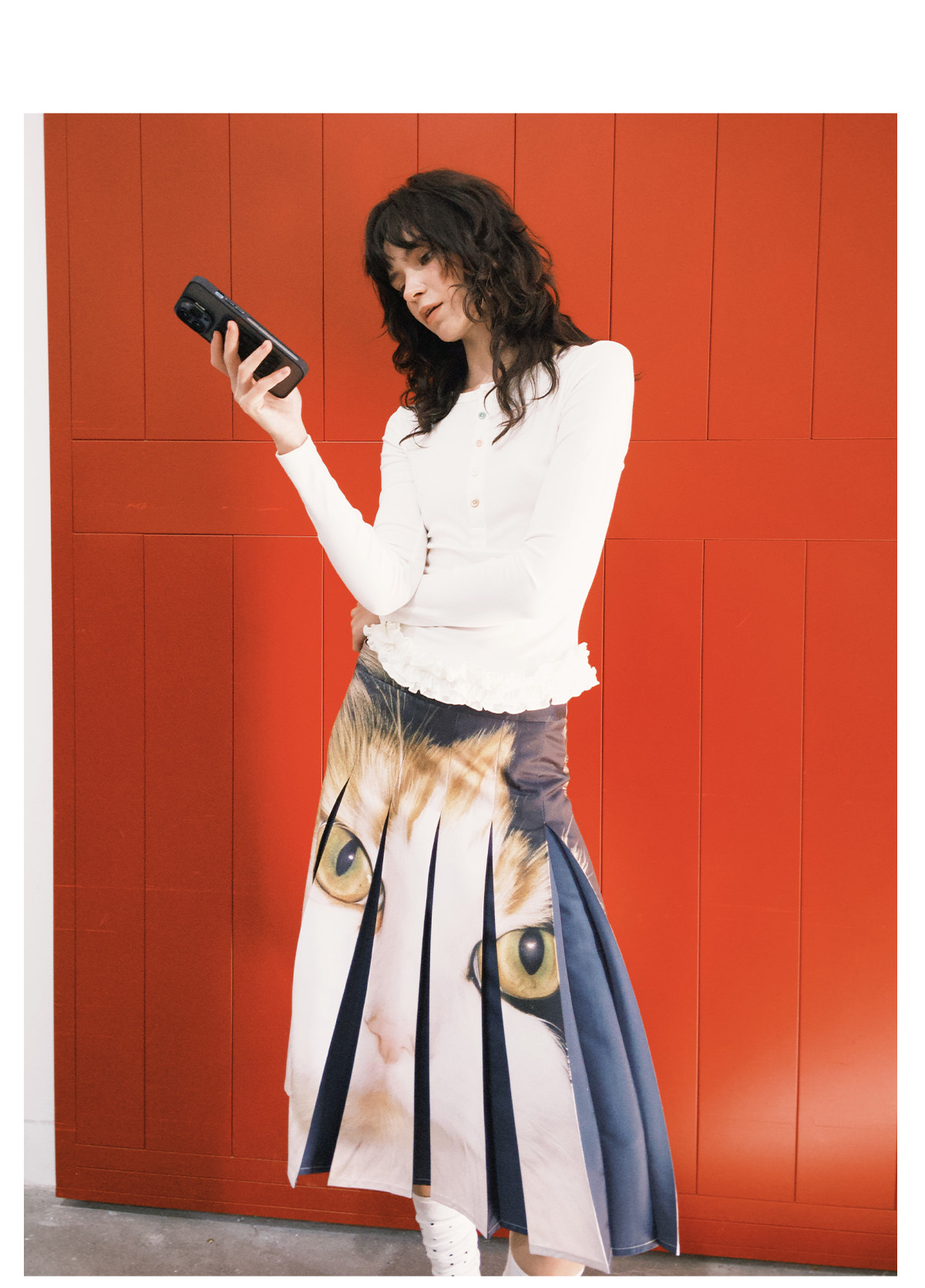 ミディアム丈のAラインシルエットのプリーツは、様々な体型にマッチします