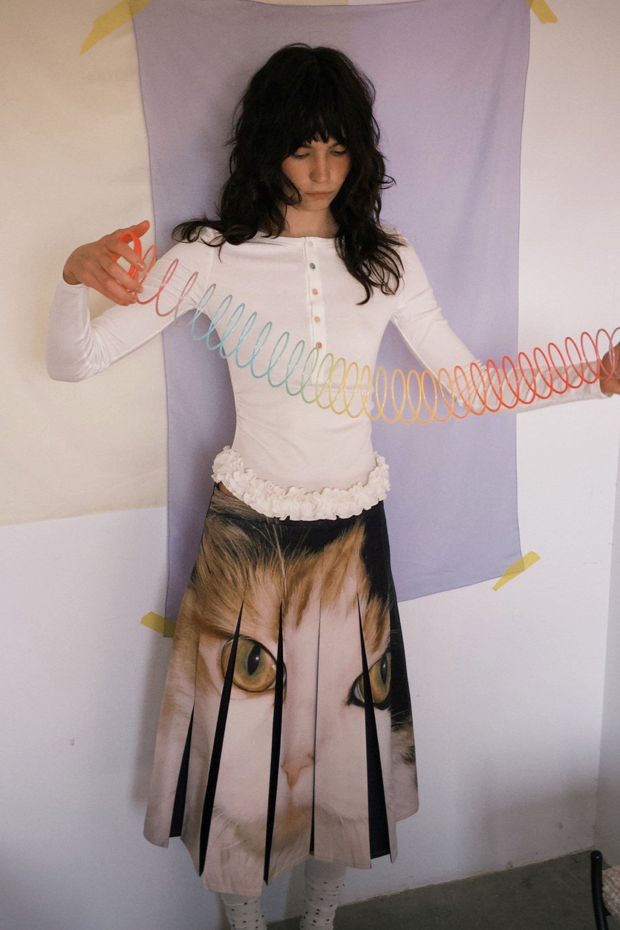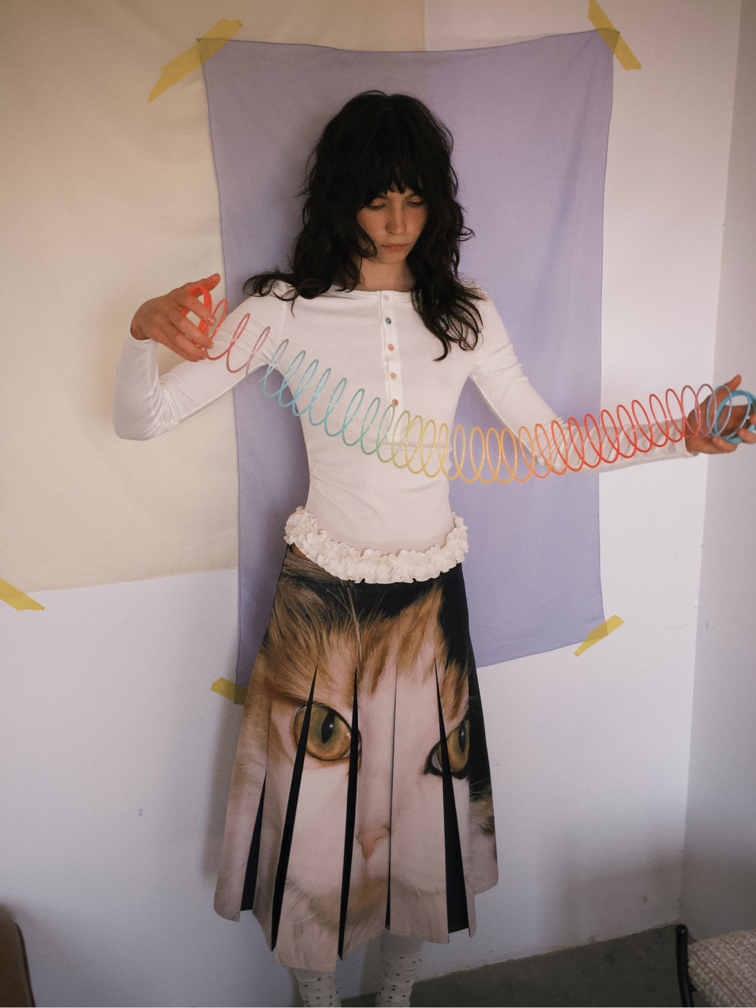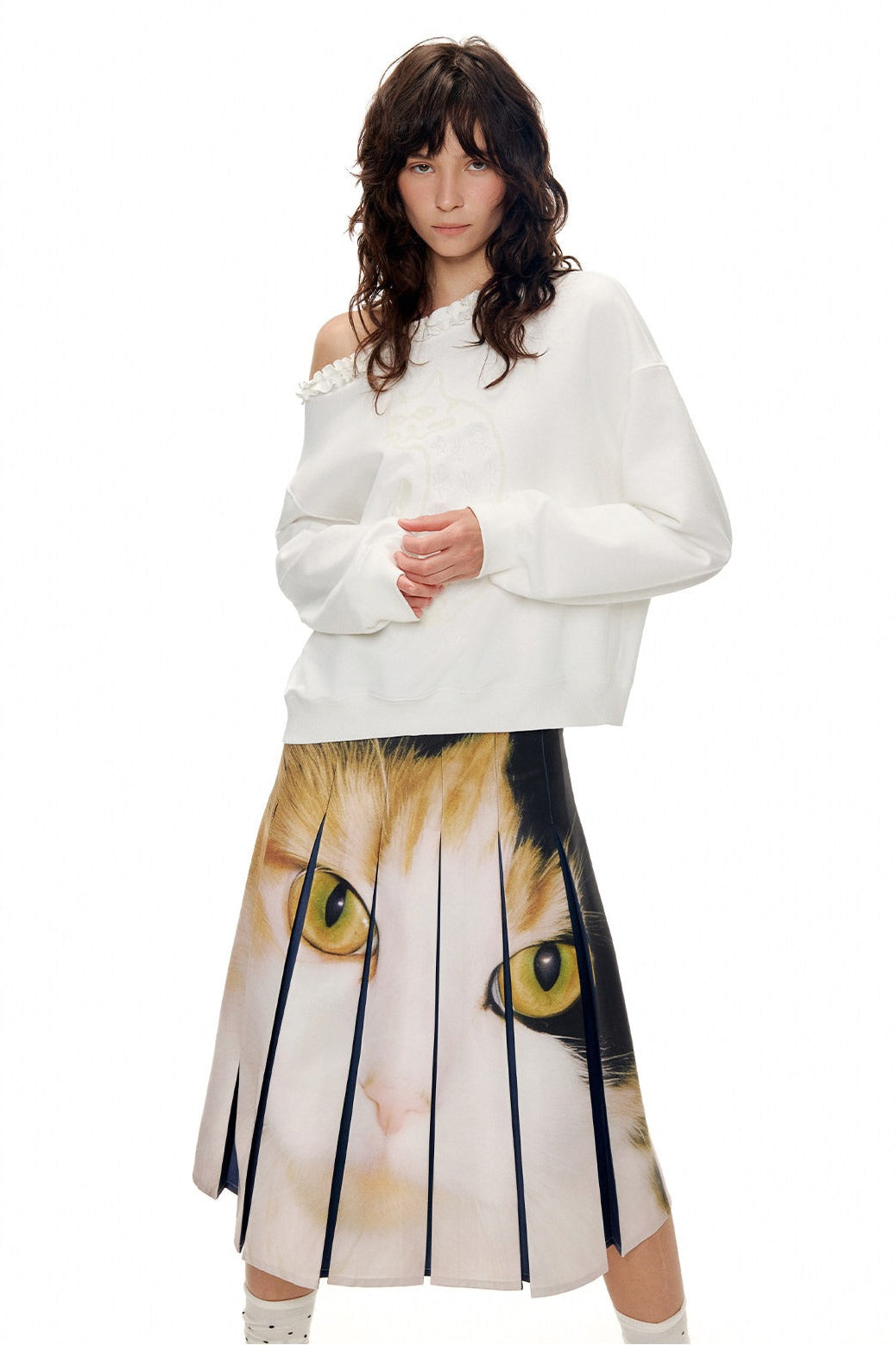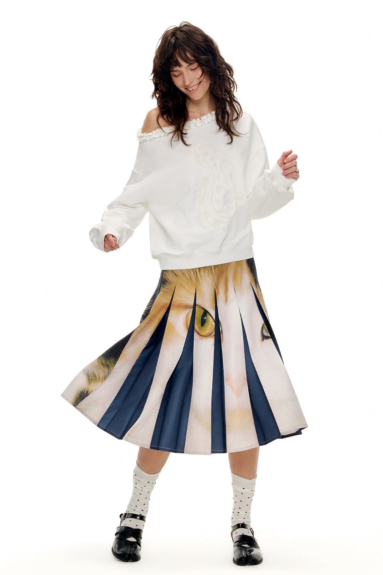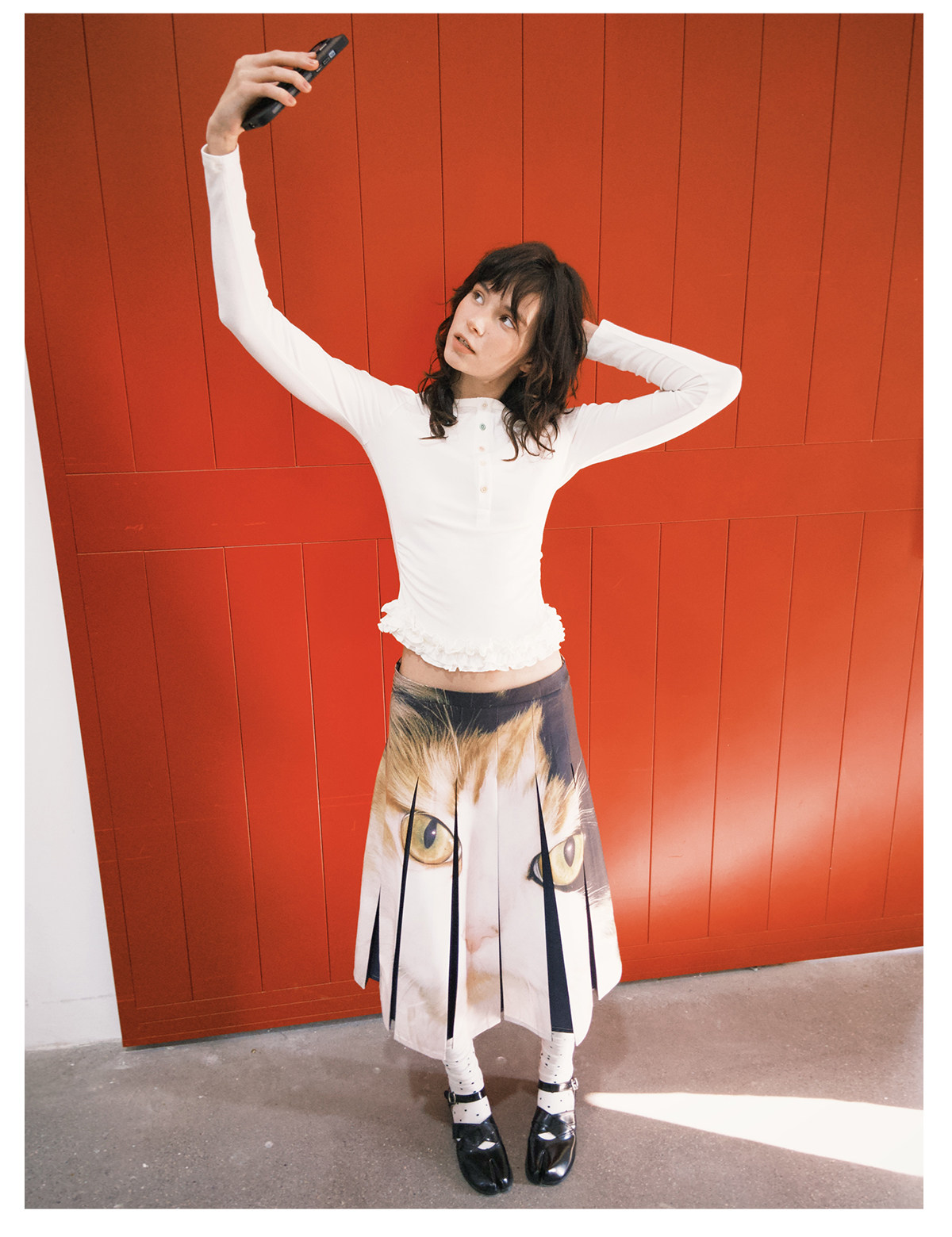 ミディアム丈のAラインシルエットのプリーツは、様々な体型にマッチします