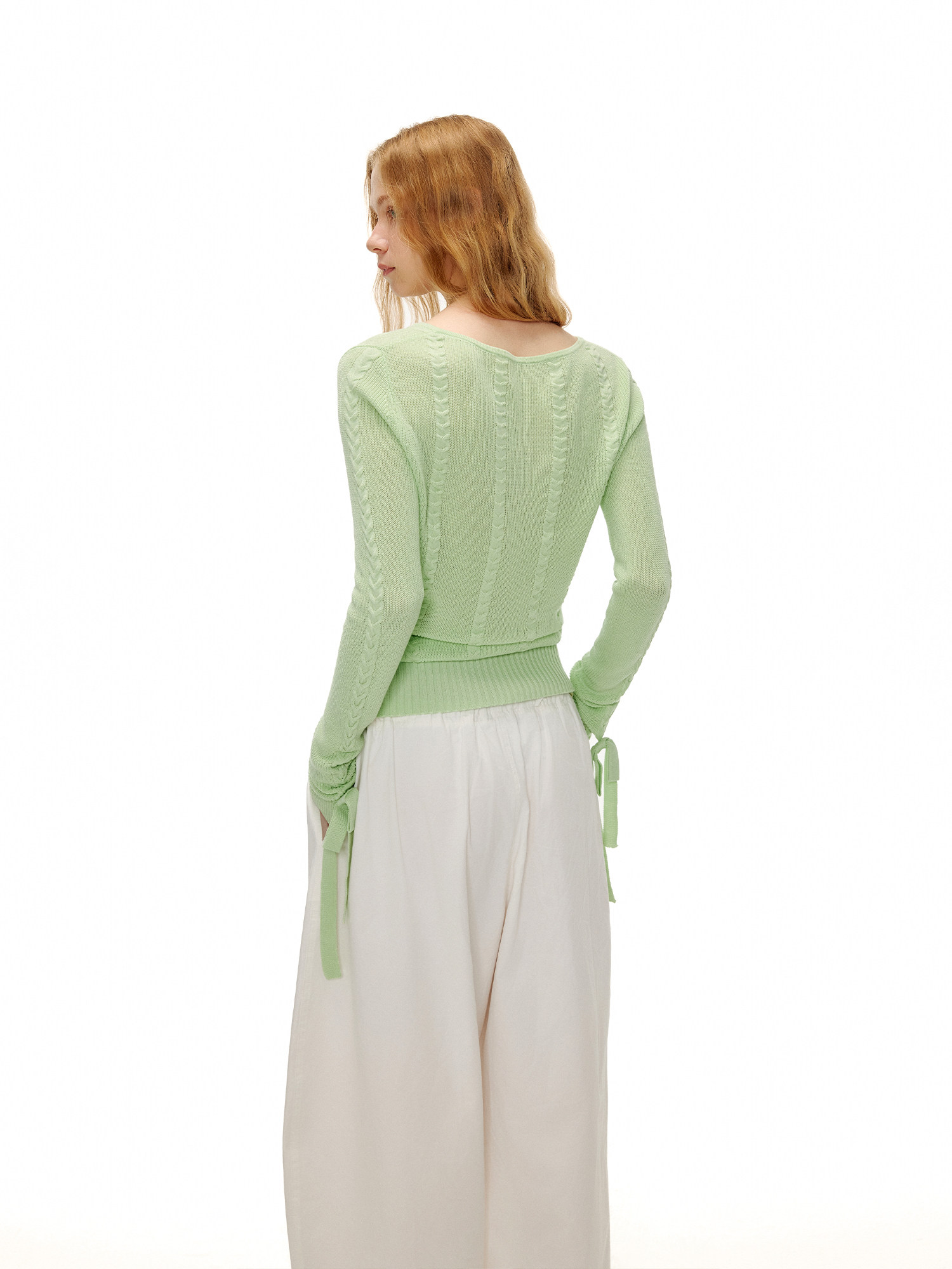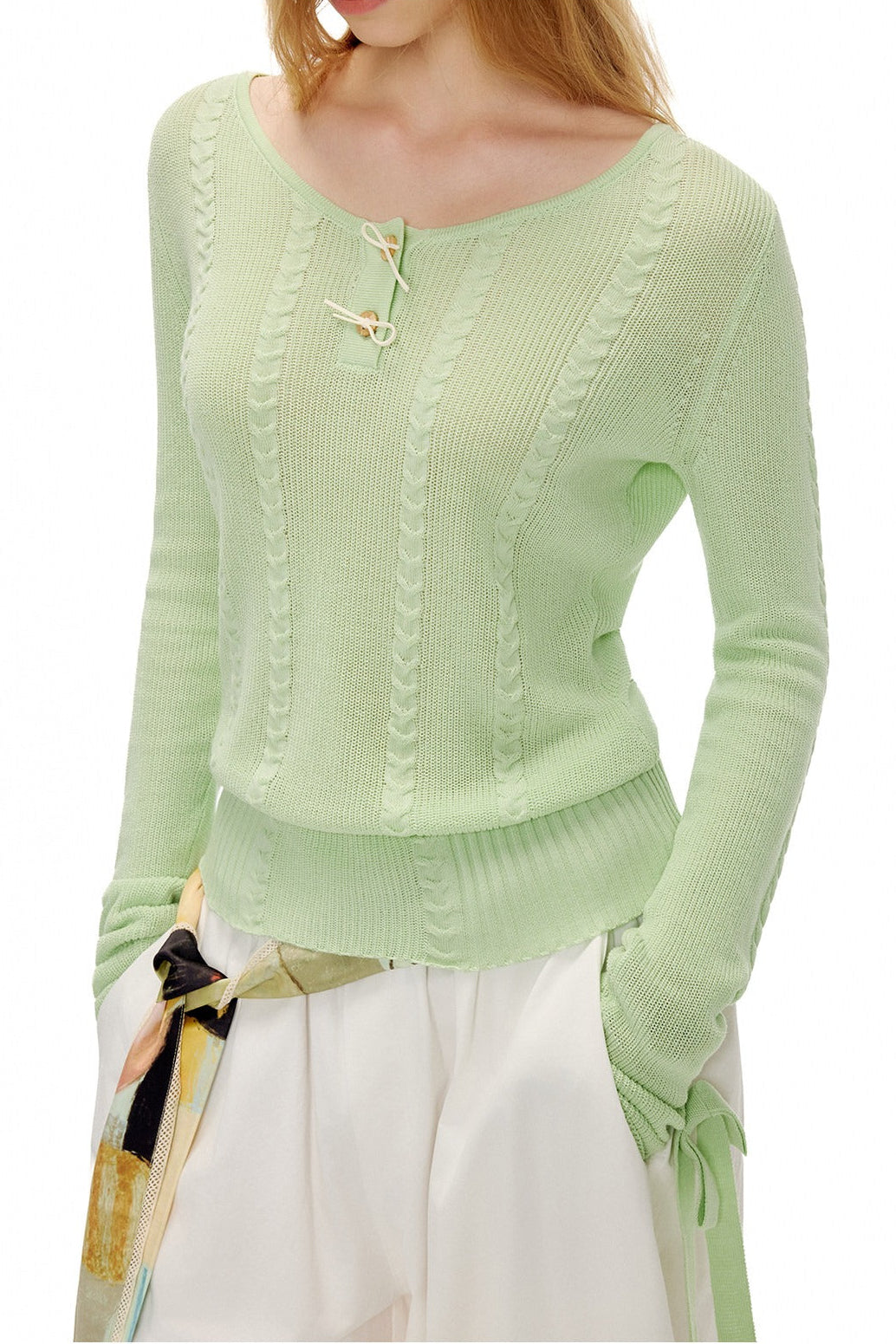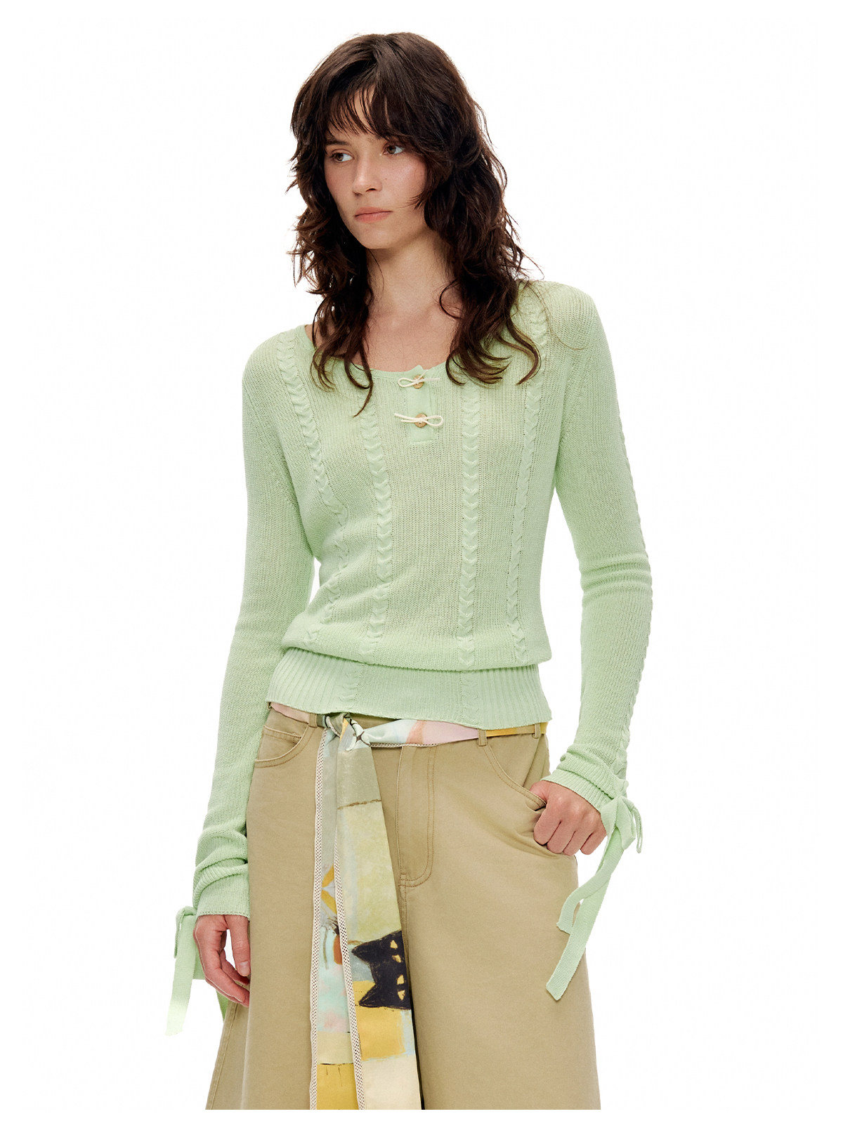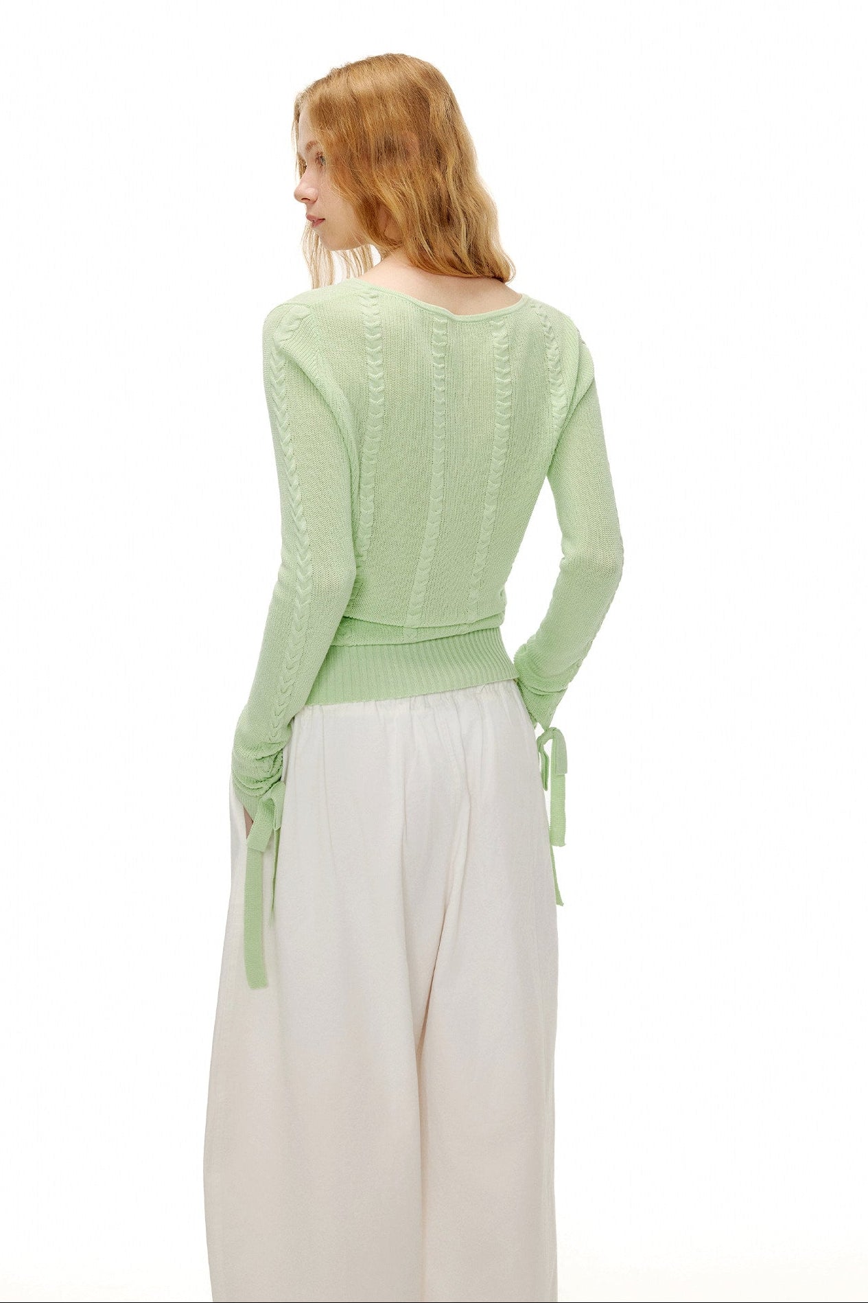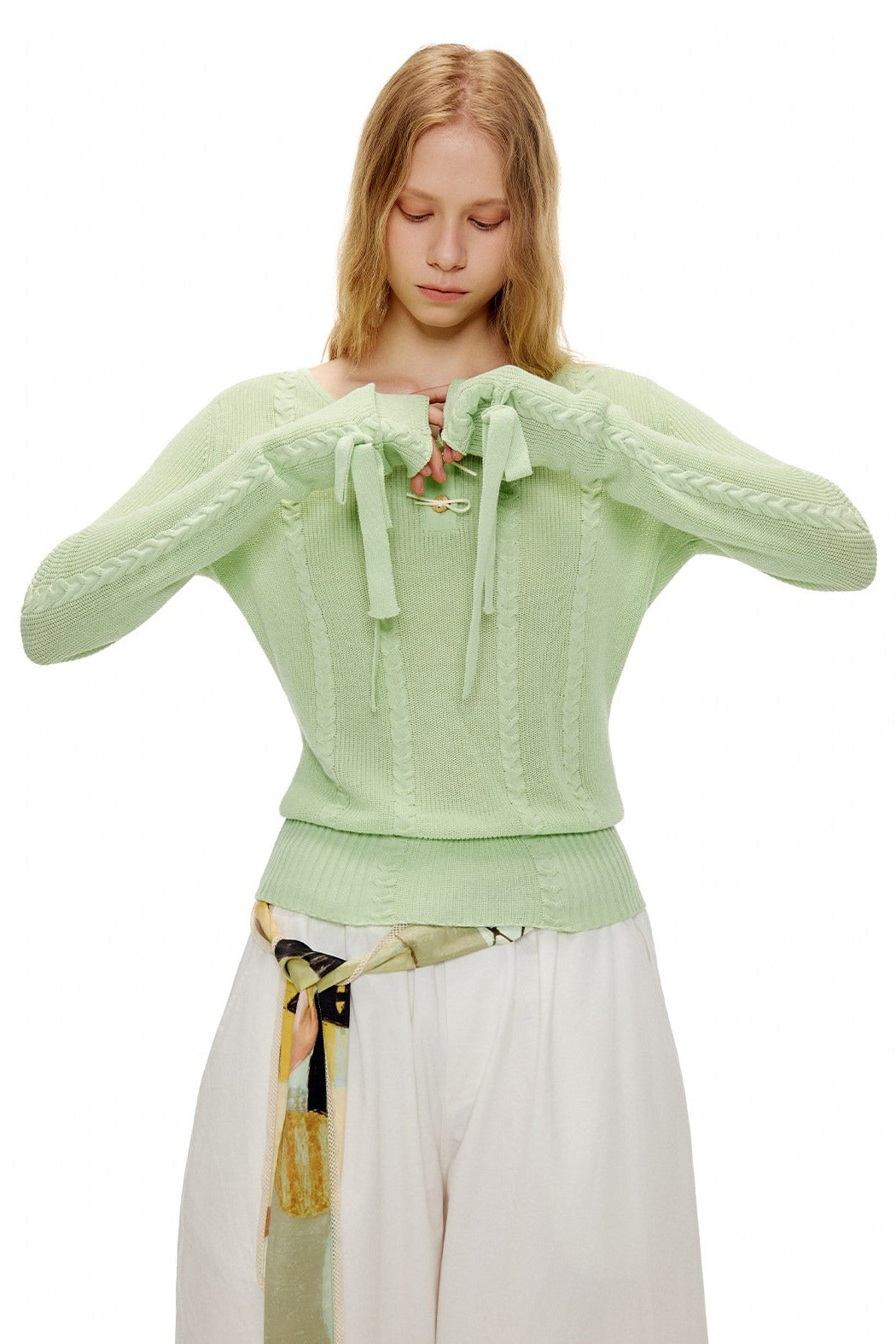 アップルグリーンケーブルニットセーター B4601